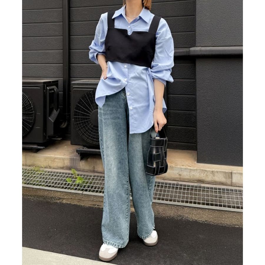 今季はビスチェとのレイヤードトップスと合わせると、トレンド感満載のスタイルが完成します