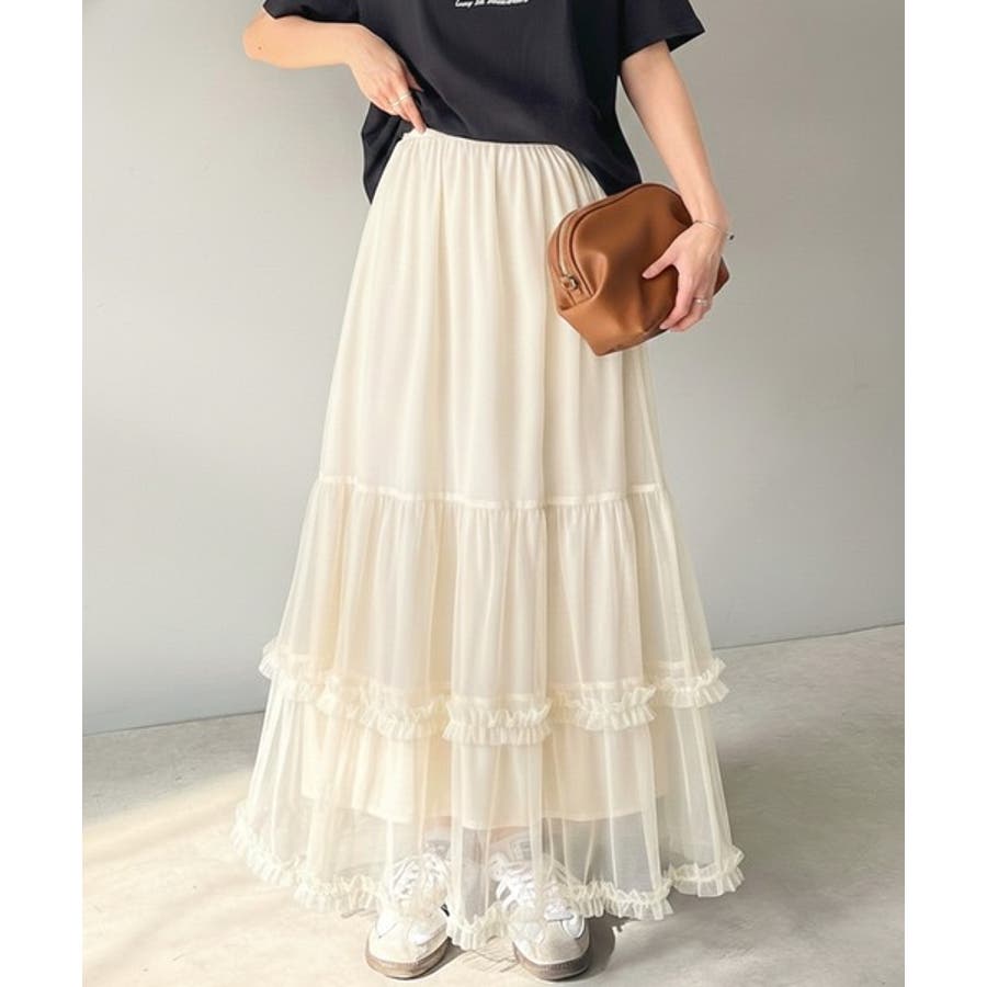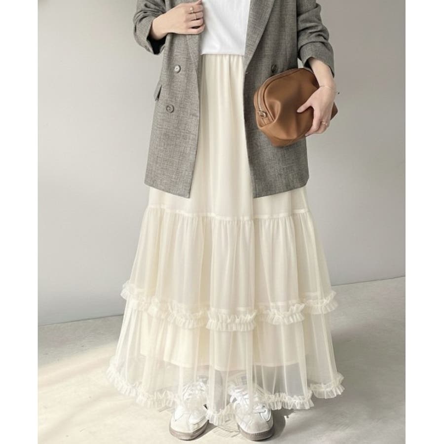 甘すぎない大人のバランス。シンプル合わせでも映える。フリルティアードチュールスカ…