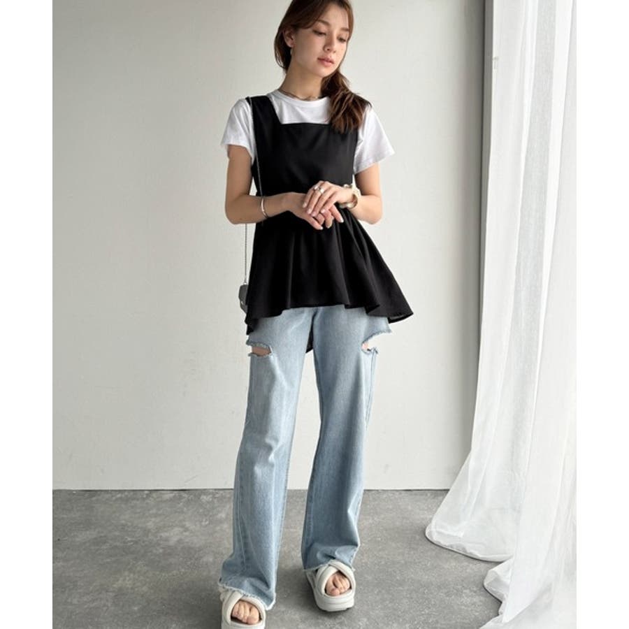 単品使いもできるので、トップスはデニムやタイトスカートと合わせてフェミニンに、パンツはシンプルなカットソーやシャツと合わせてミニマルなスタイリングも◎