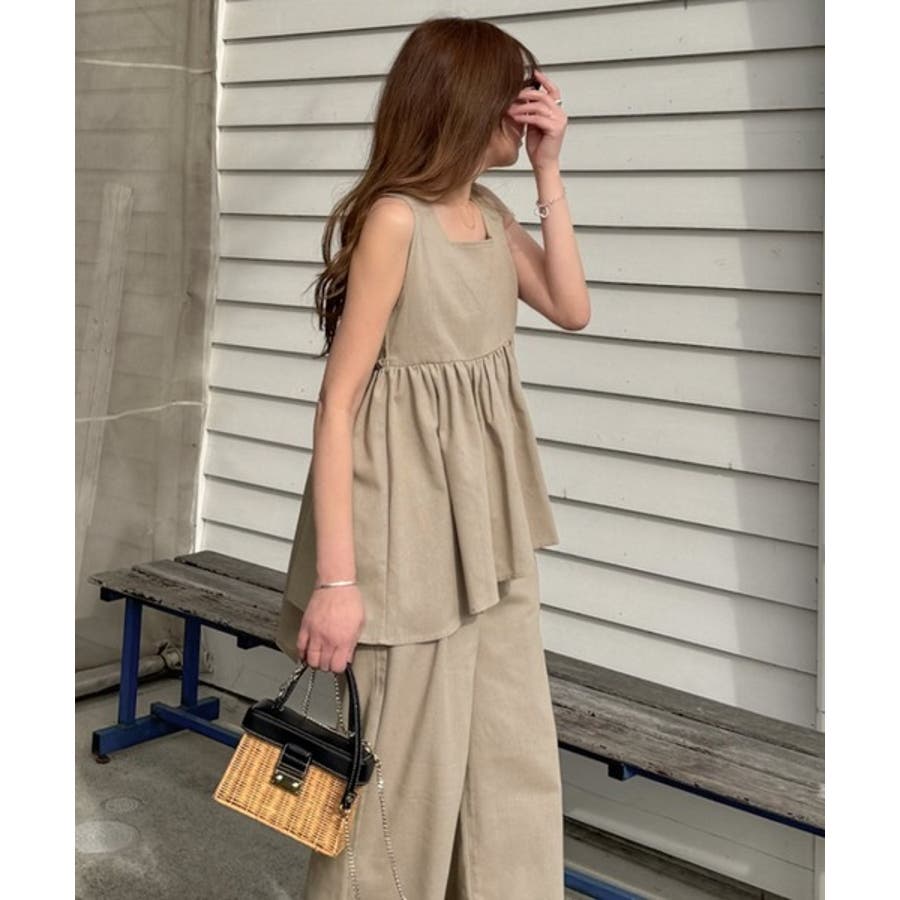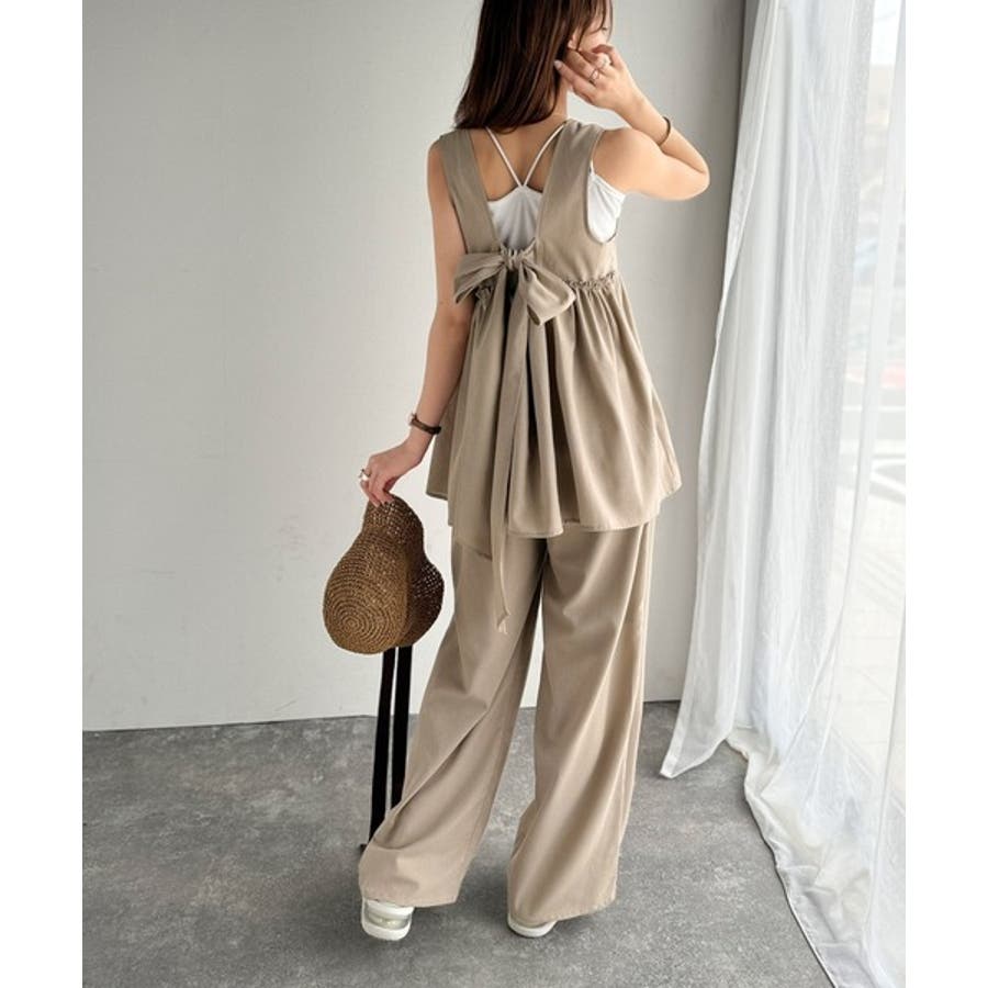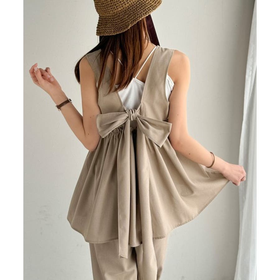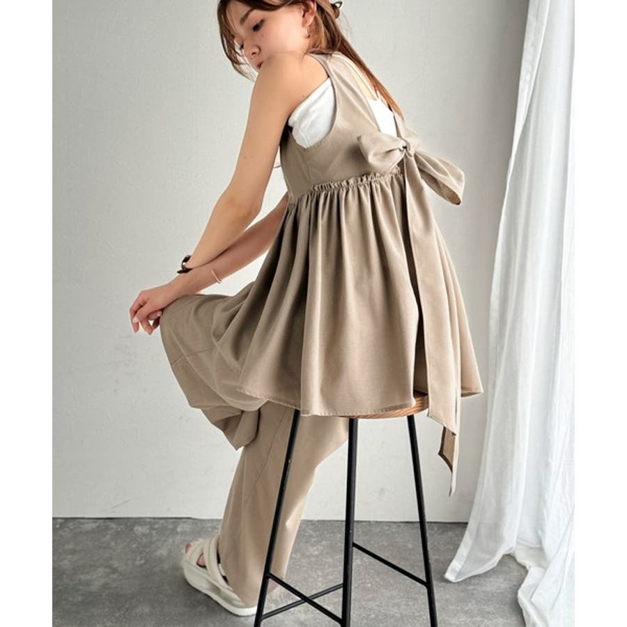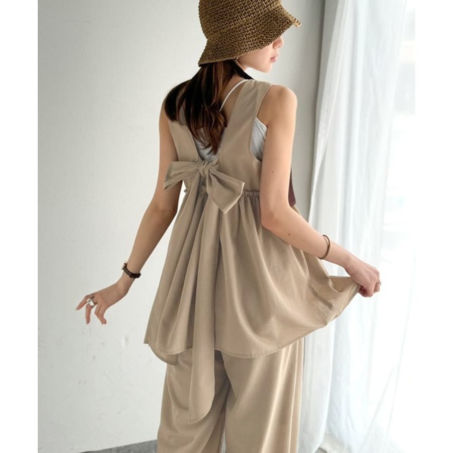 投稿日:2025.06.09後ろのリボンがおっきくて可愛いのに他の部分がシンプルなのでスッキリ着れます!BBQとかビアガーデンとか外でTシャツだとちょっと可愛さ足りない時に涼しくて可愛いのでピッタリです!サンダルと合わせたりTシャツと合わせたりセットアップ以外でも単品で使えて最高です