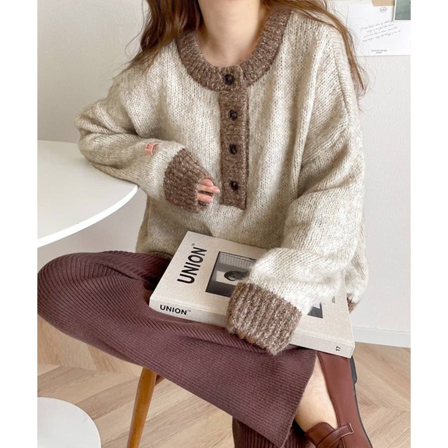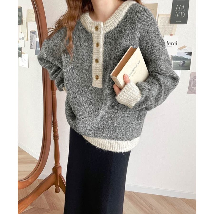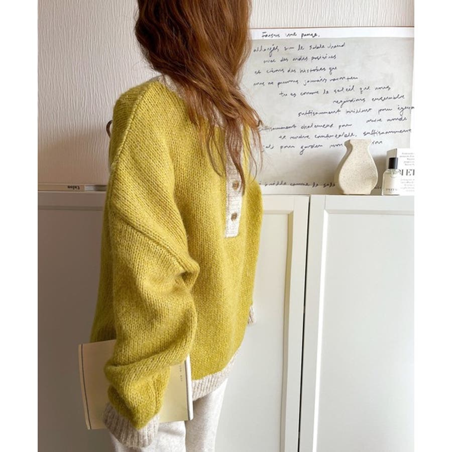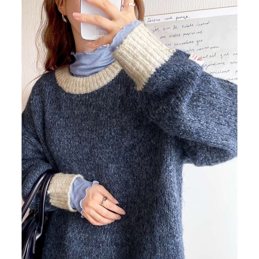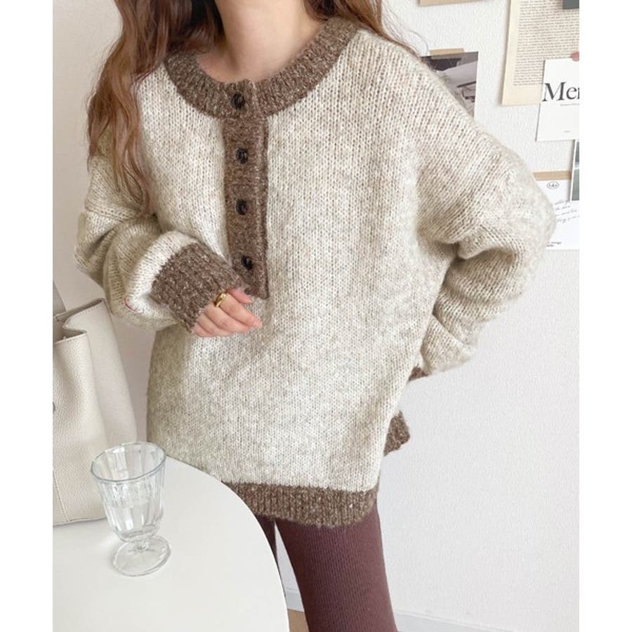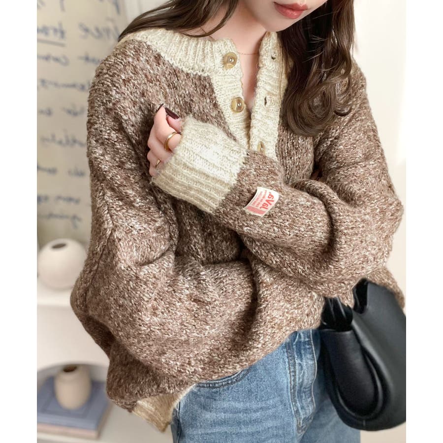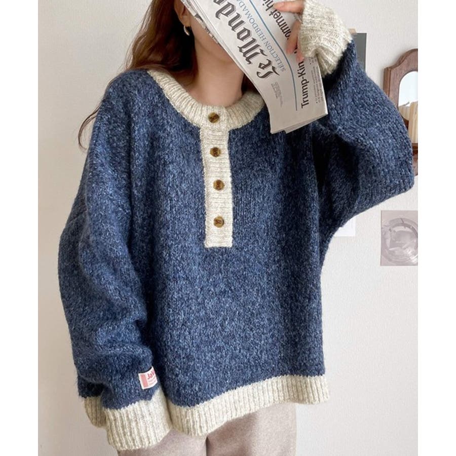 もちっと癒され。2wayミックスカラー糸バイカラーヘンリーニットプルオーバー《J…