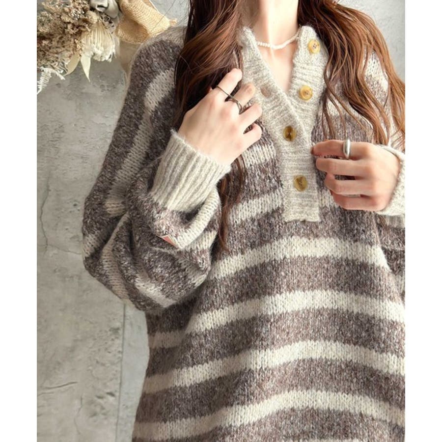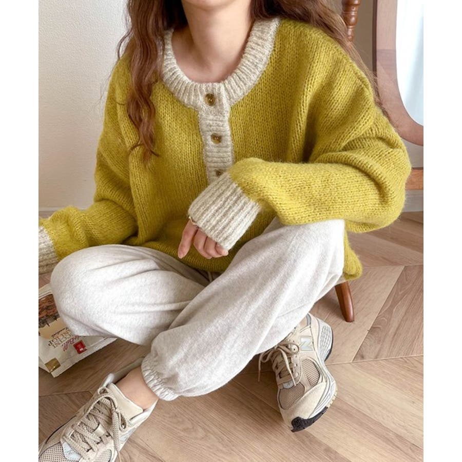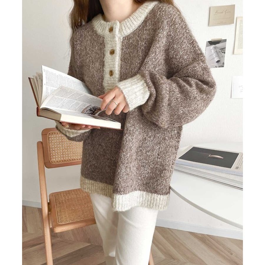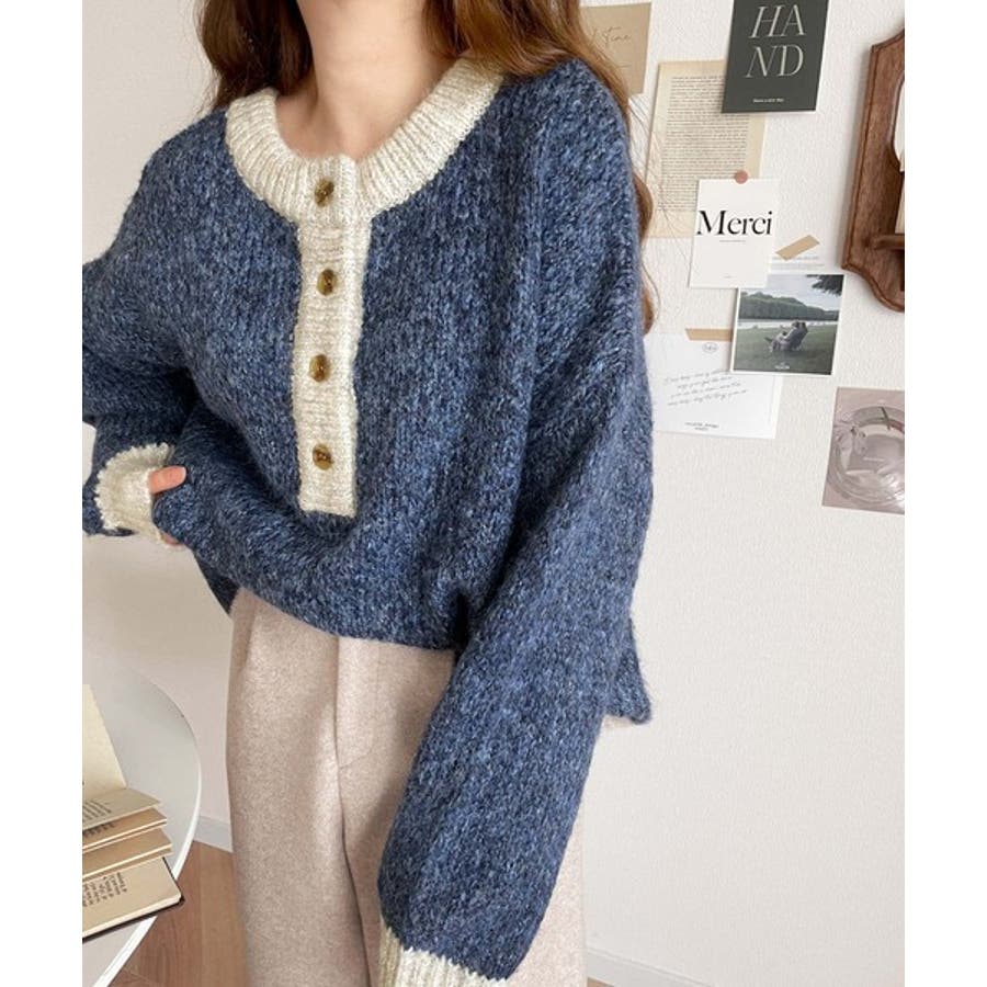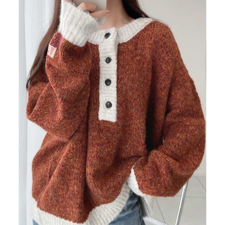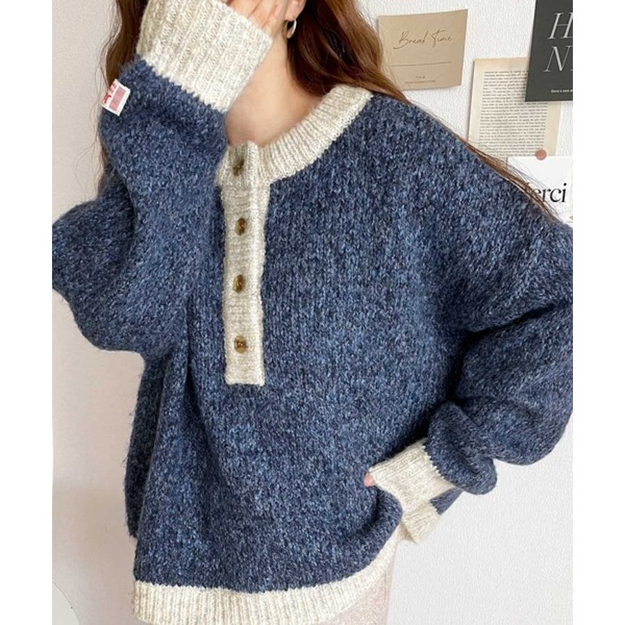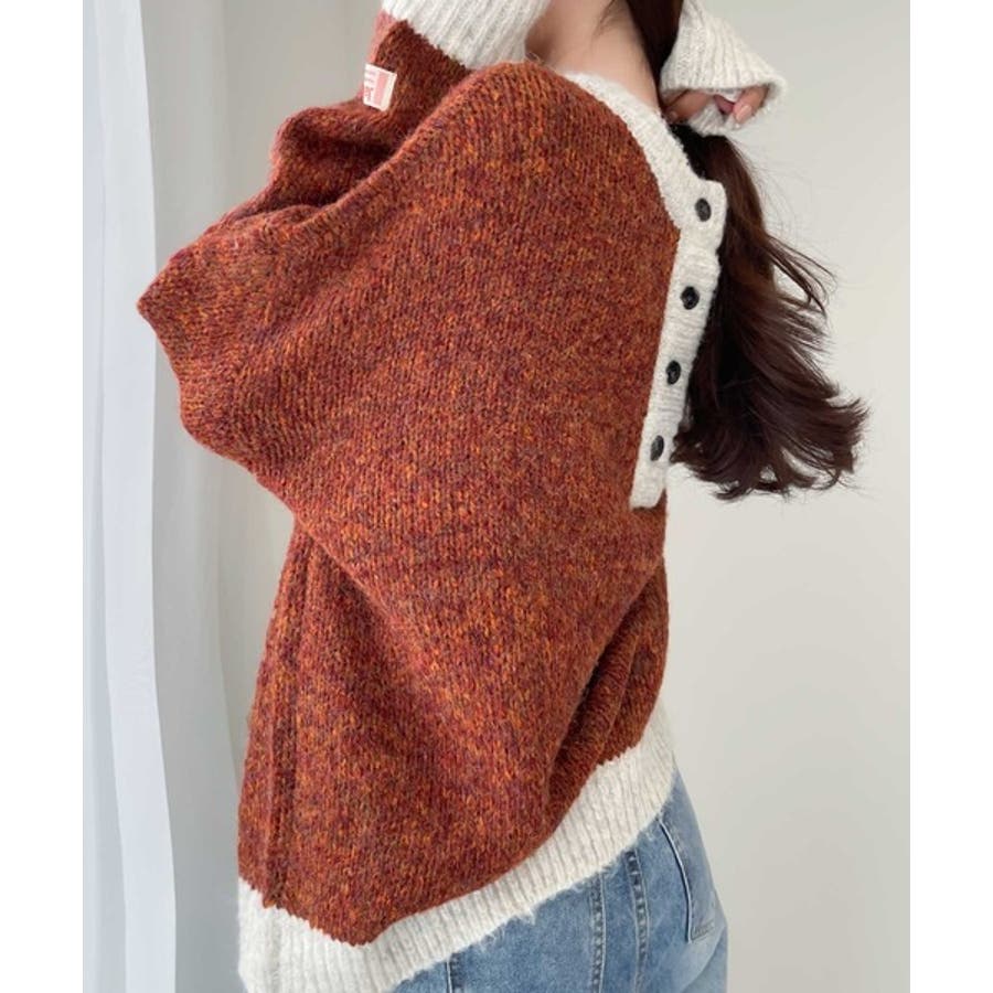 もちっと癒され。2wayミックスカラー糸バイカラーヘンリーニットプルオーバー《J…