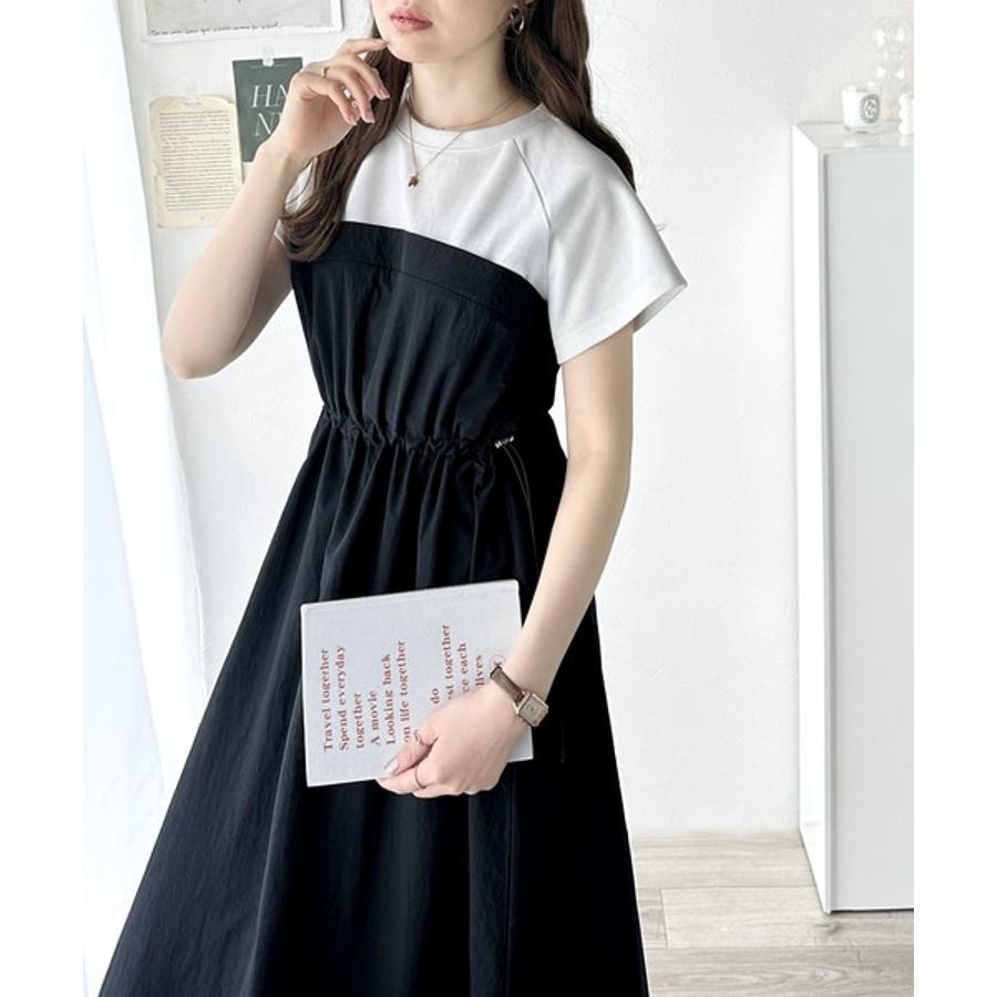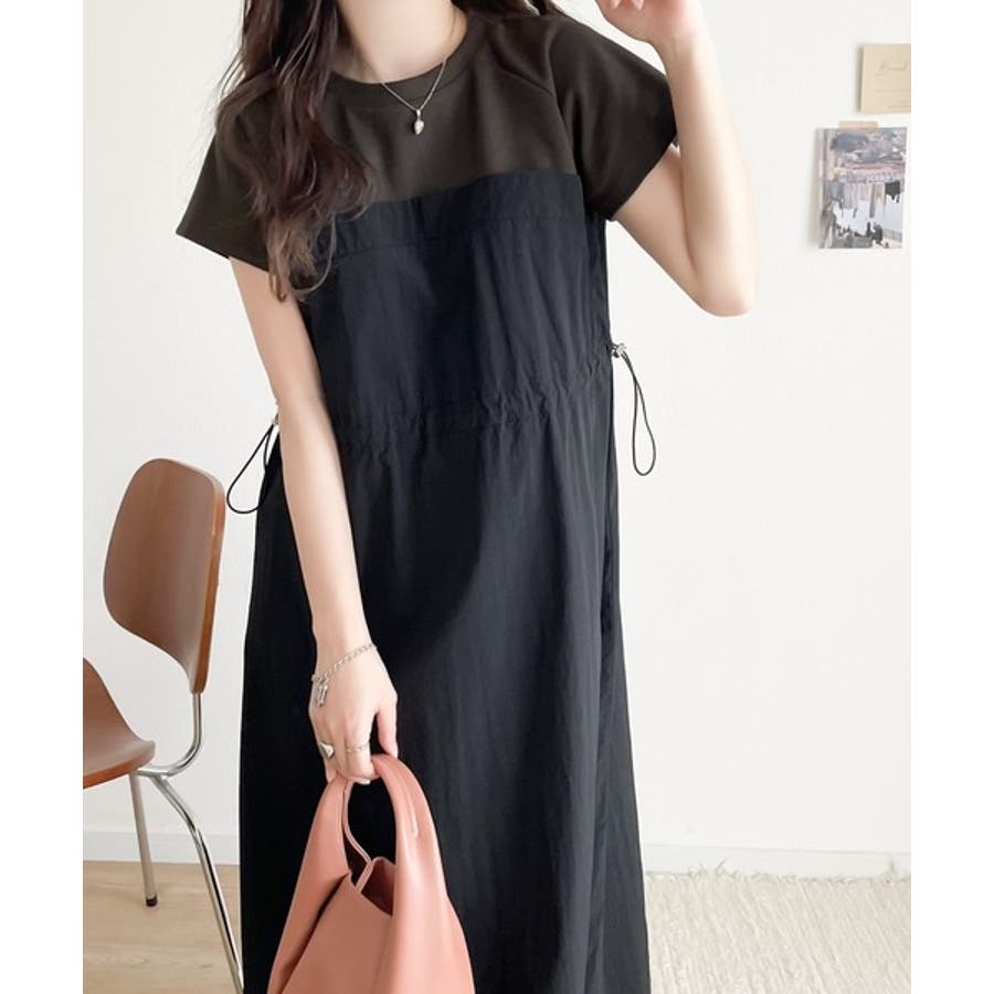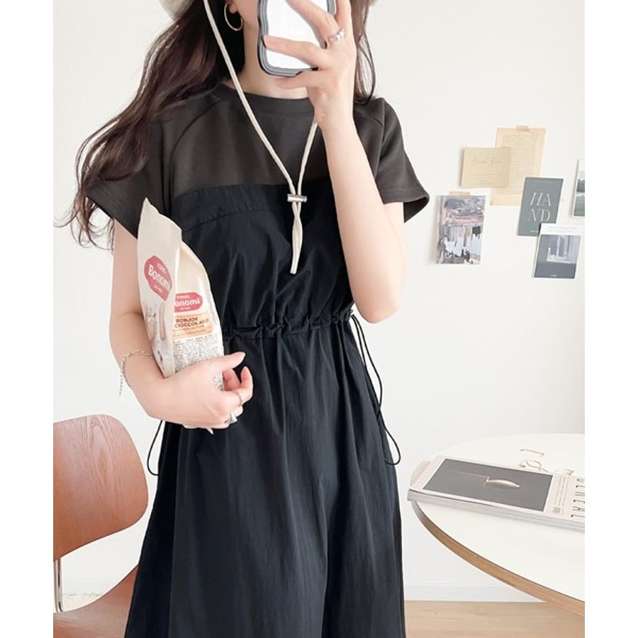 1枚でいまどきのスタイルが完成するビスチェ風ドッキングワンピース。