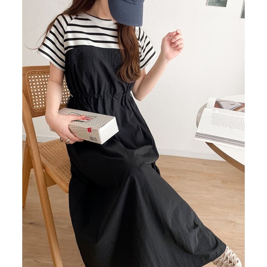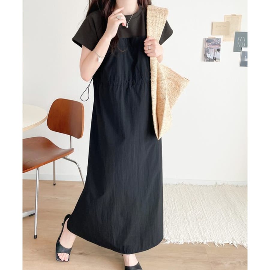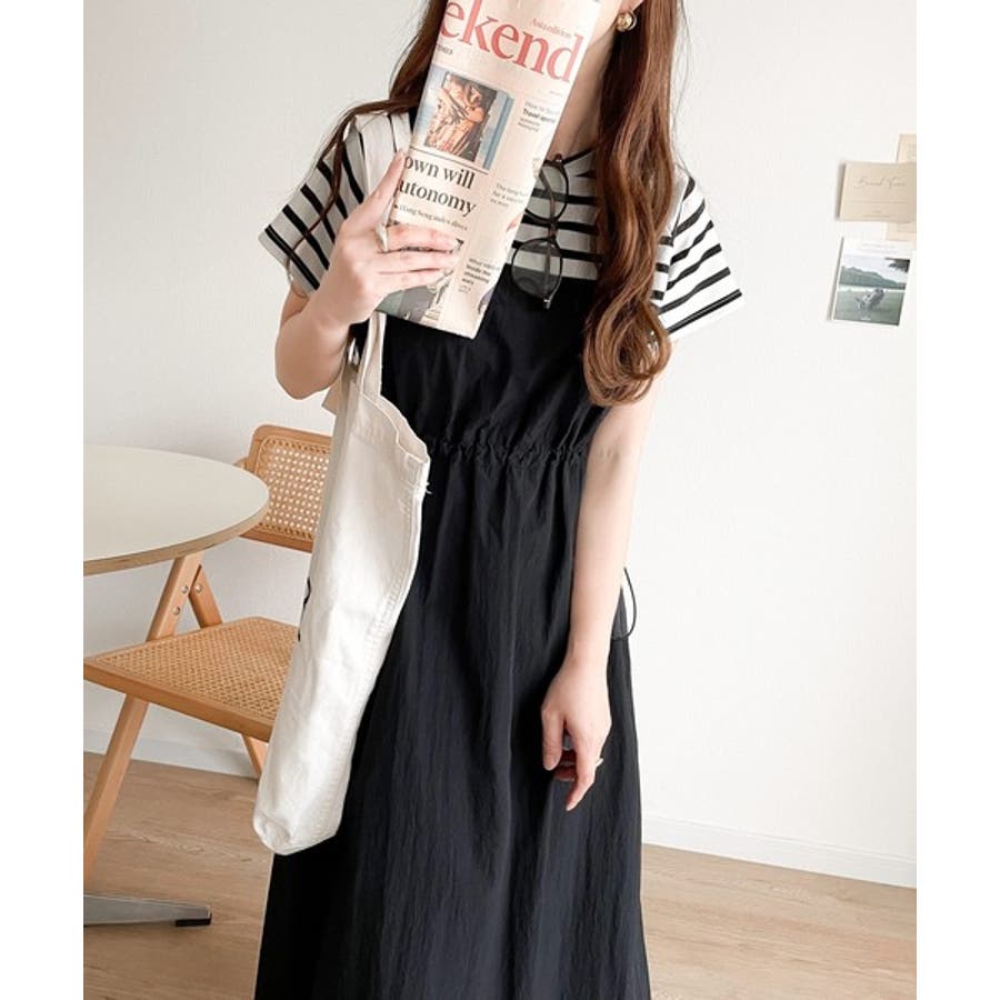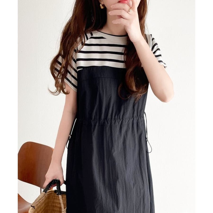 Tシャツとビスチェワンピースをレイヤードしたようなデザイン。