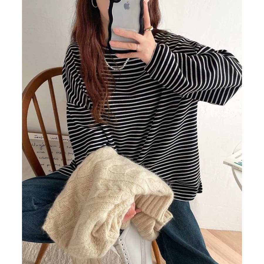 ご好評いただいている大人気”サイドスリットボーダー半袖Tシャツ”(品番:ce1020151)の長袖版が登場!