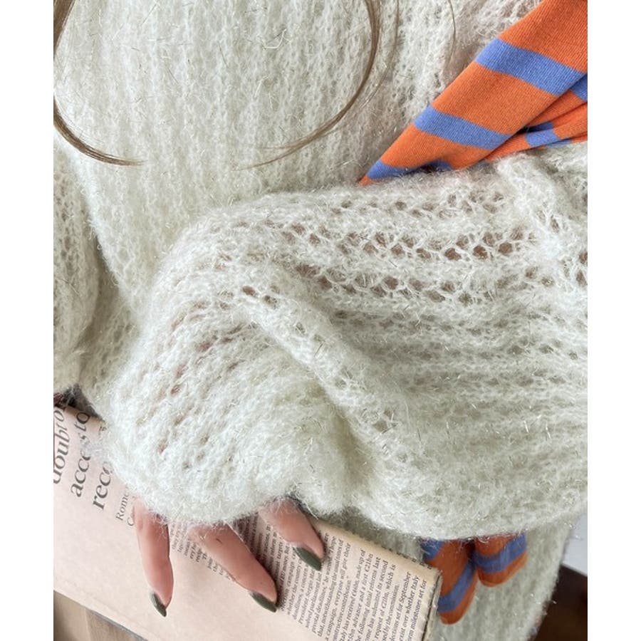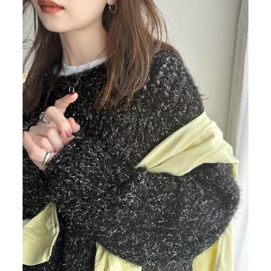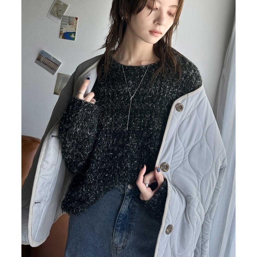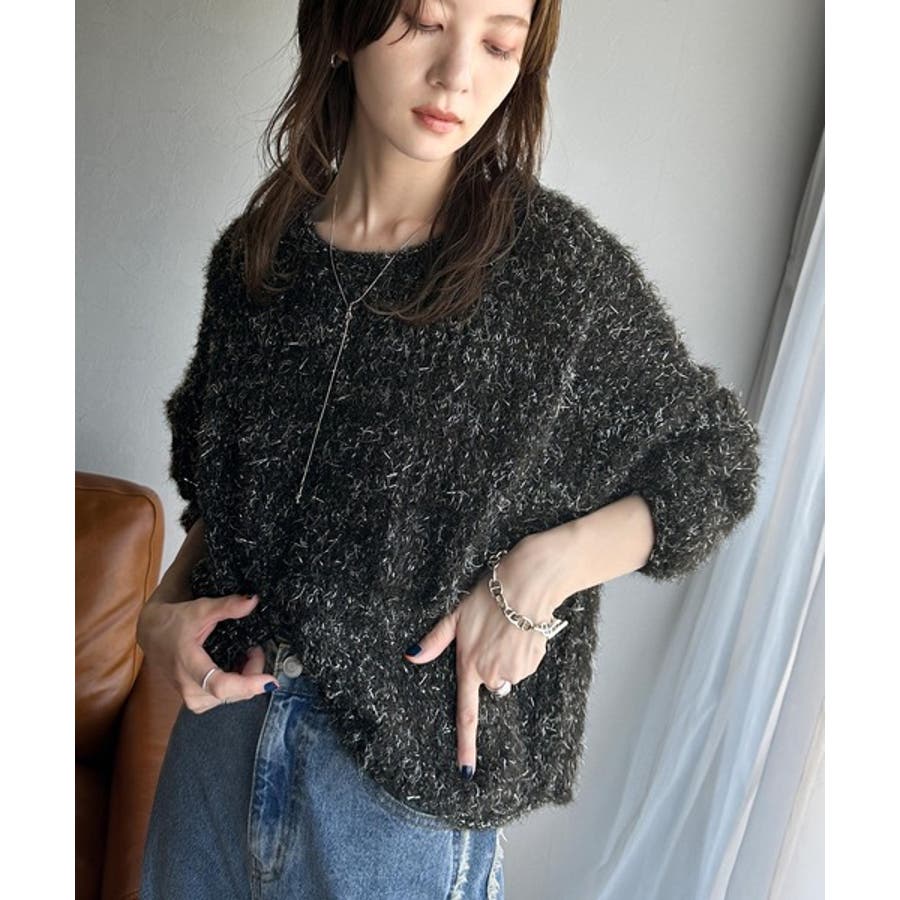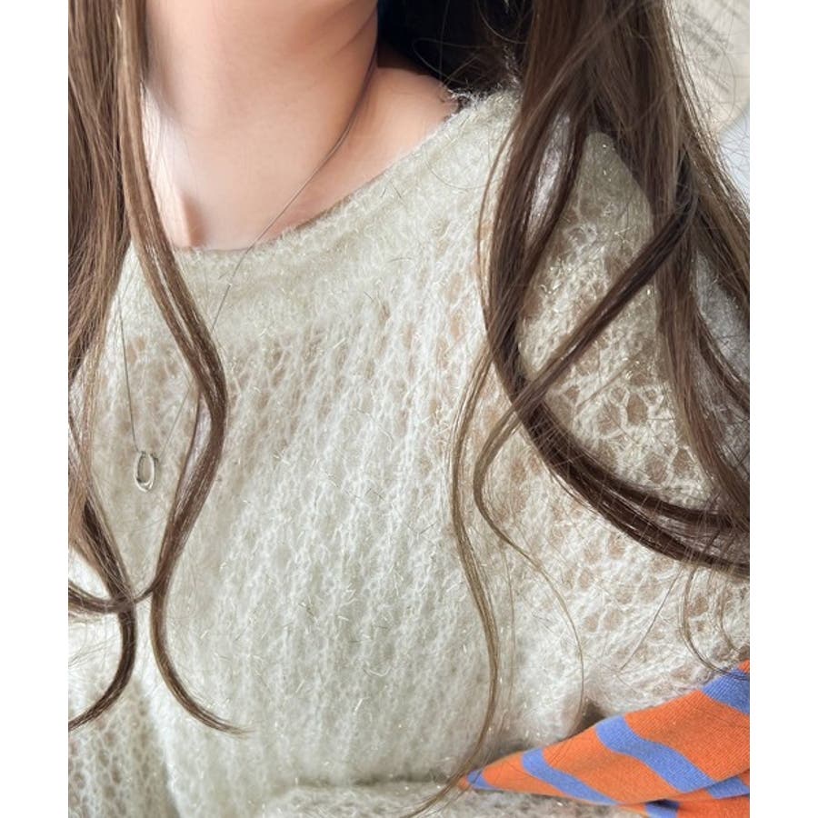 上品に煌めく。シャイニーラメゆる編みメッシュニットプルオーバー