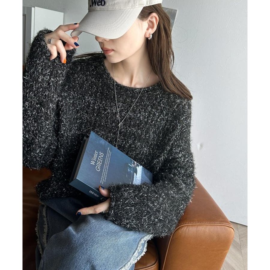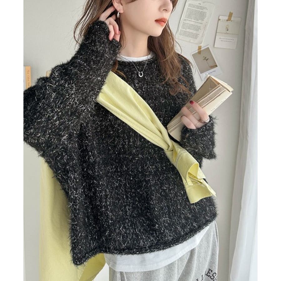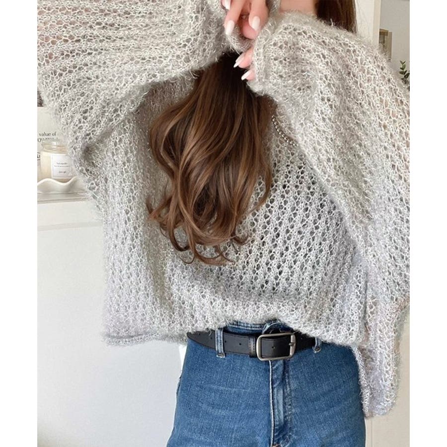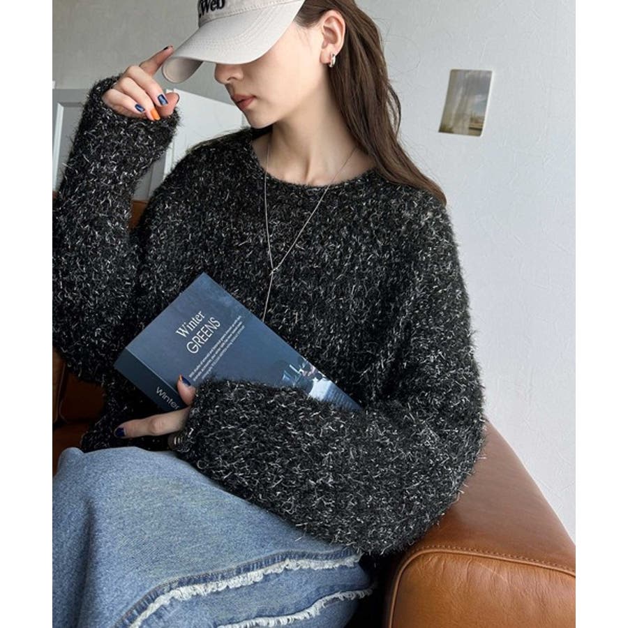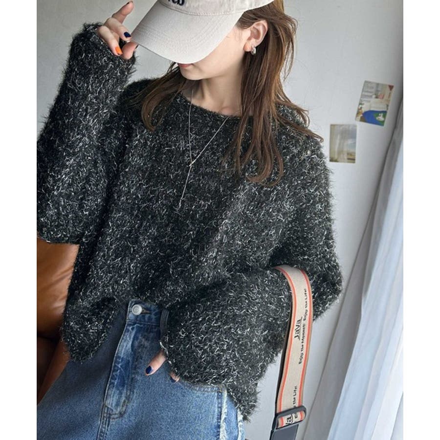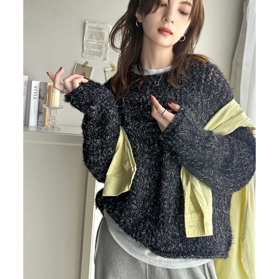 上品に煌めく。シャイニーラメゆる編みメッシュニットプルオーバー