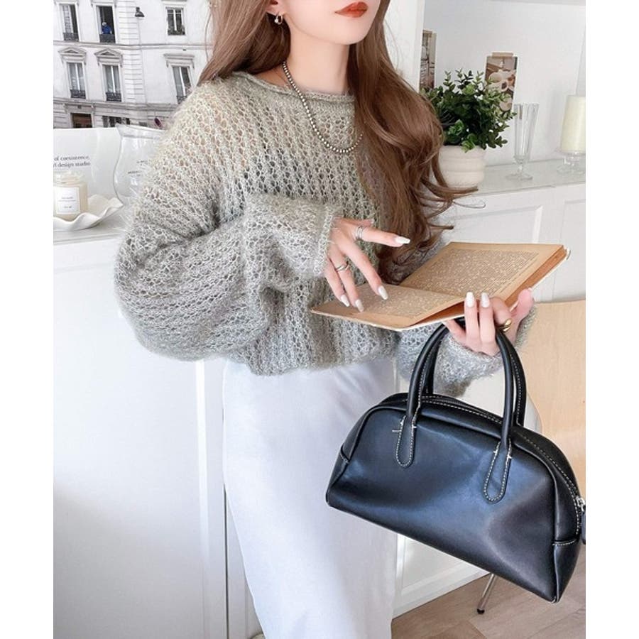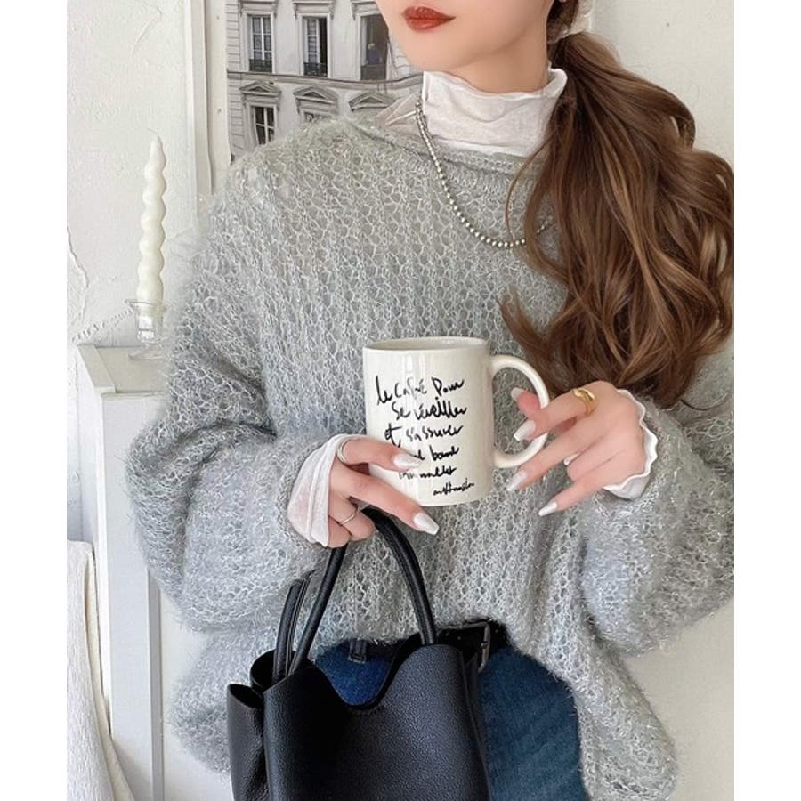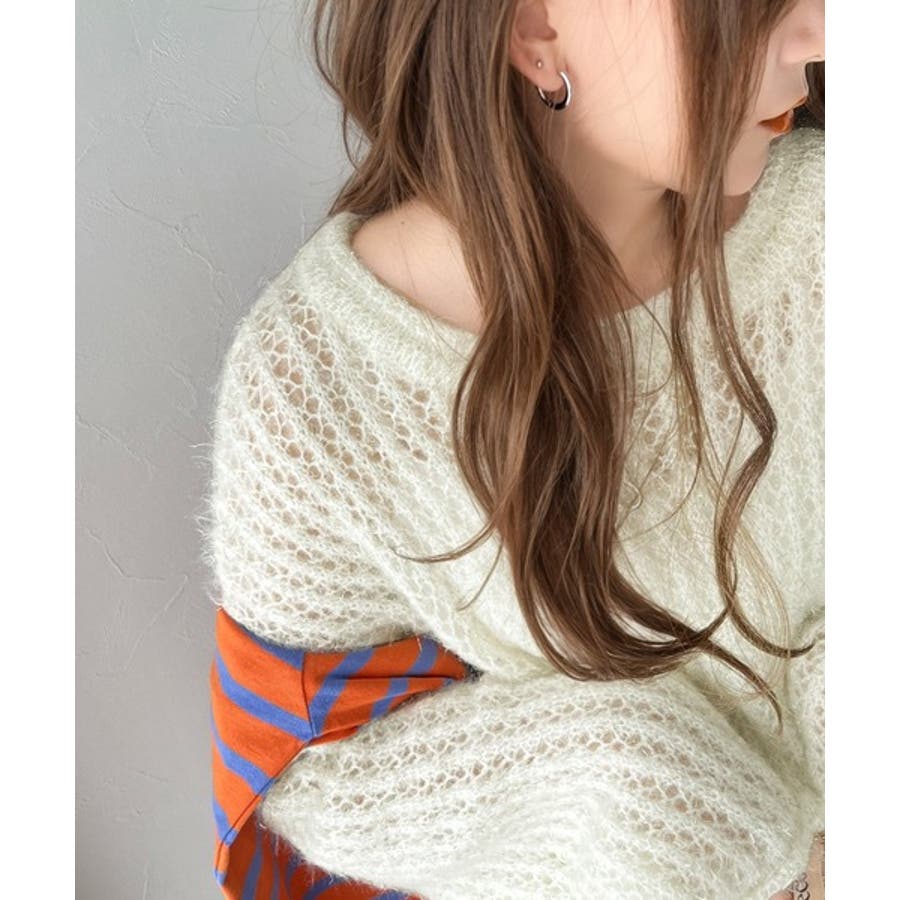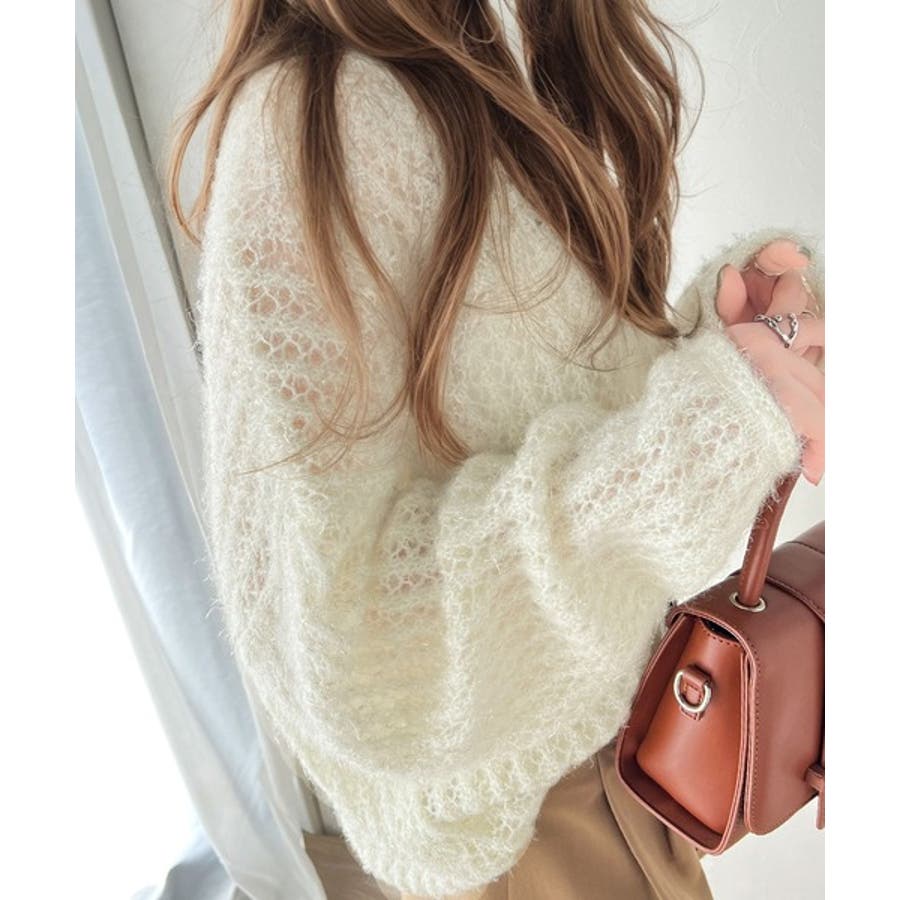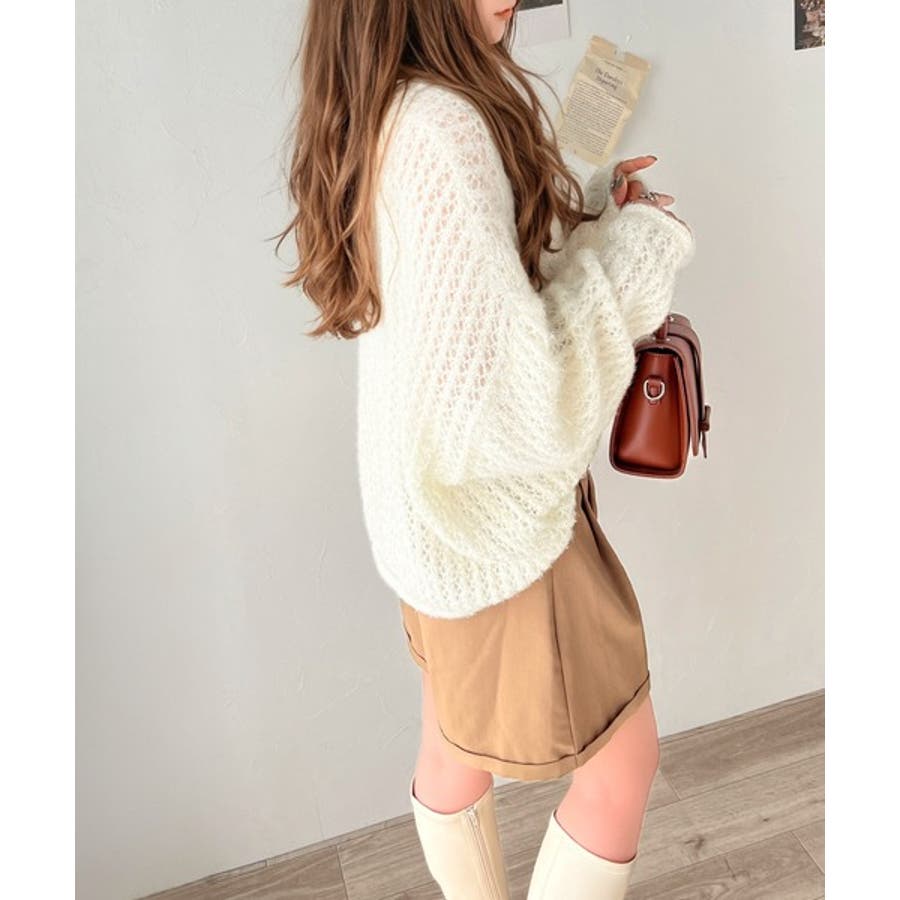 ざっくりとした透け感のある編地で、インナー次第で様々な着こなしが楽しめます。