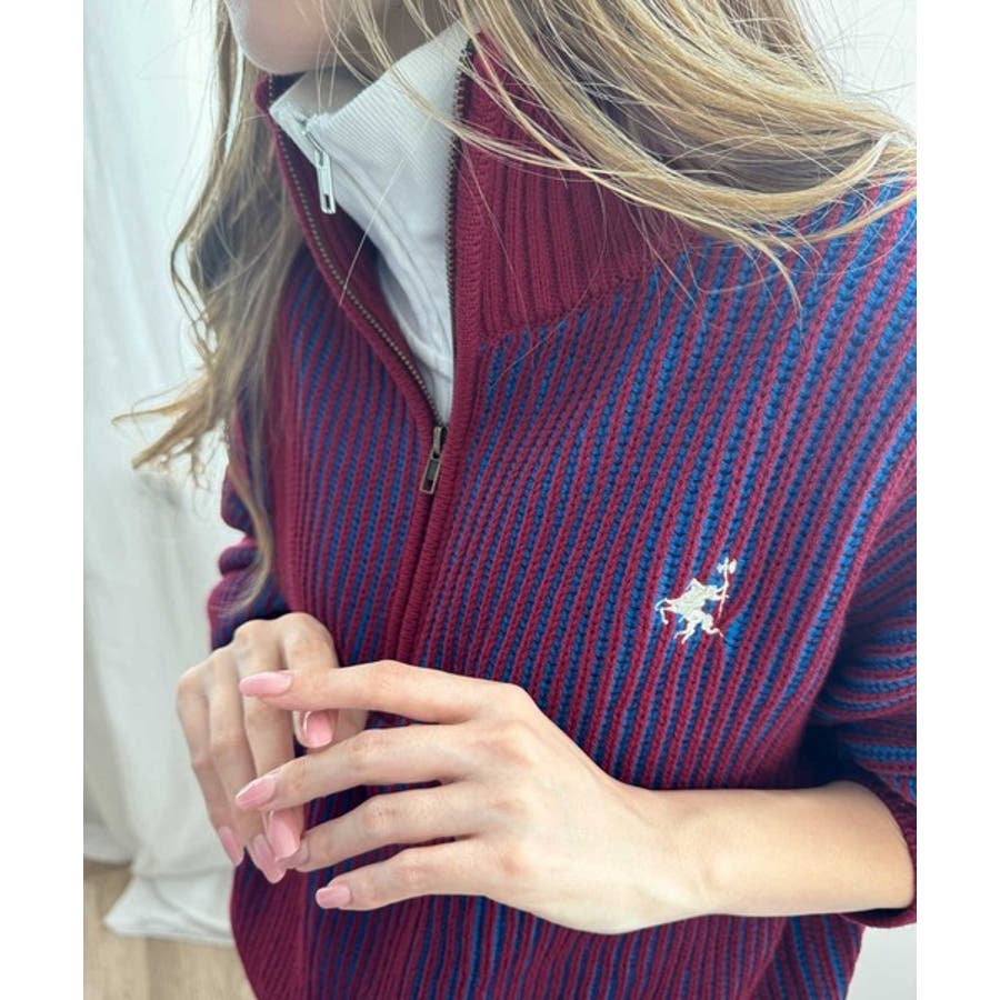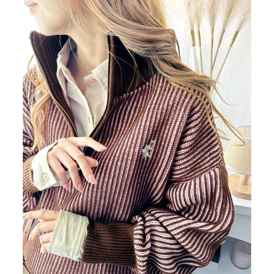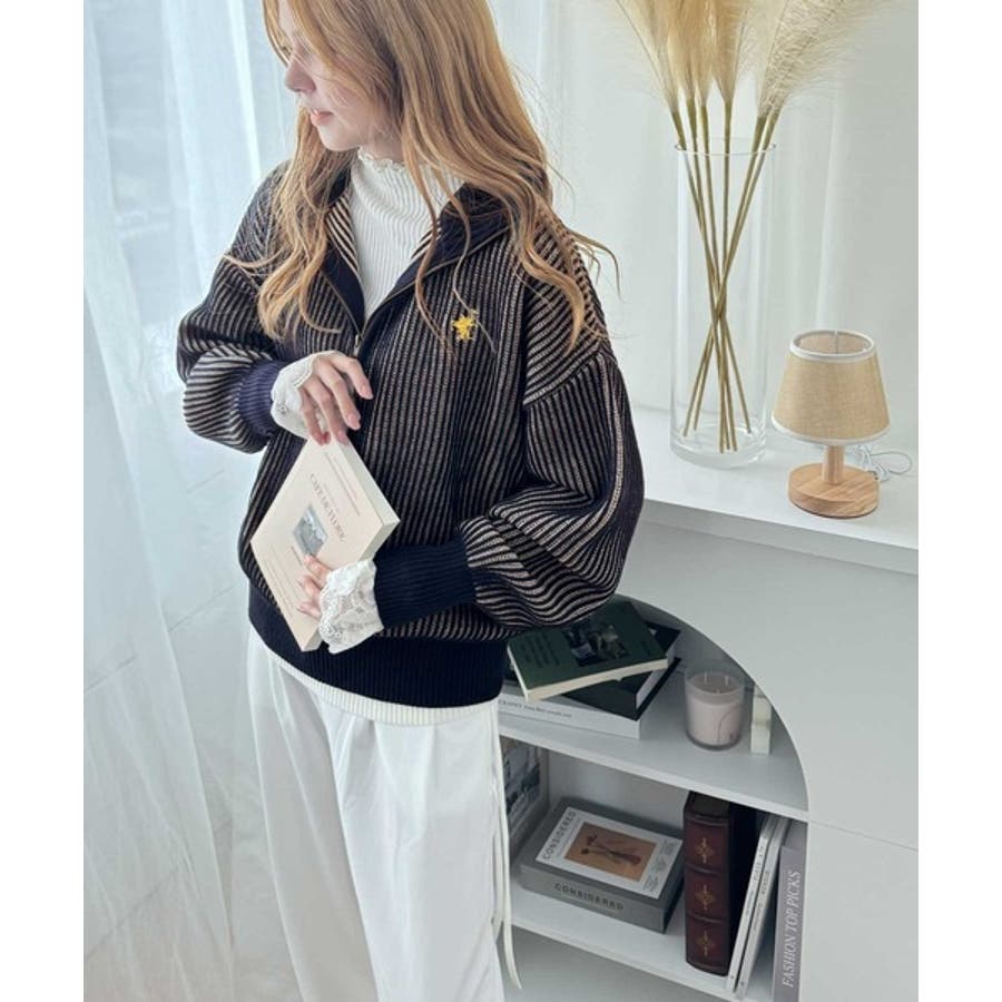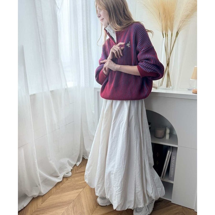 存在感溢れる配色の畦編みが大人可愛い1着。