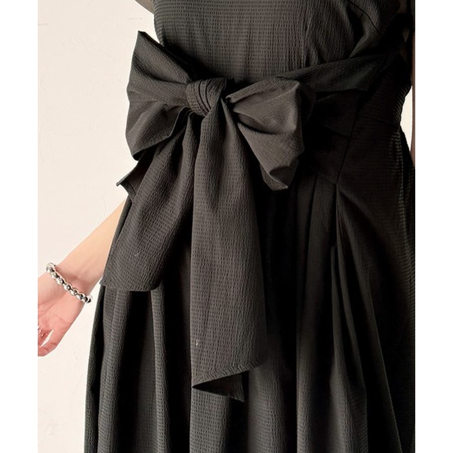 リボンディテールが特徴的で、結び方によって印象を自由に変えられるので、