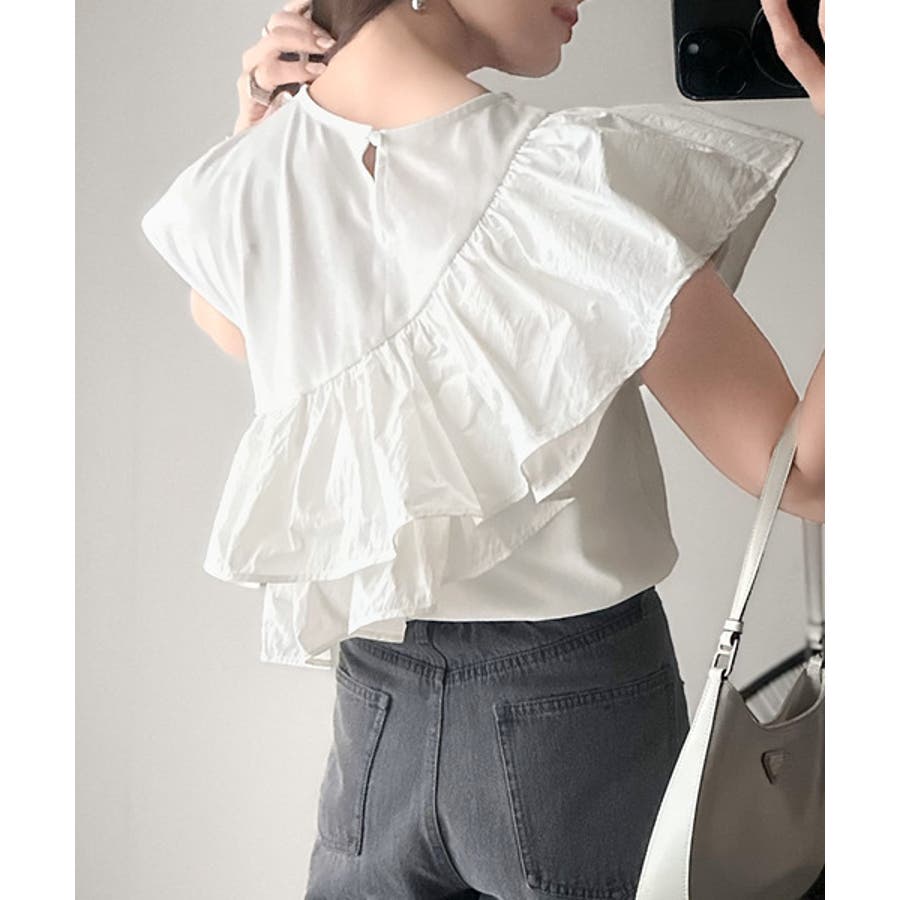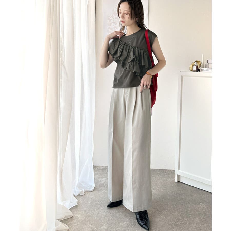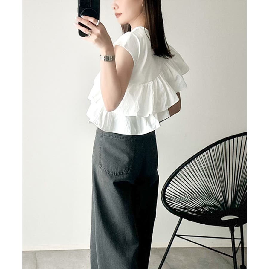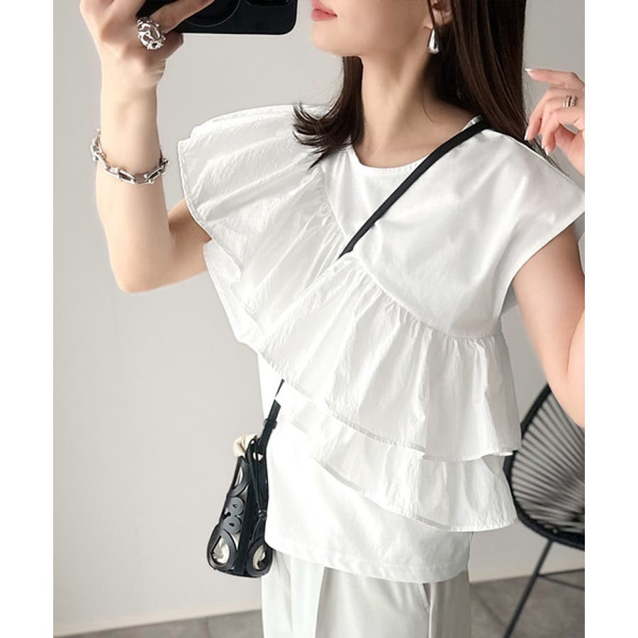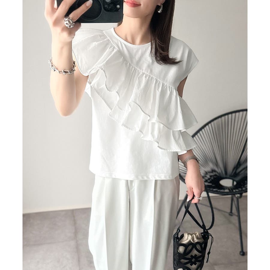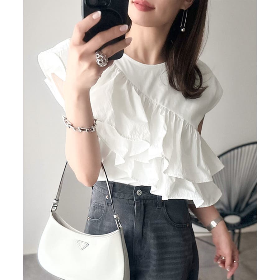 シンプルに着こなせるのに、存在感抜群なラッフルトップス。