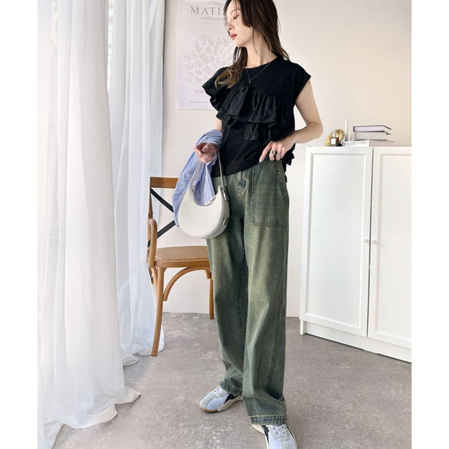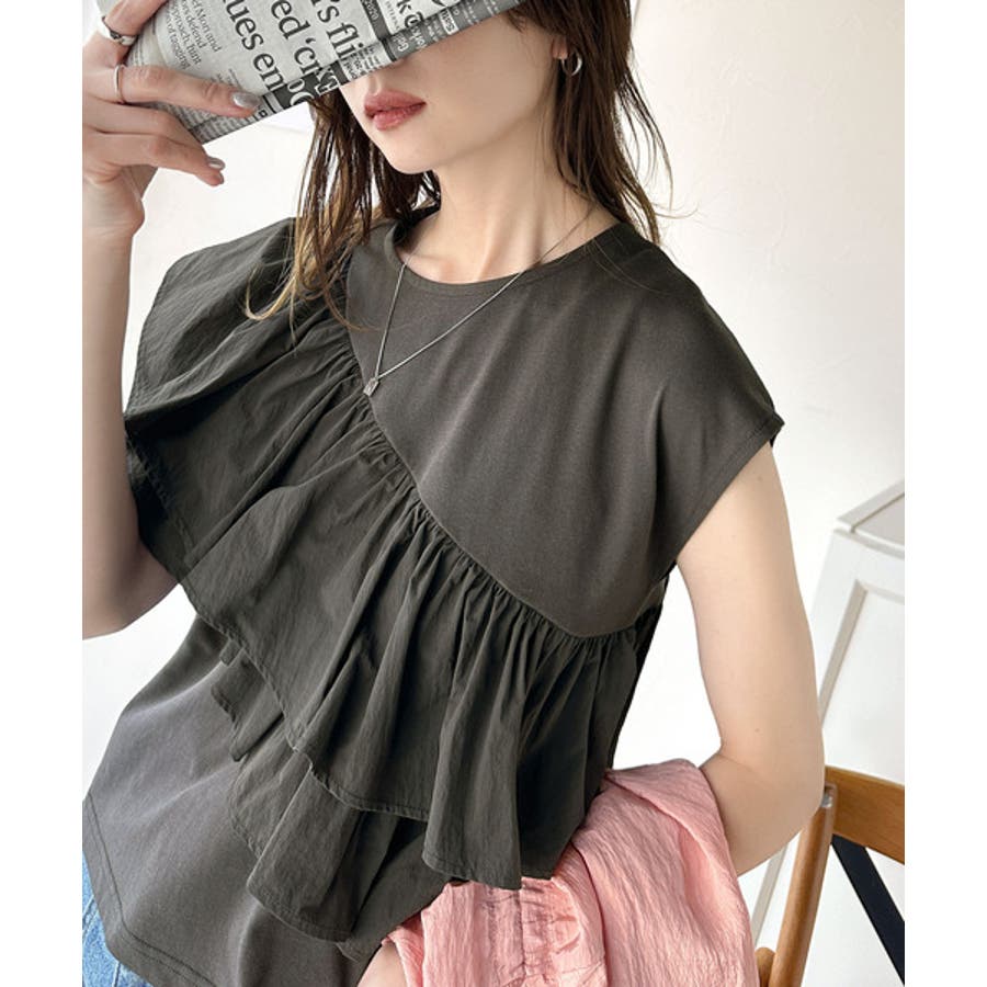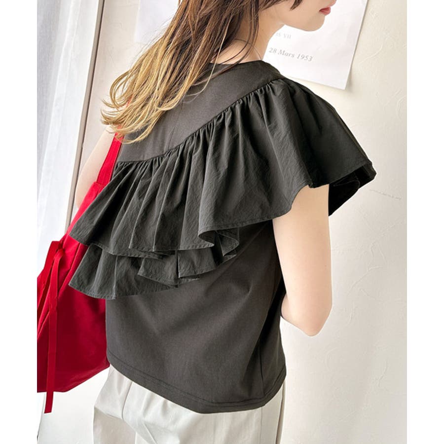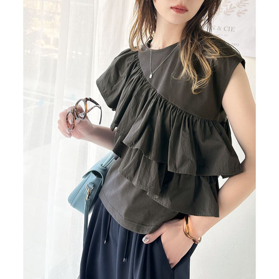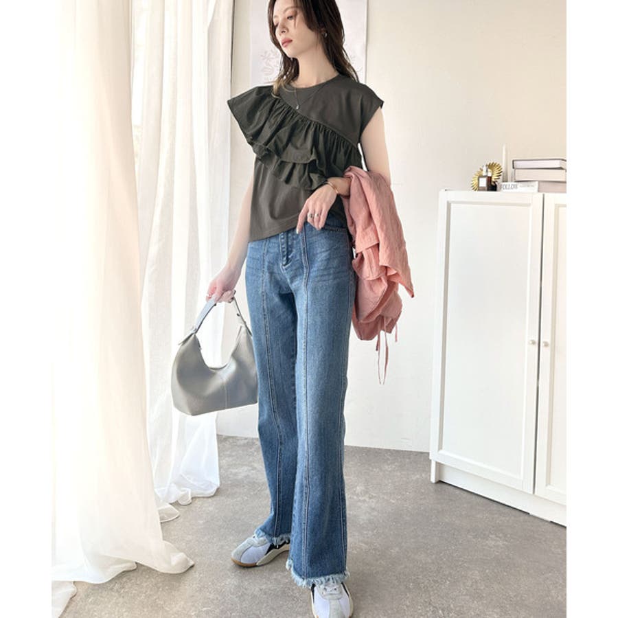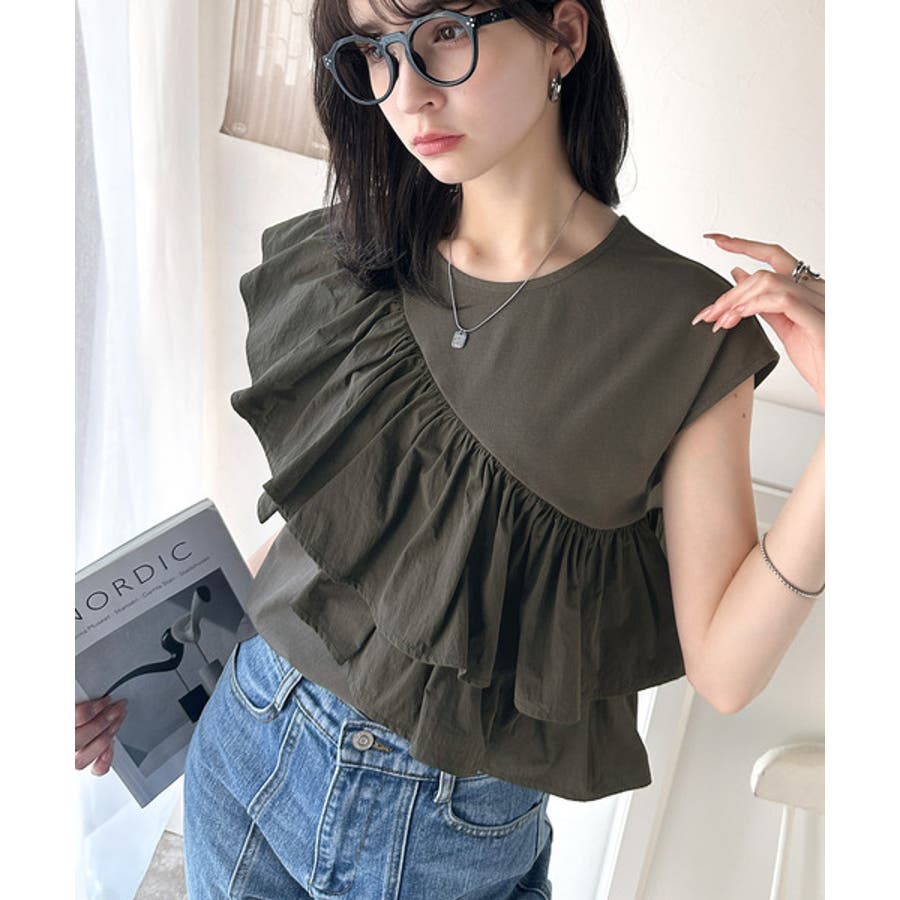 シンプルに着こなせるのに、存在感抜群なラッフルトップス。