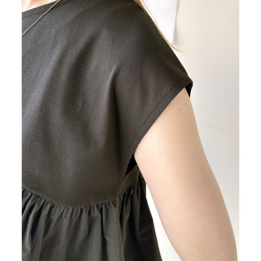 肌ざわりの良いカットソー生地に異素材のラッフルが