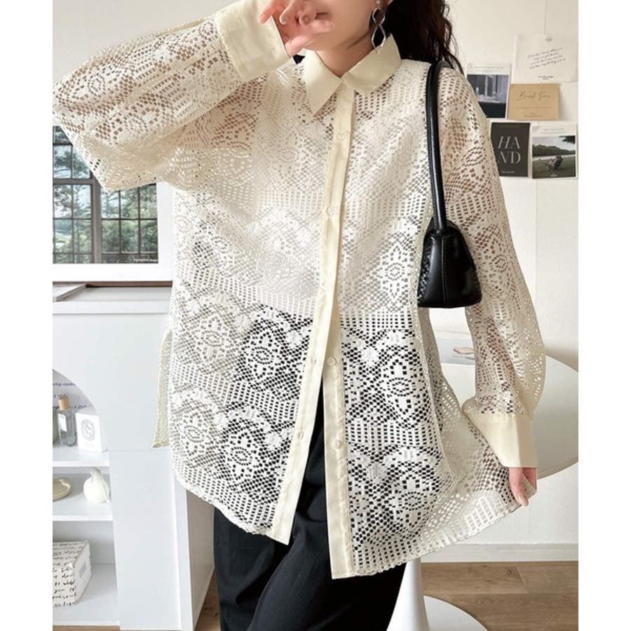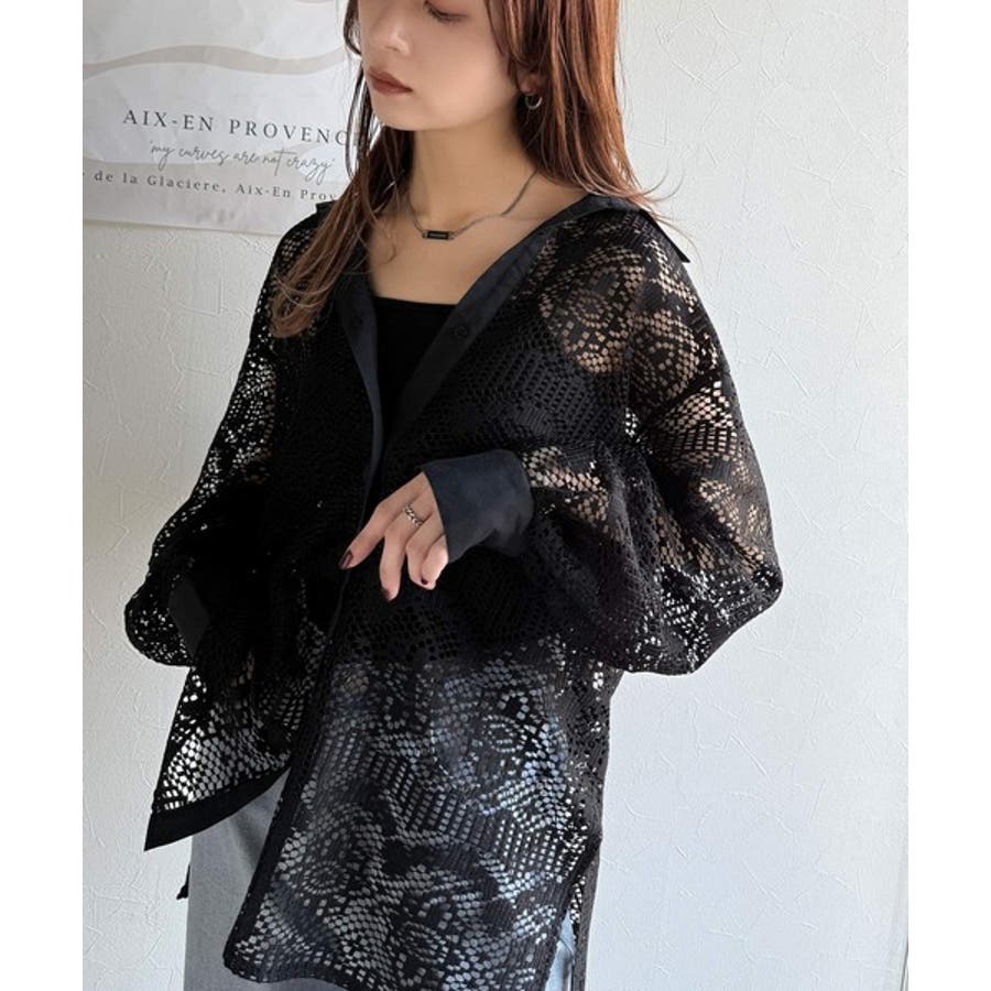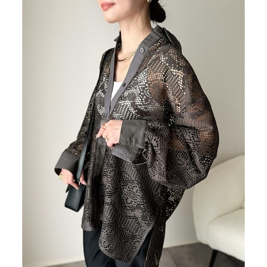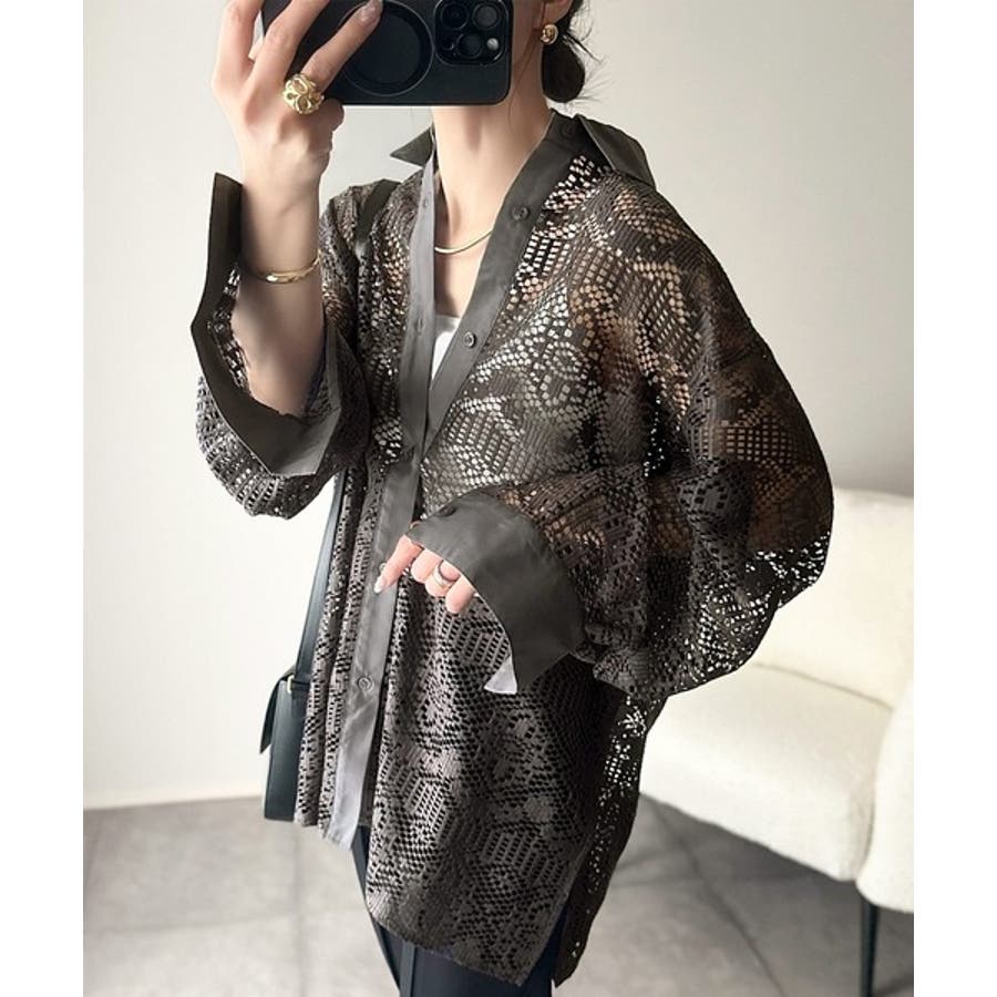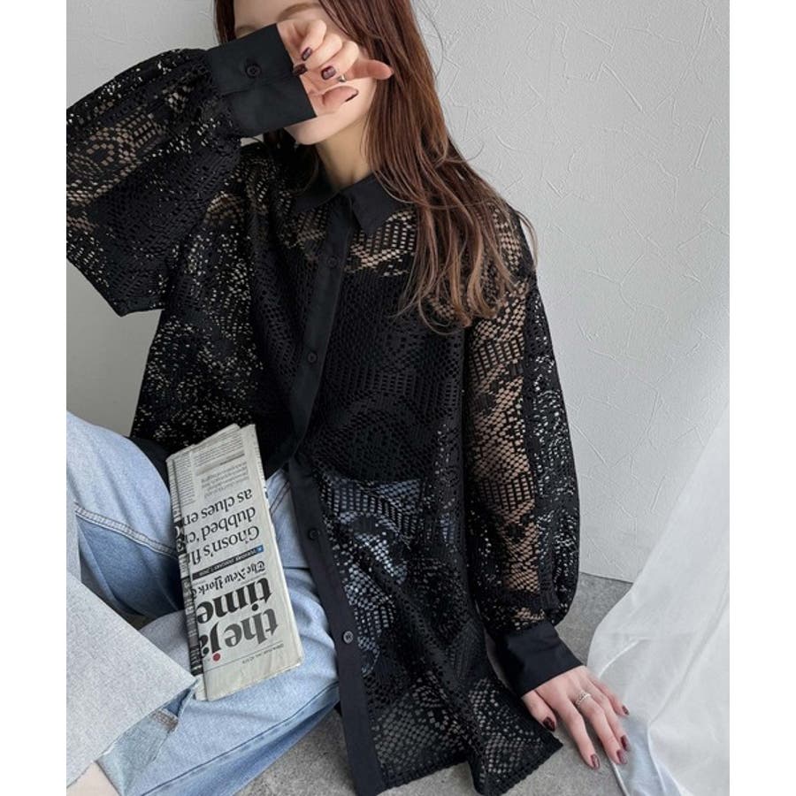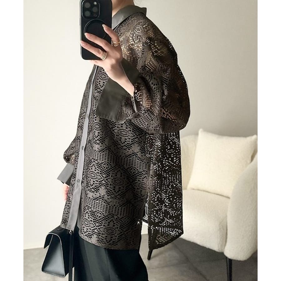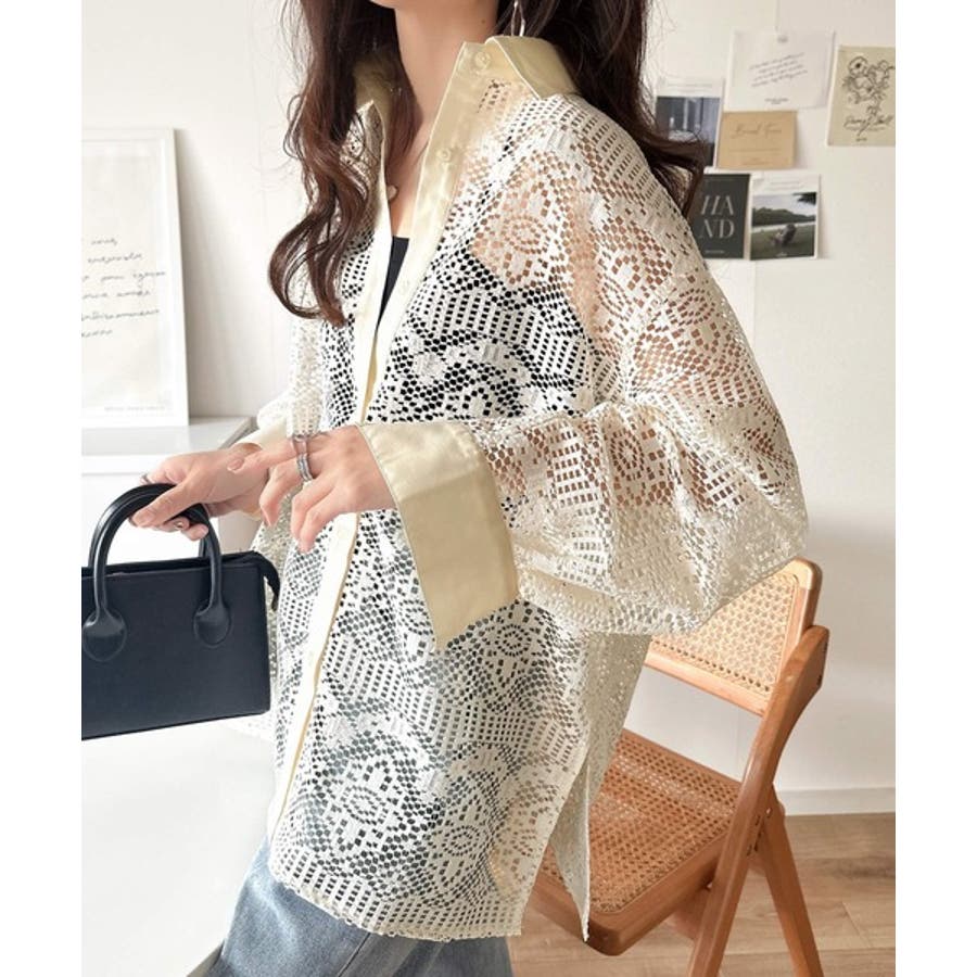 透け感が美しい、レース素材が魅力のオーバーサイズシャツ。