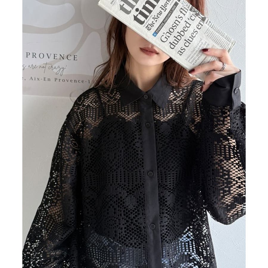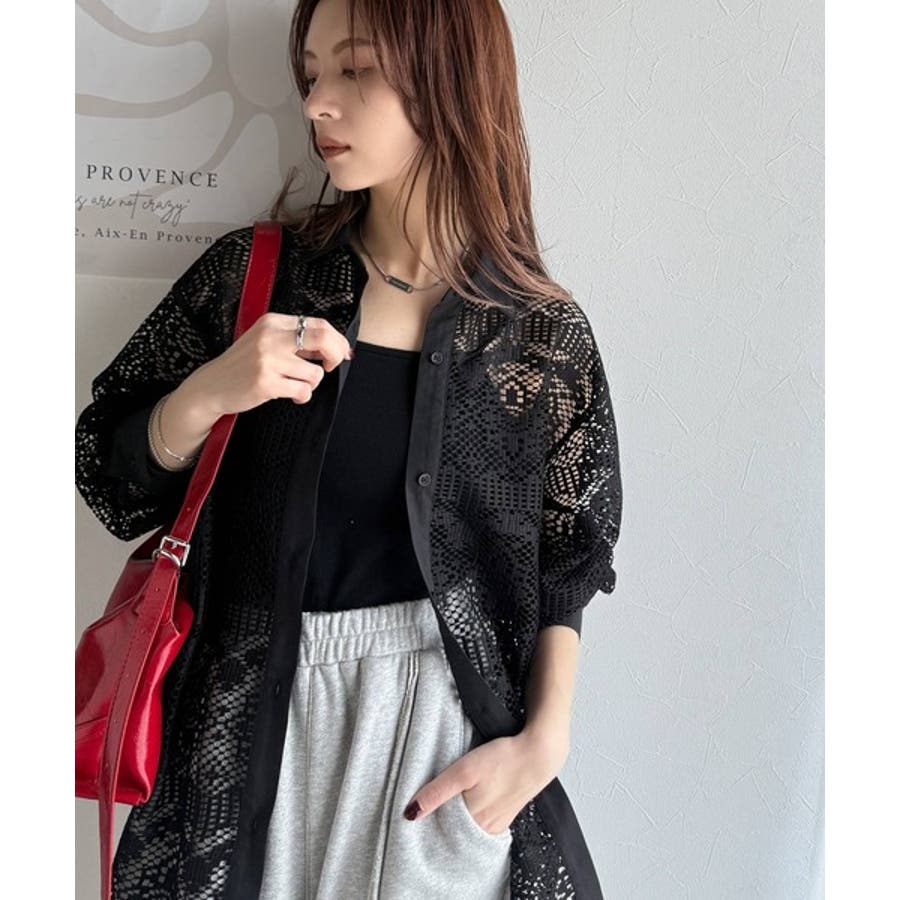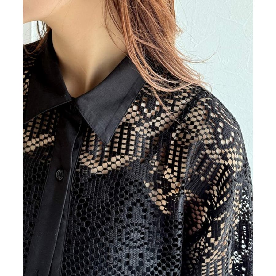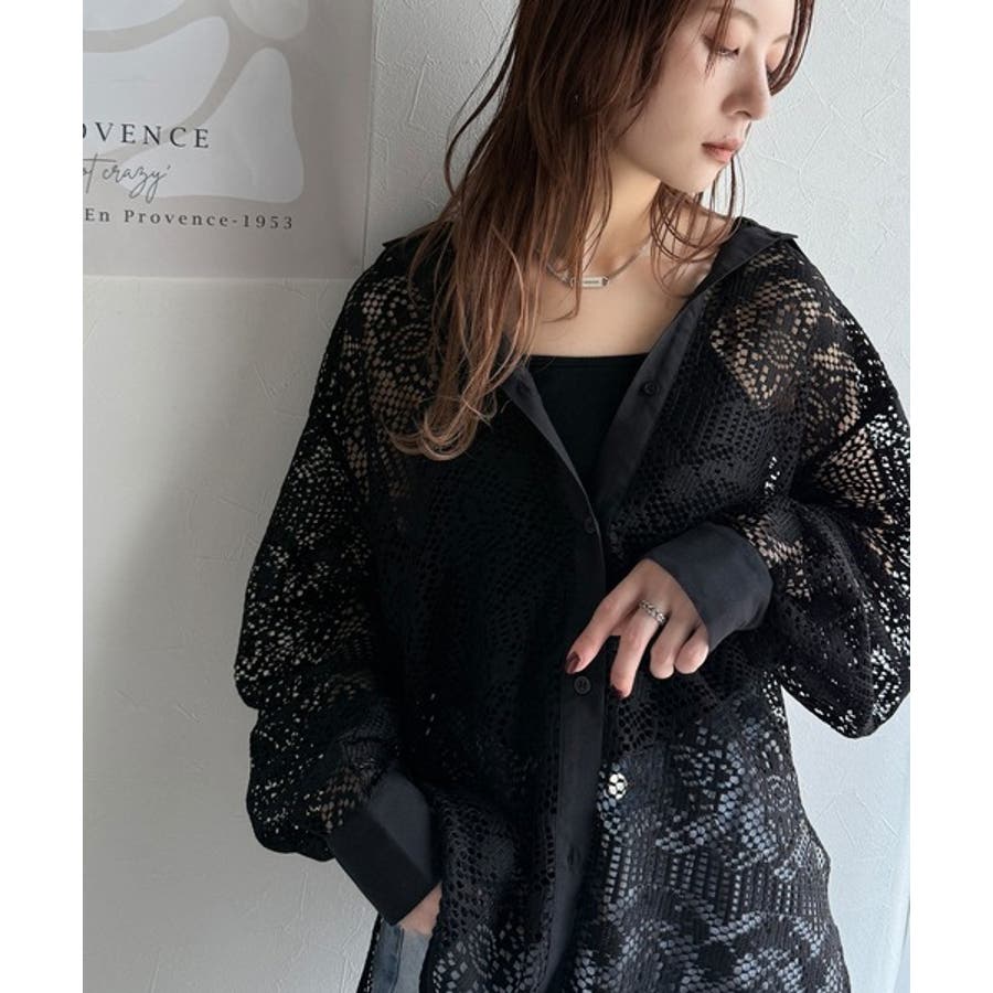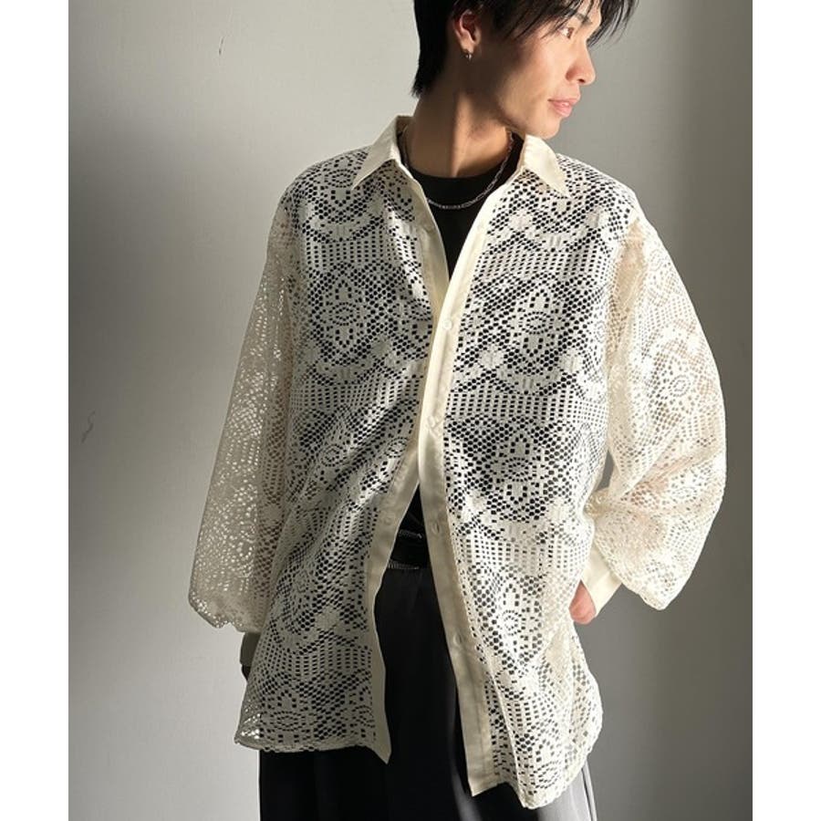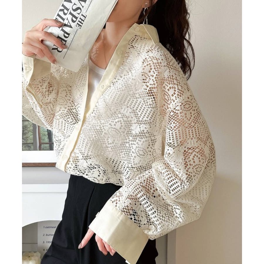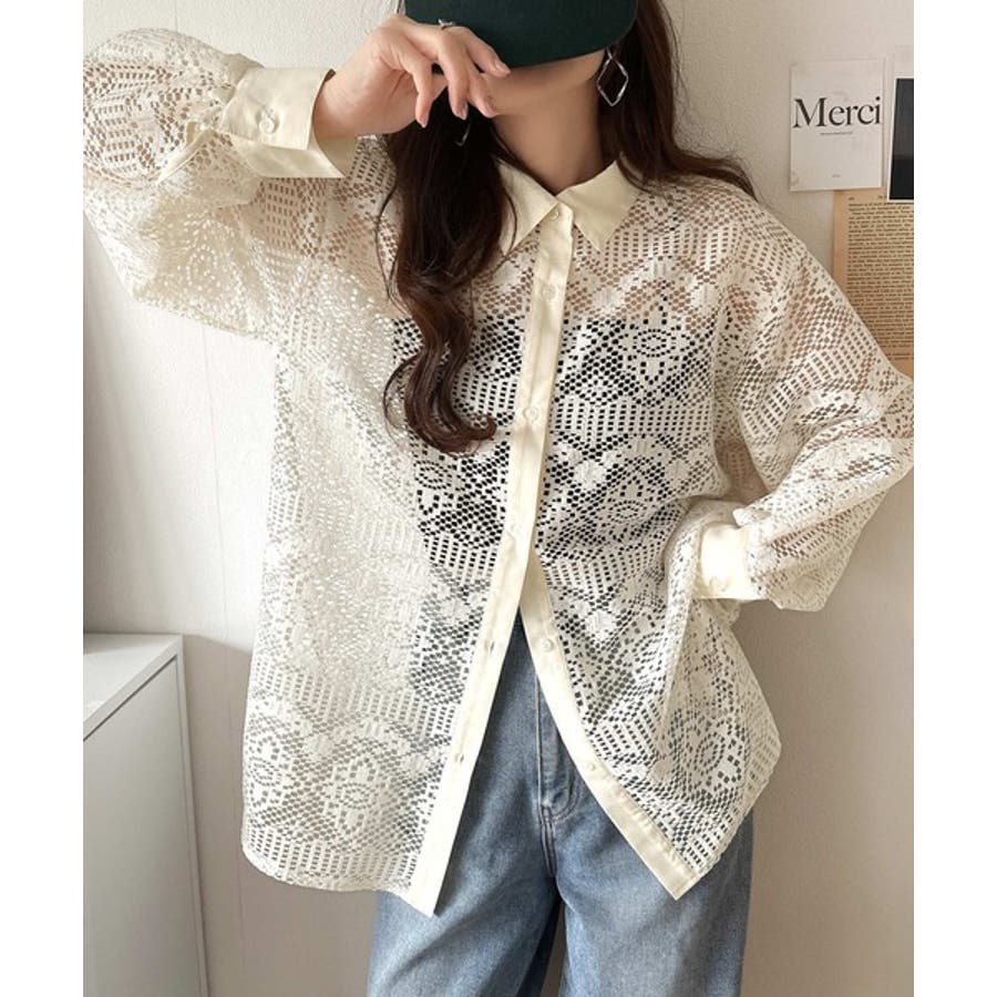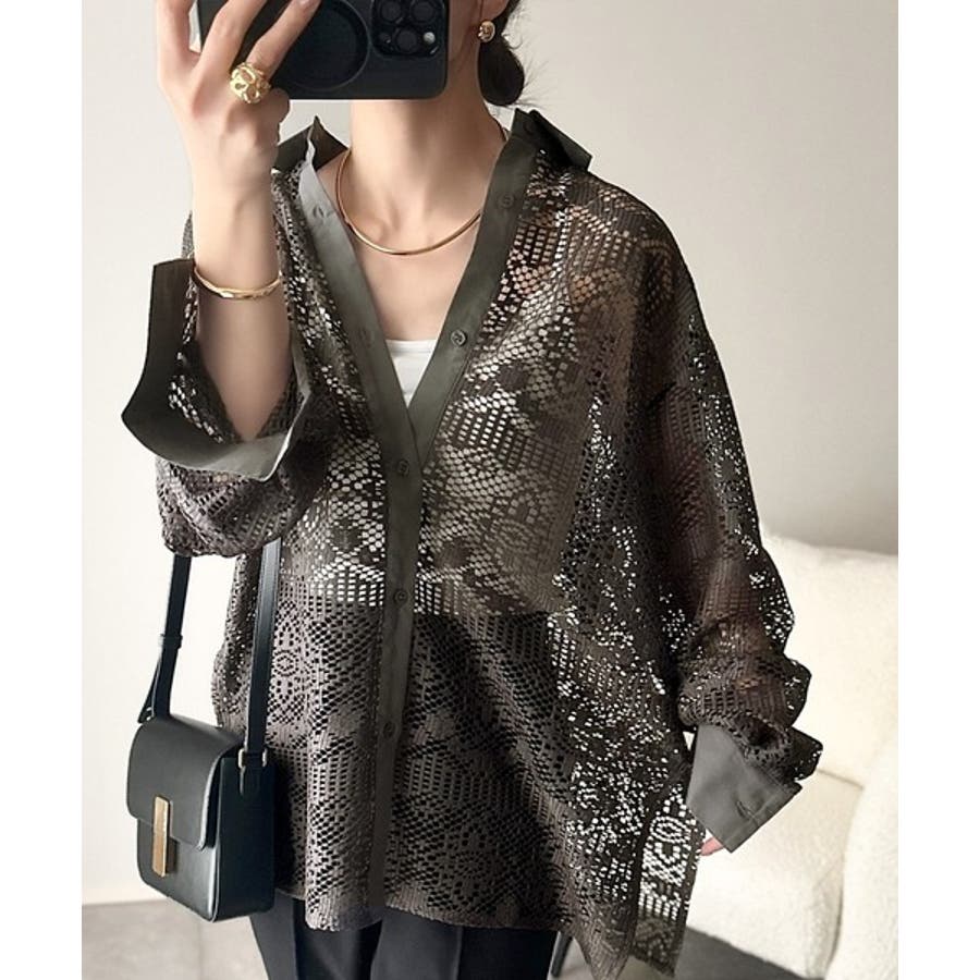 透け感が美しい、レース素材が魅力のオーバーサイズシャツ。