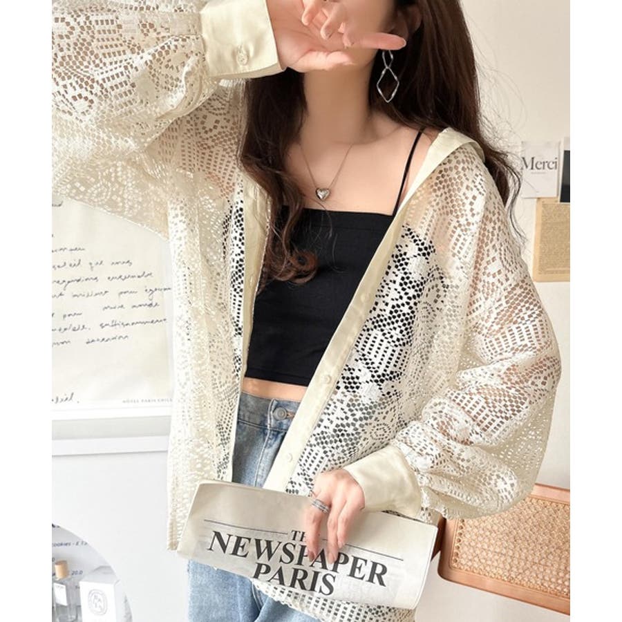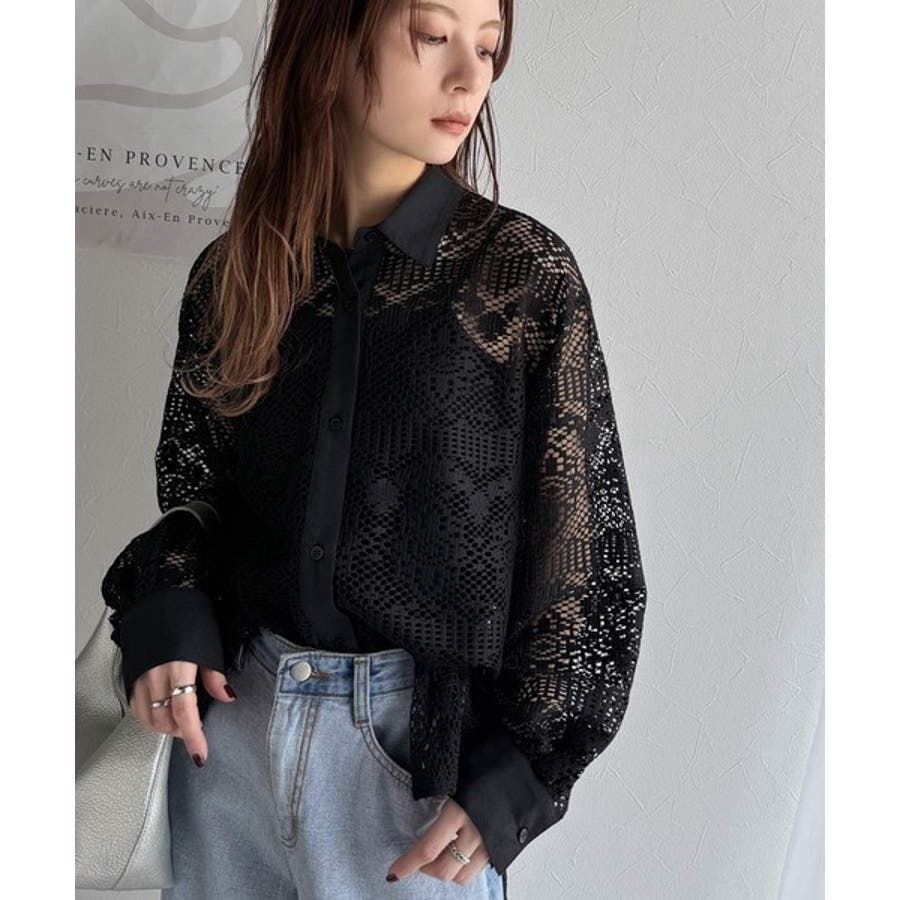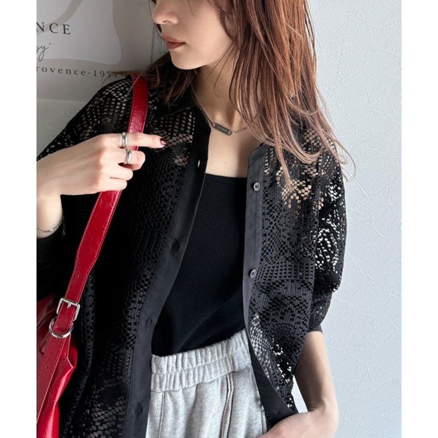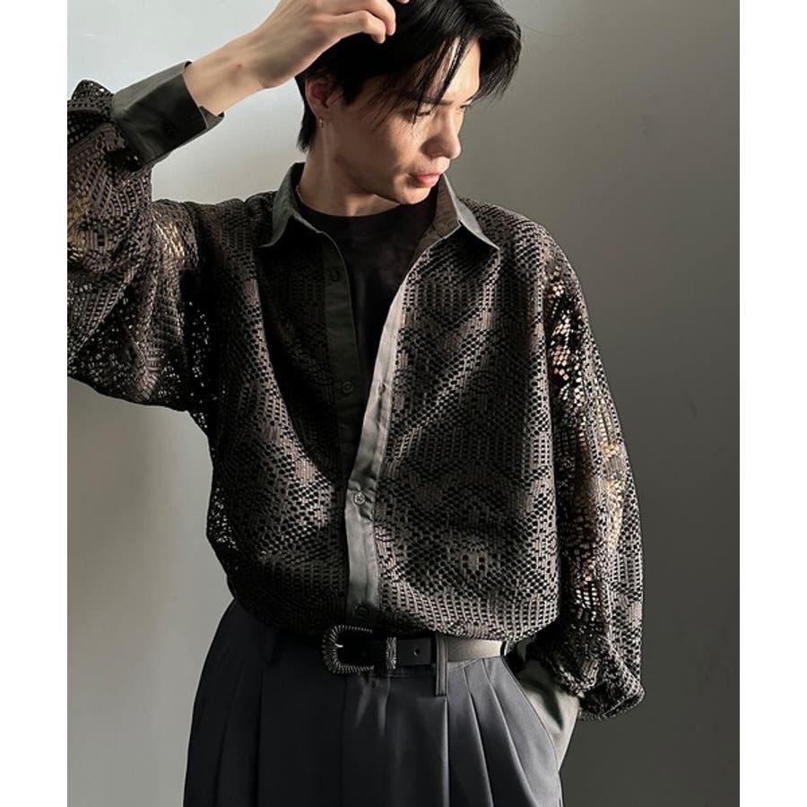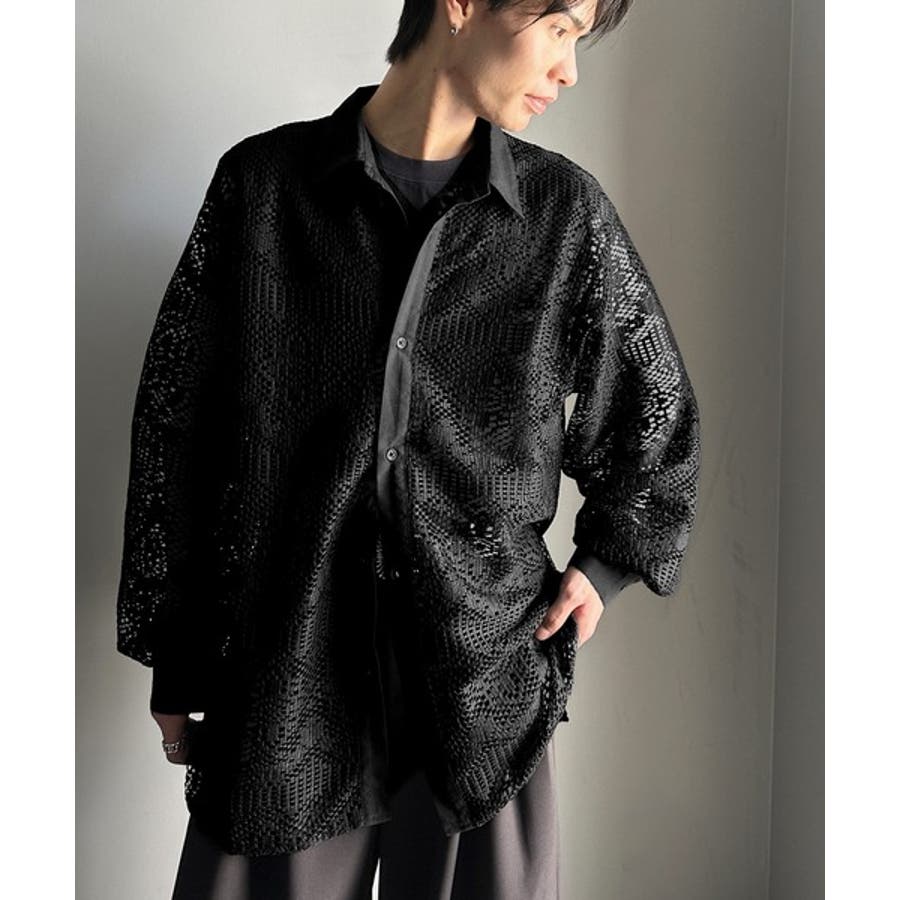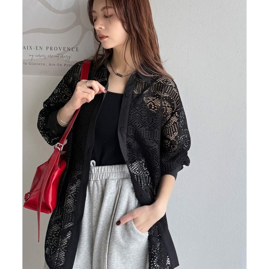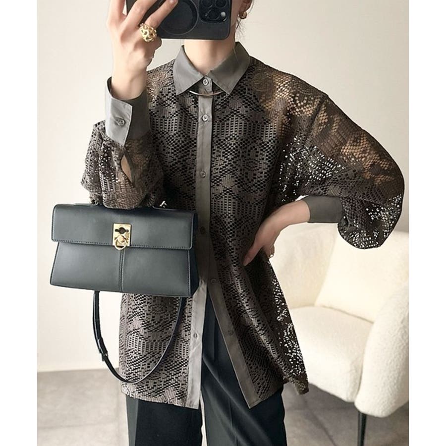 透け感が美しい、レース素材が魅力のオーバーサイズシャツ。