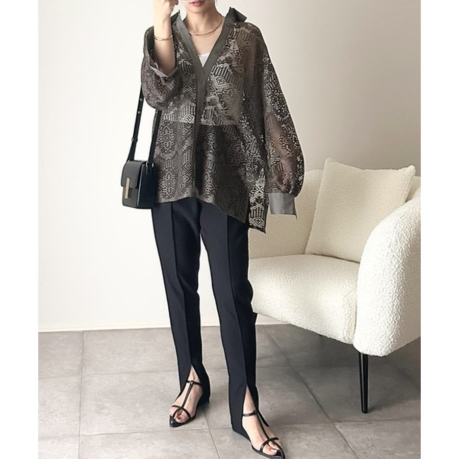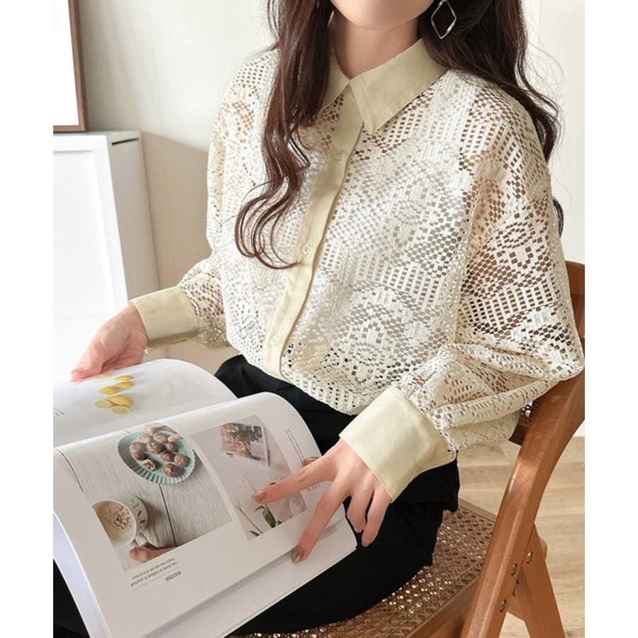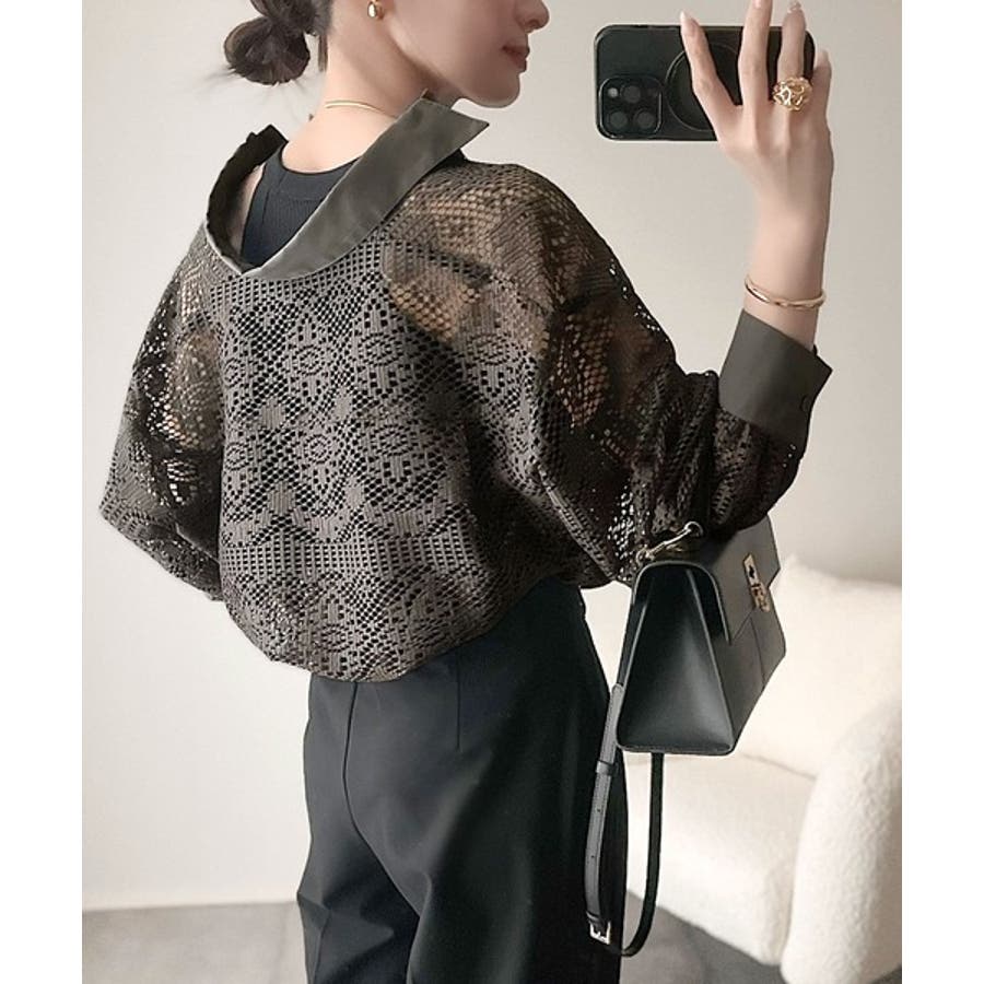 上品な透け感×大人カジュアル。レースオーバーサイズシャツブラウス(長袖)