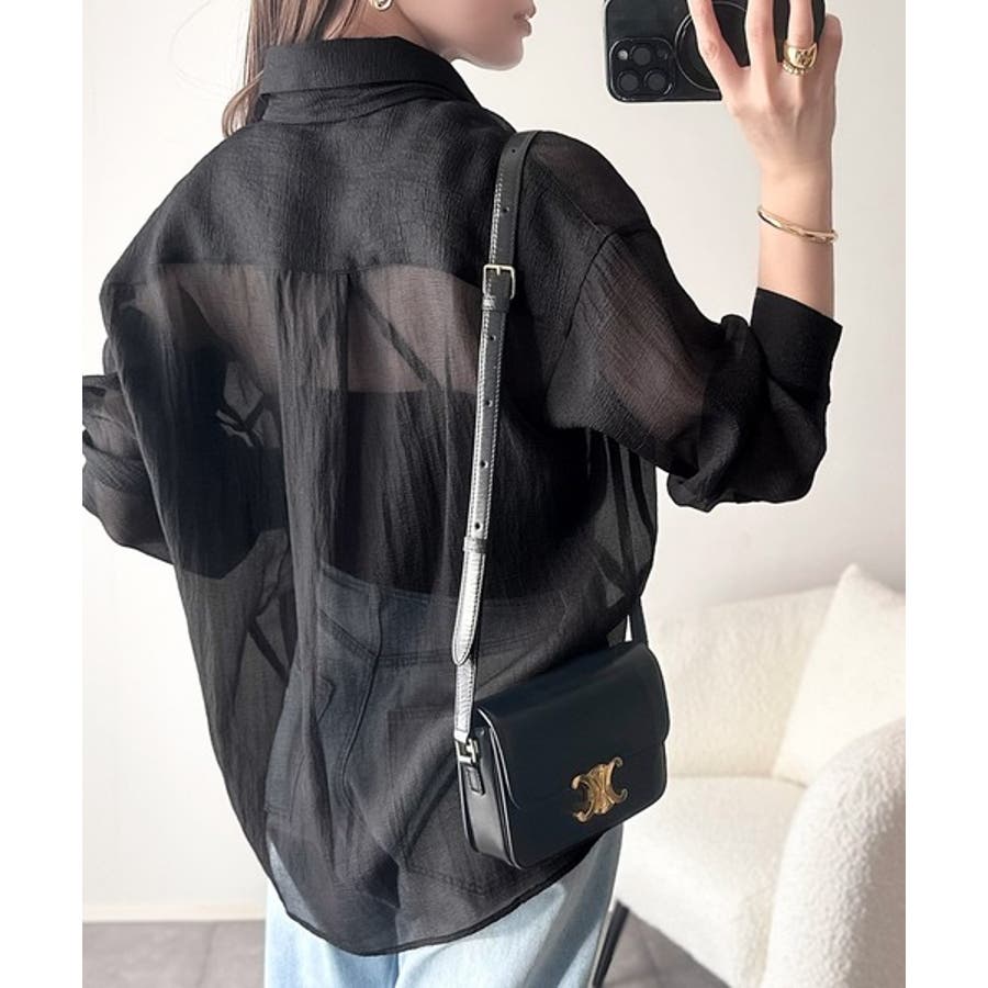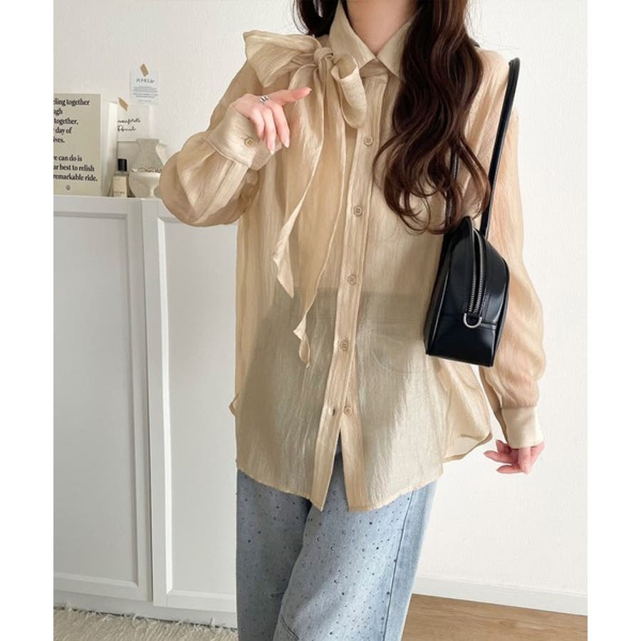 このリボンタイ付きシアーシャツは、まさに春夏を彩る一枚。