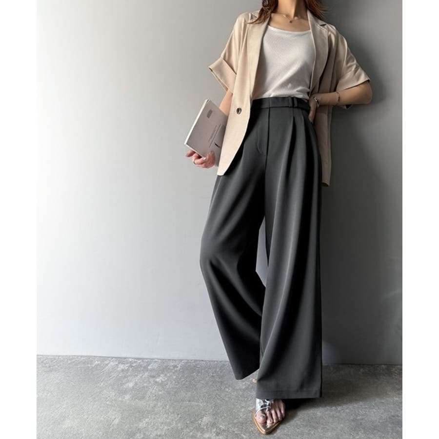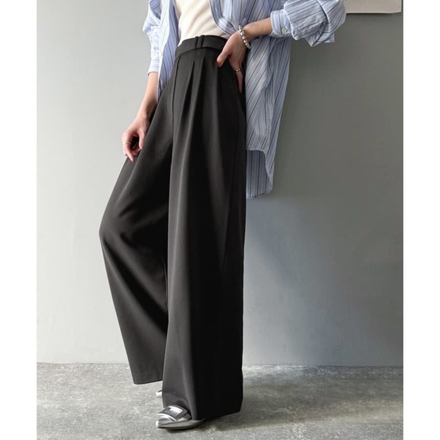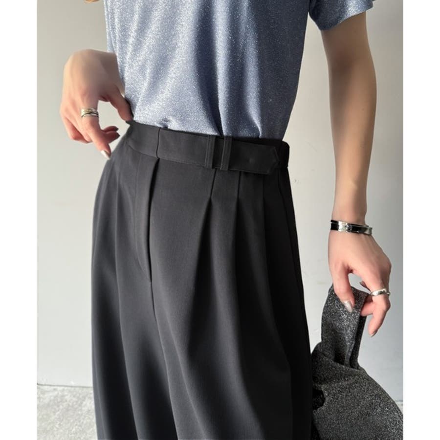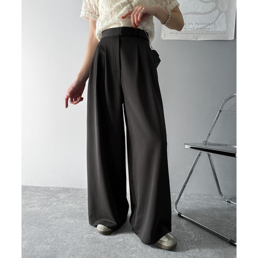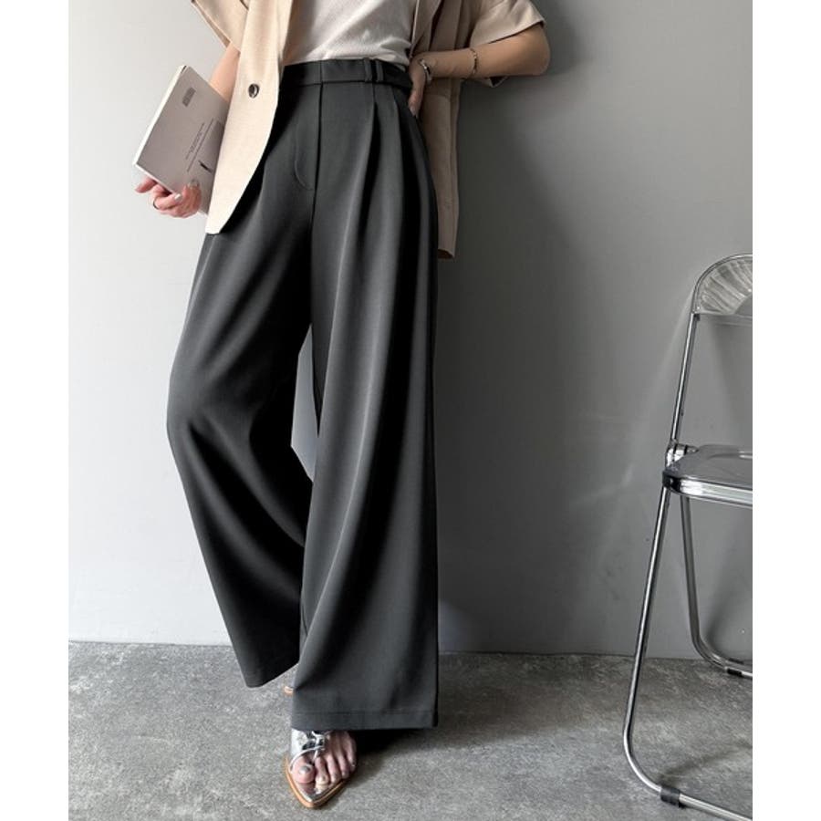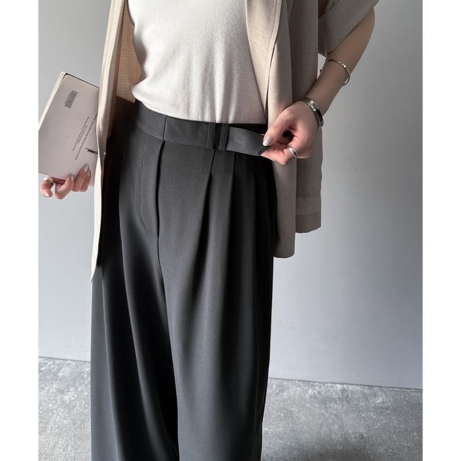 穿くだけで即キレイ見え。サイドベルトデザイン3タックストレッチスラックスパンツ
