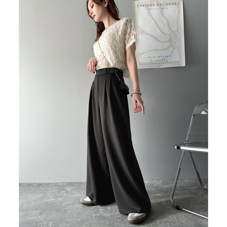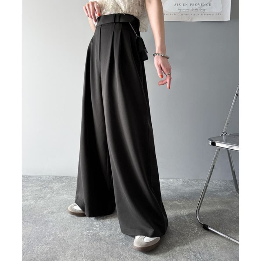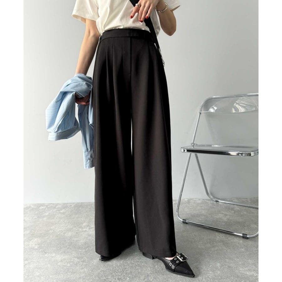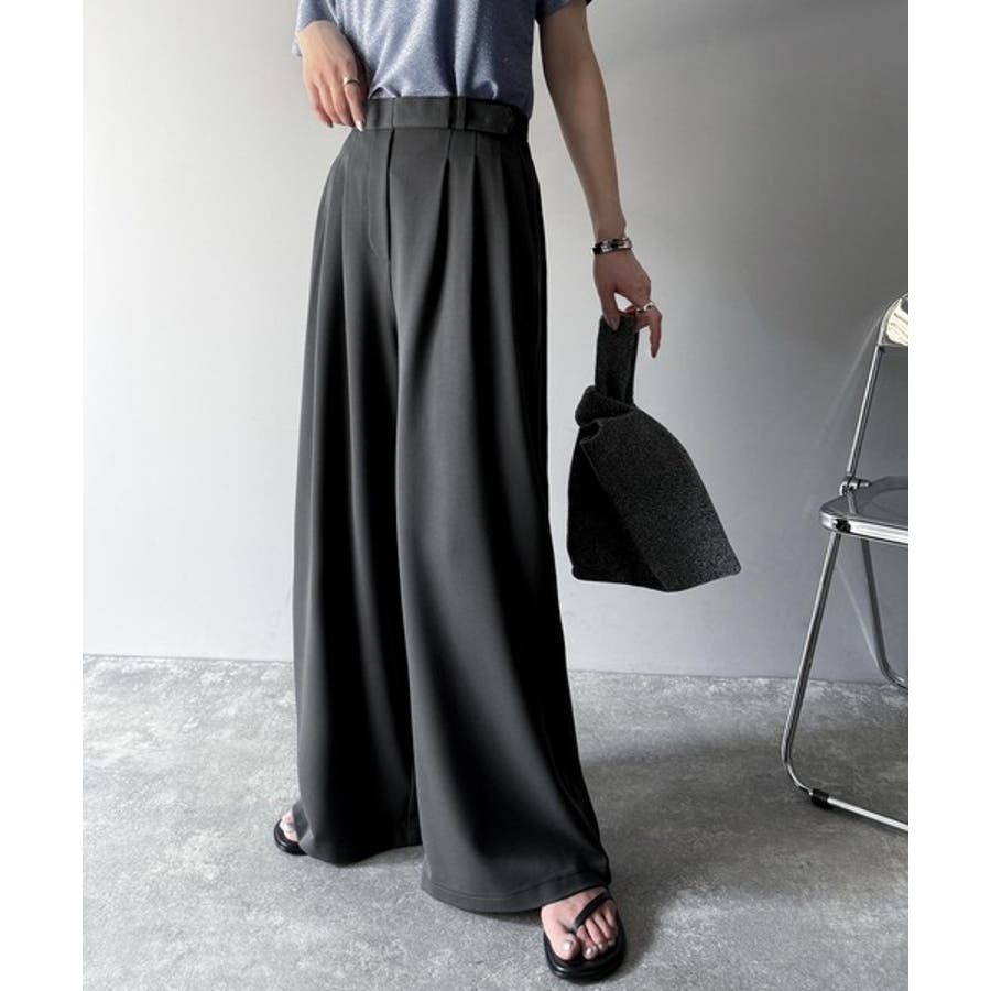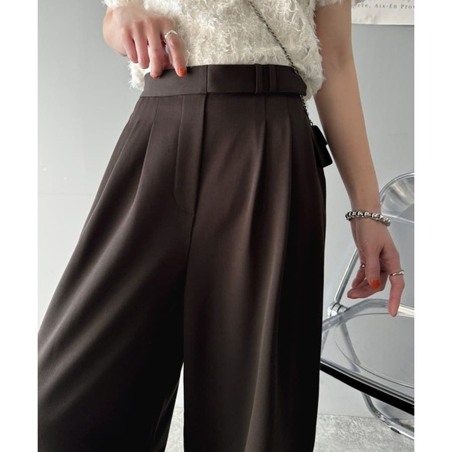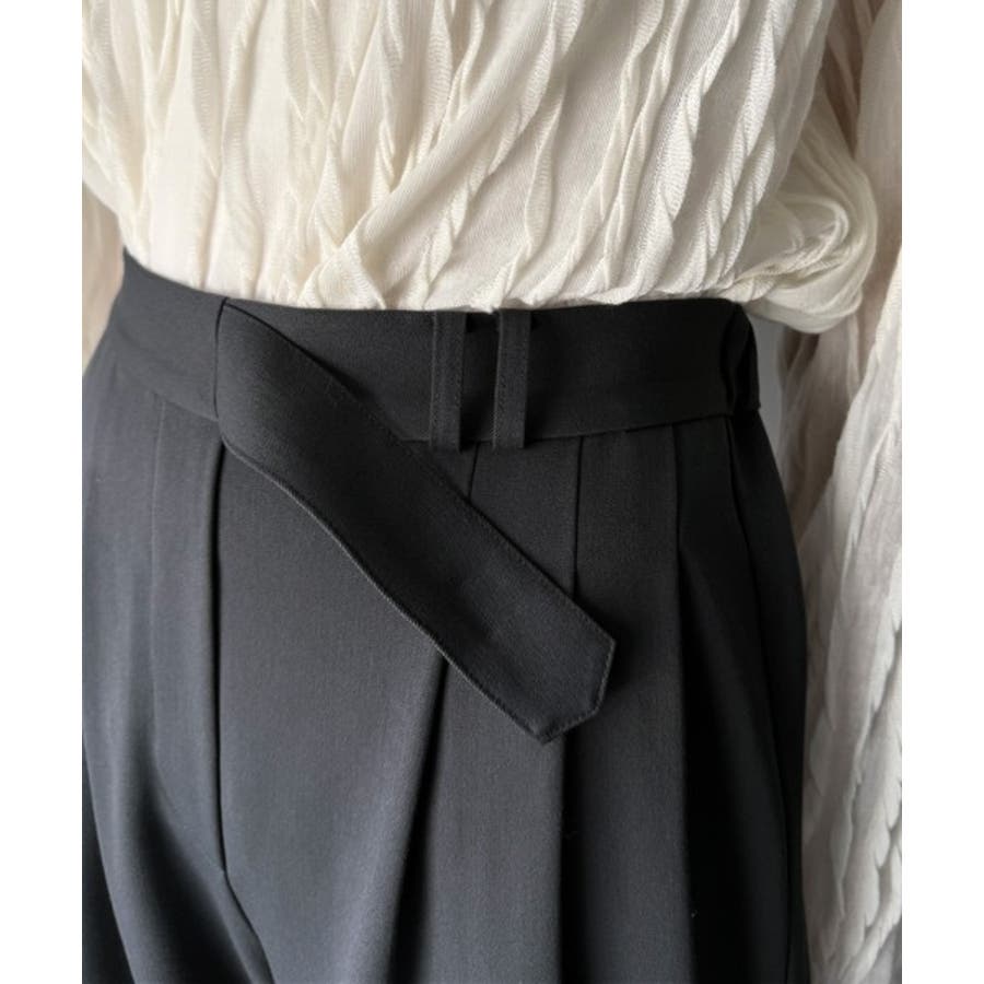 穿くだけで即キレイ見え。サイドベルトデザイン3タックストレッチスラックスパンツ