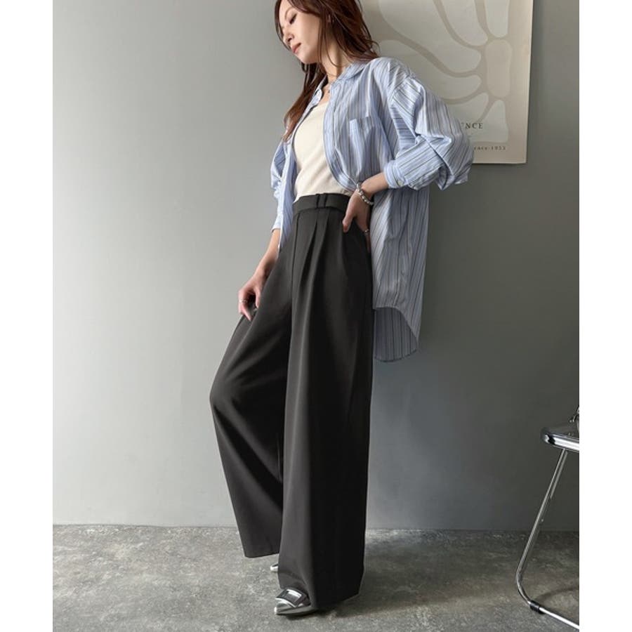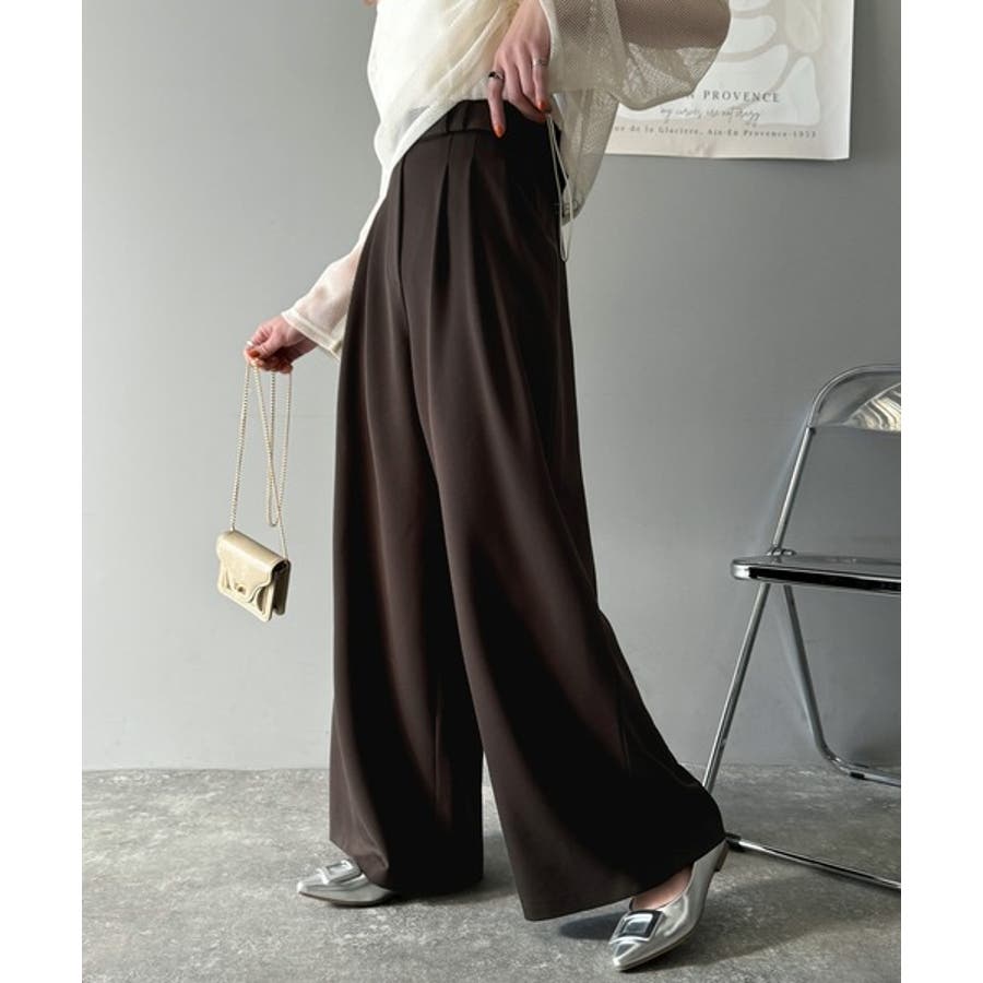 ウエストゴム&ベルトで快適な穿き心地のワイドスラックス。