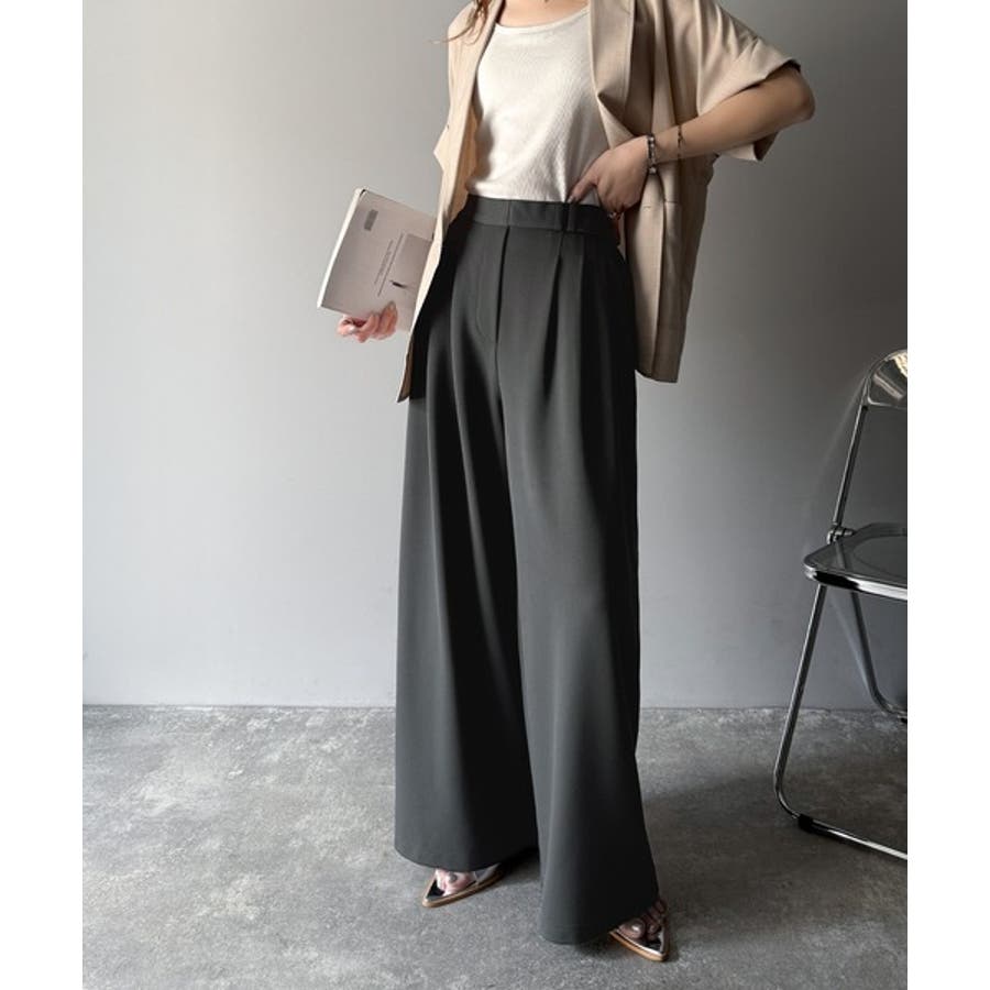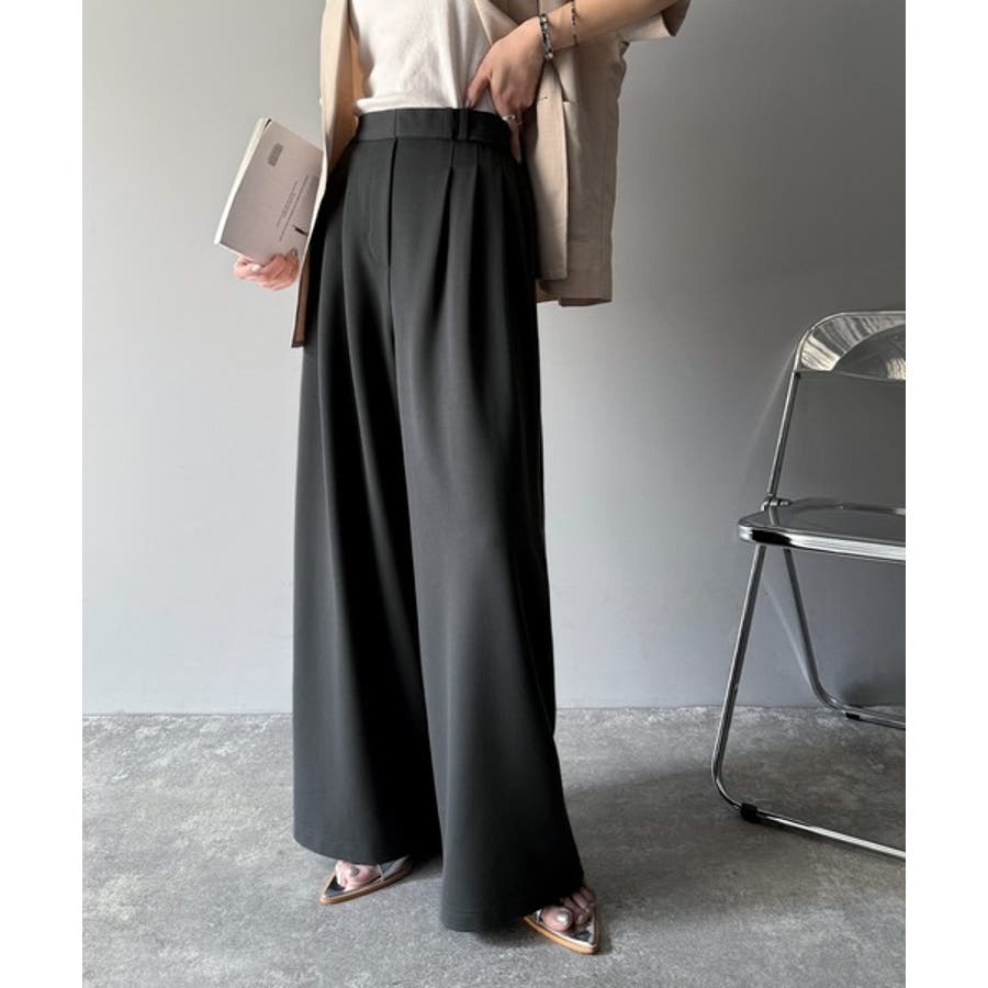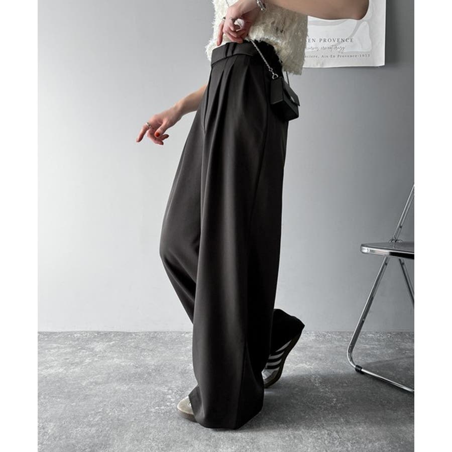おしゃれ度高めなワイドシルエットスラックスパンツ。