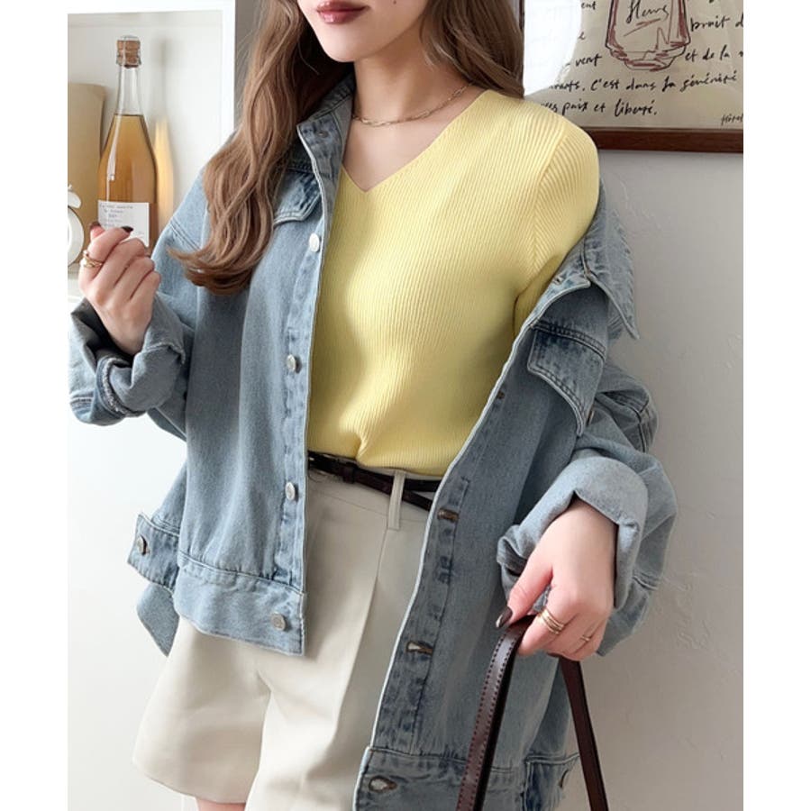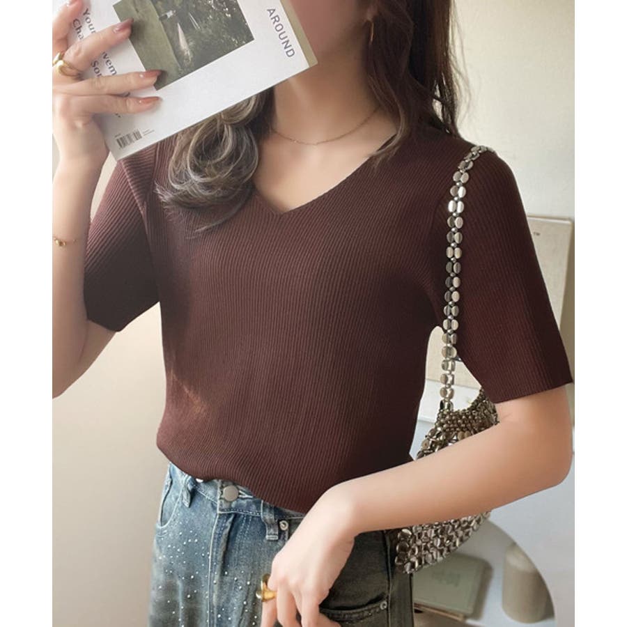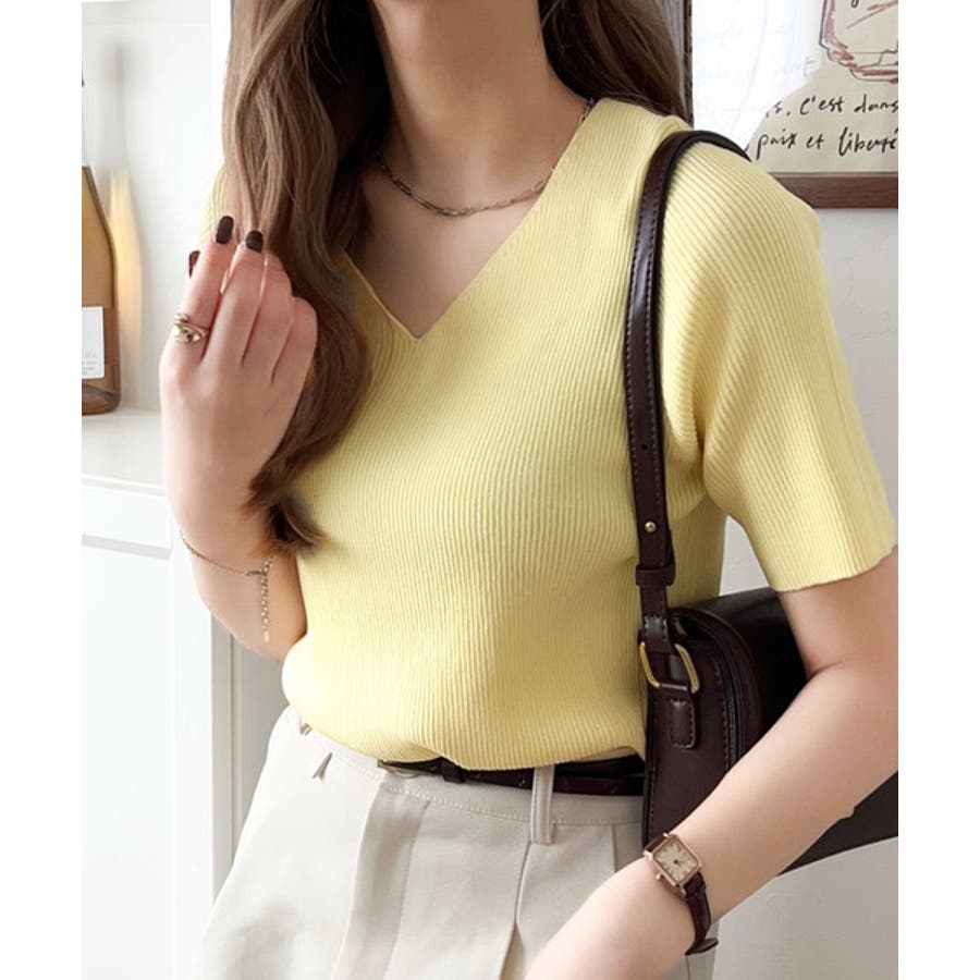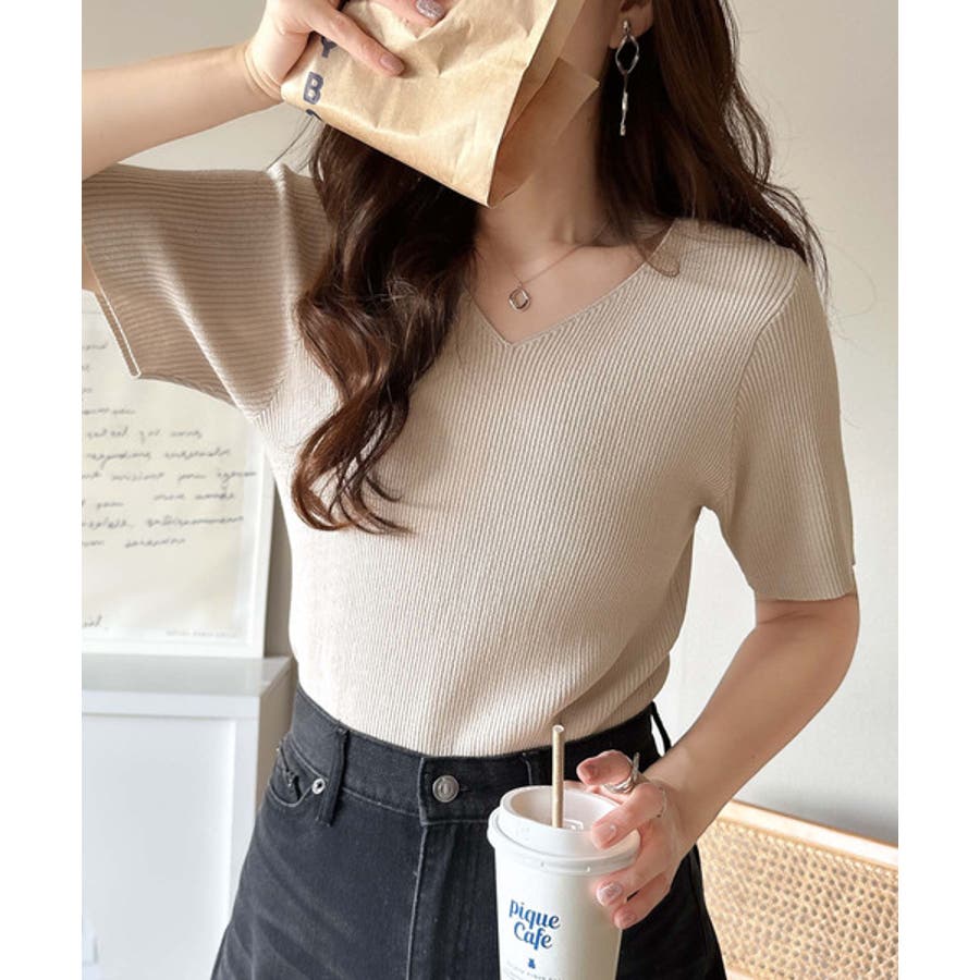 心地よい軽さと美しいシルエットが特徴のVネックリブニット◎