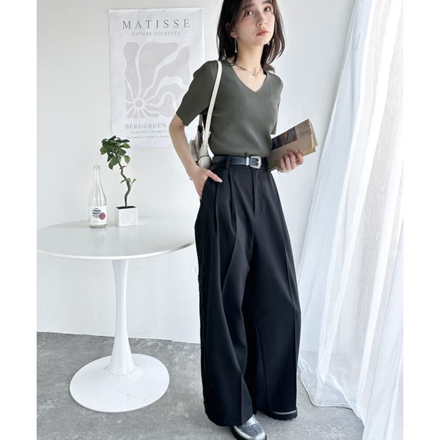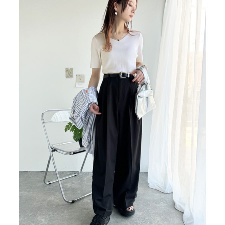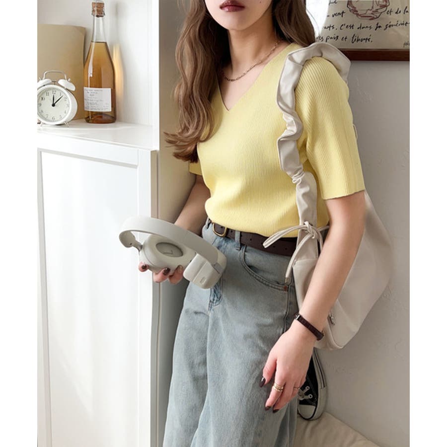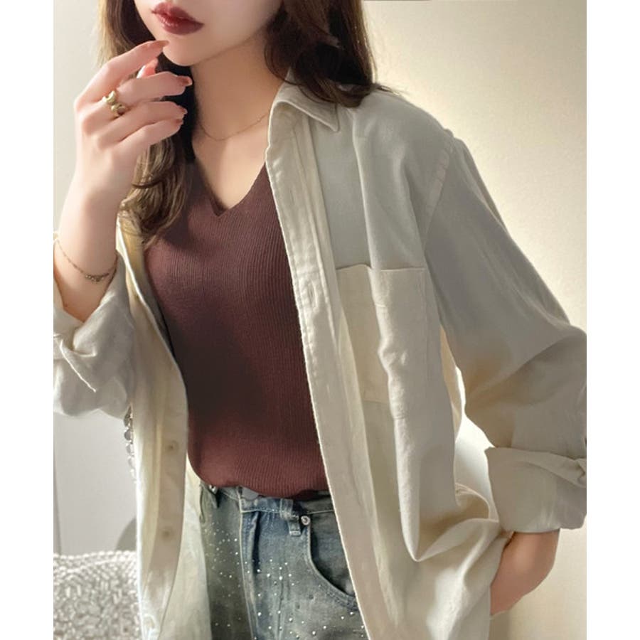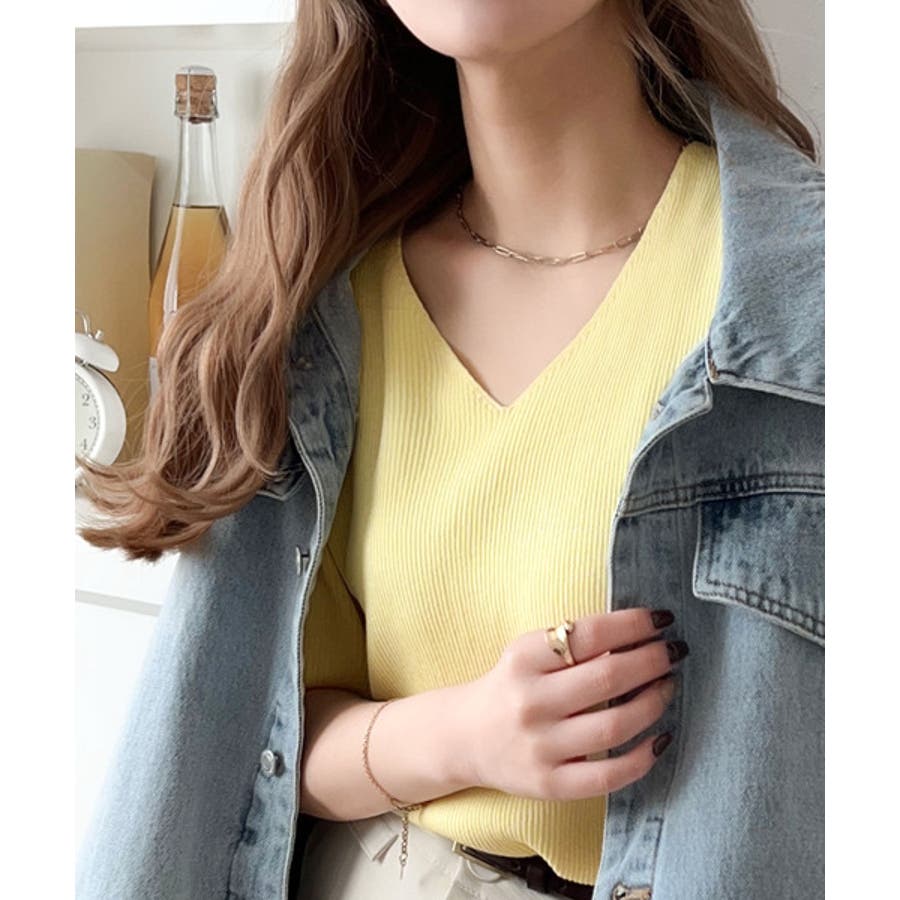 心地よい軽さと美しいシルエットが特徴のVネックリブニット◎
