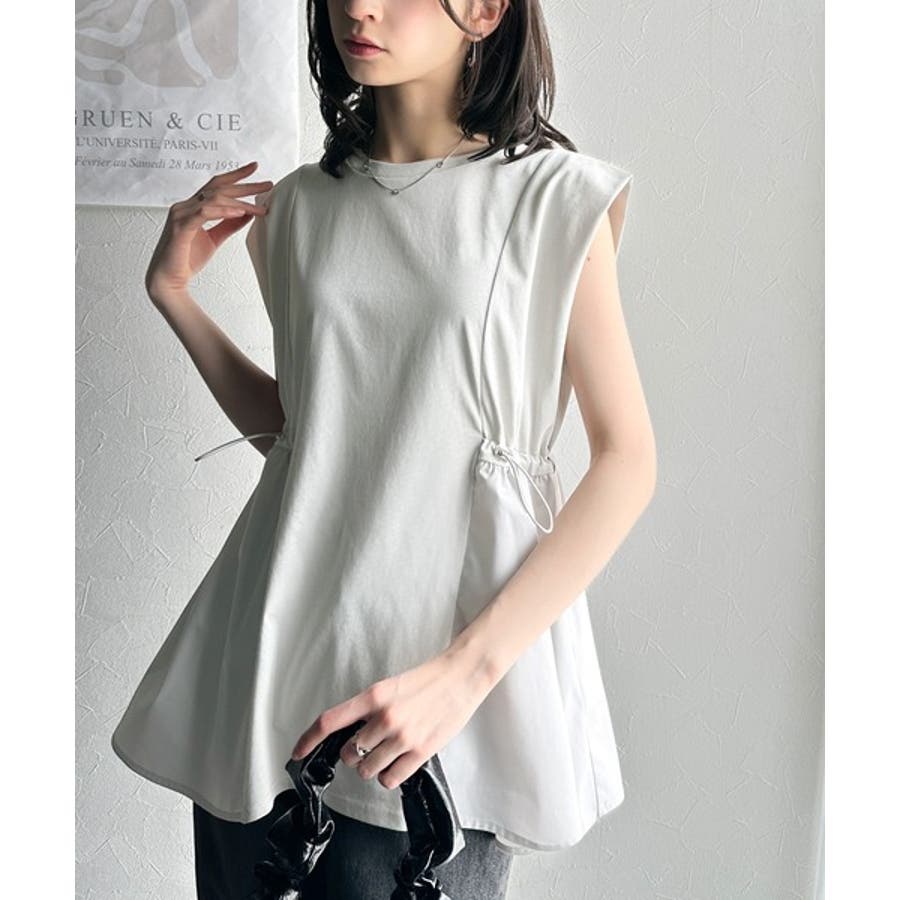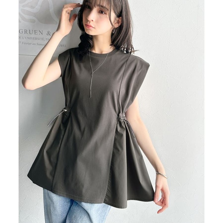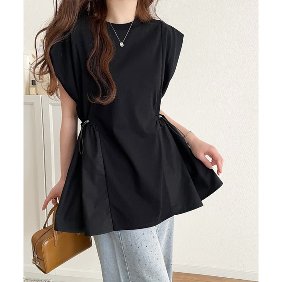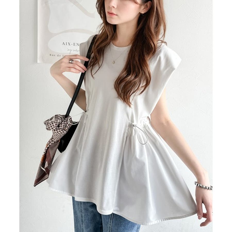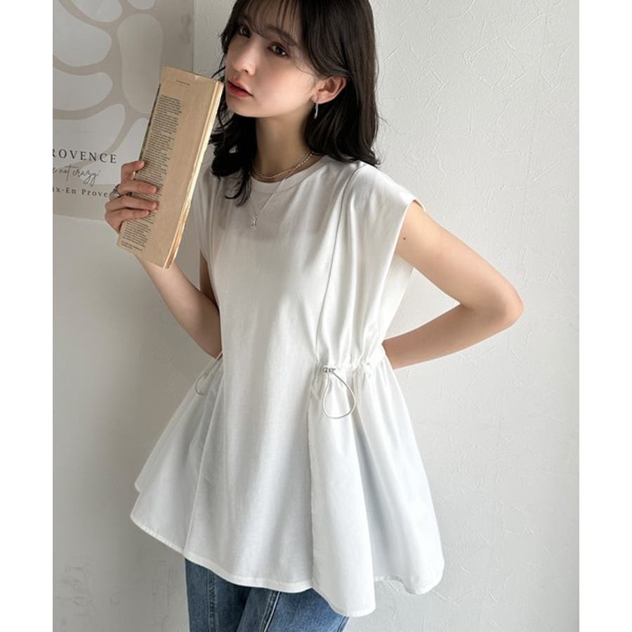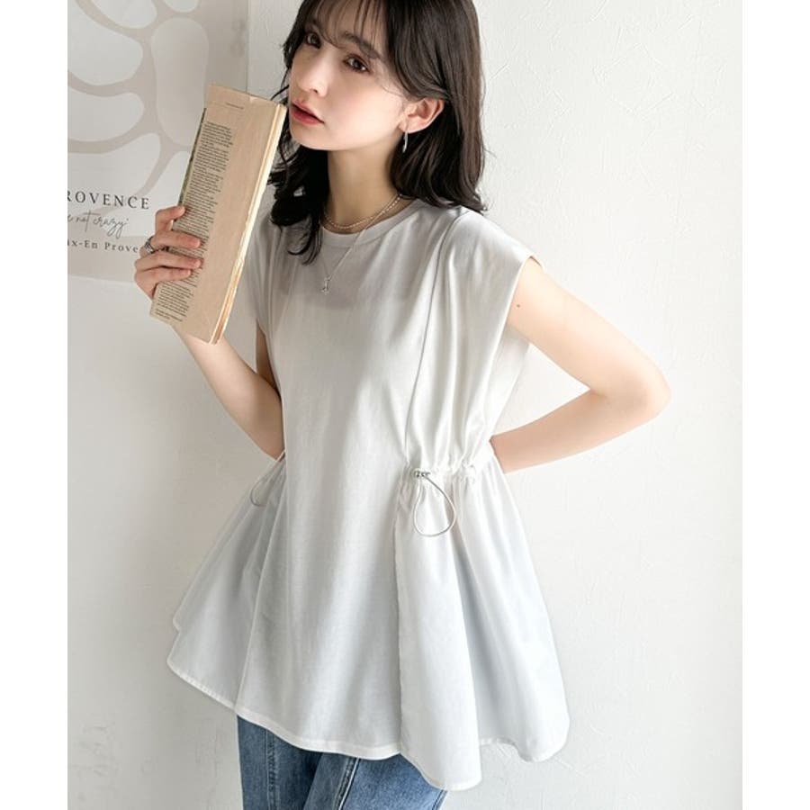 1枚でサマになるキレイめカジュアル。無地異素材ドッキングペプラムショートフレンチ…