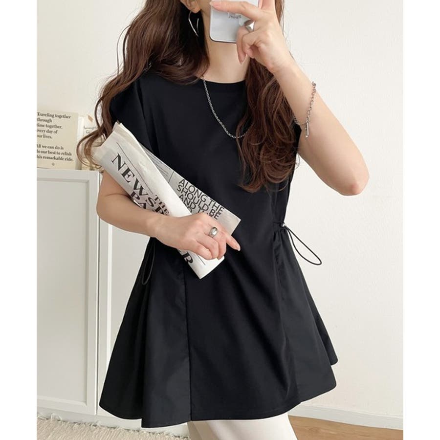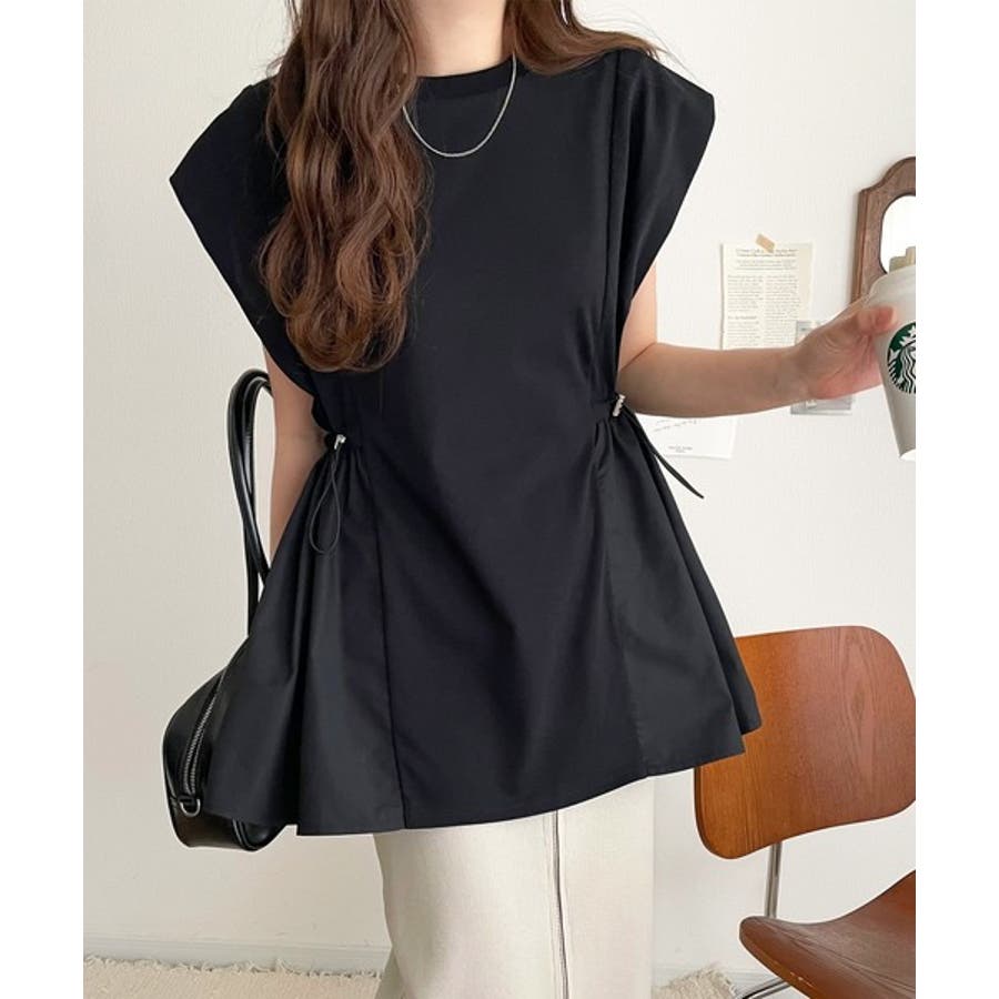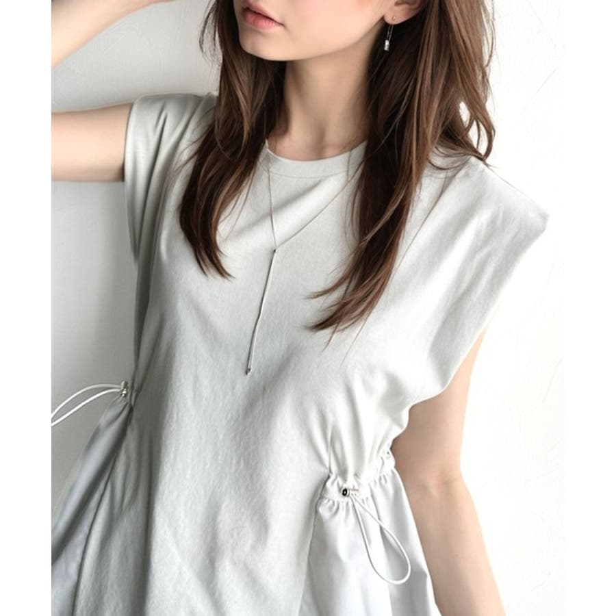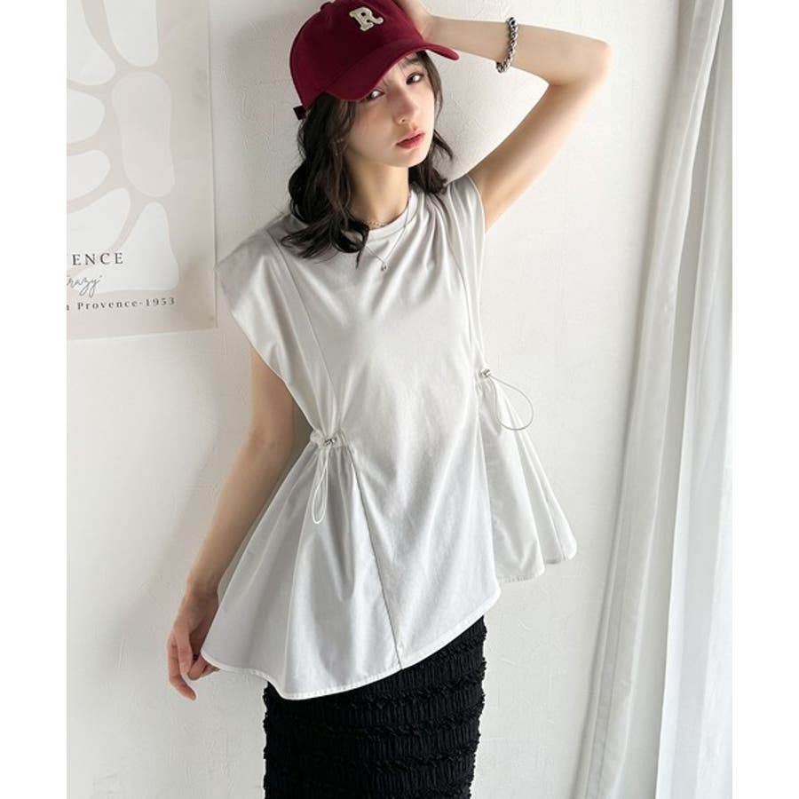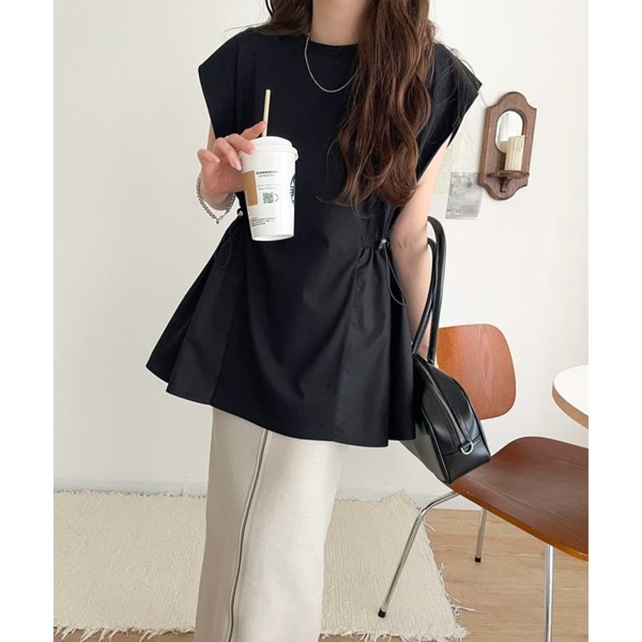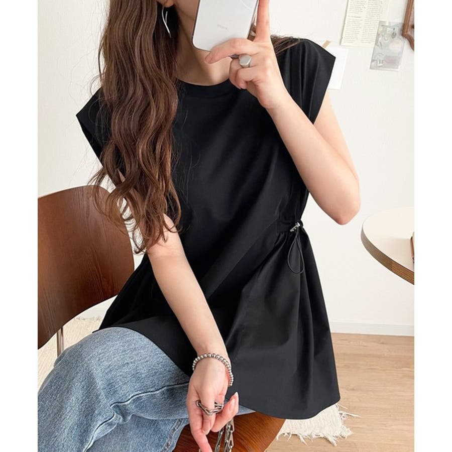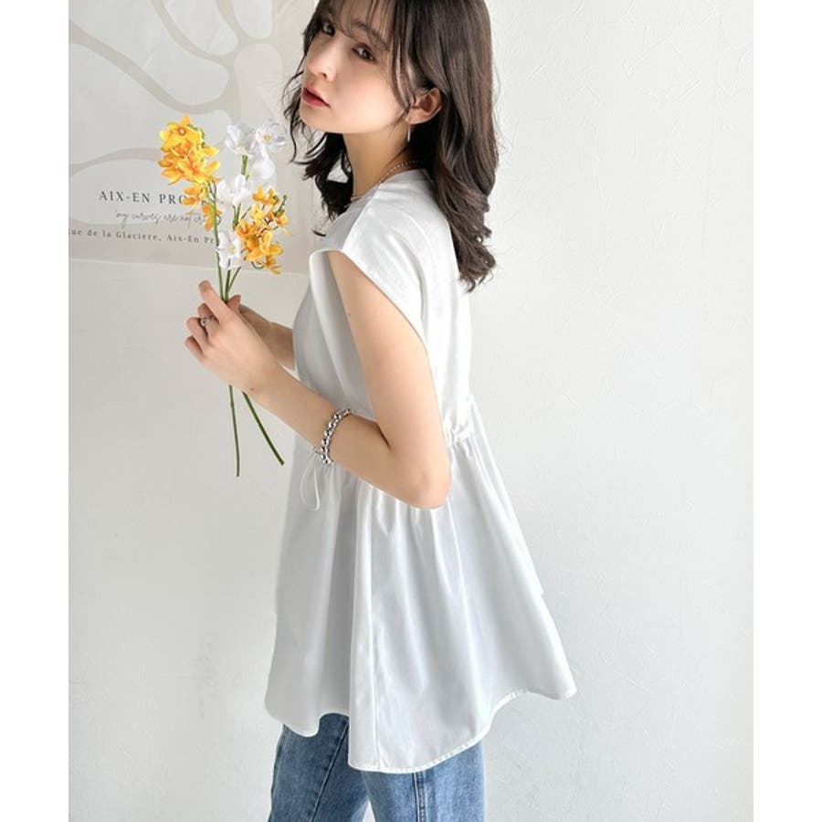1枚でサマになるキレイめカジュアル。無地異素材ドッキングペプラムショートフレンチ…