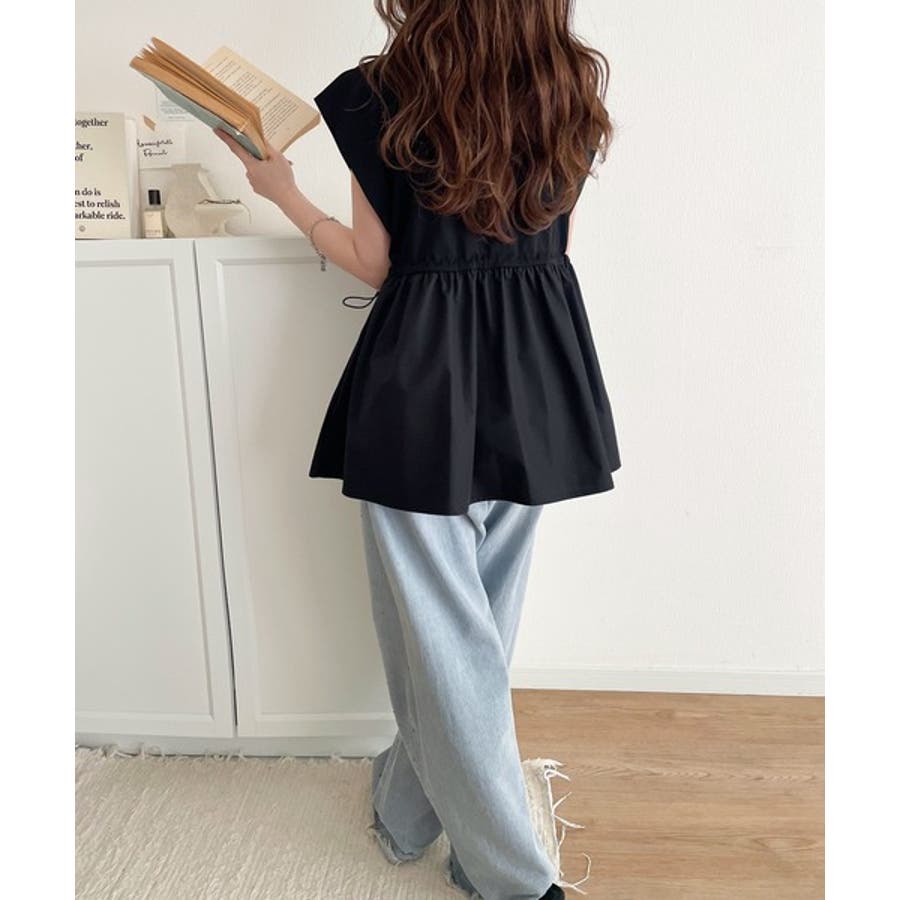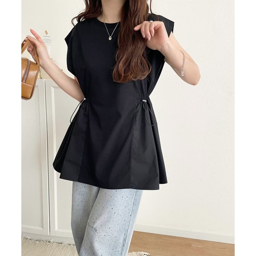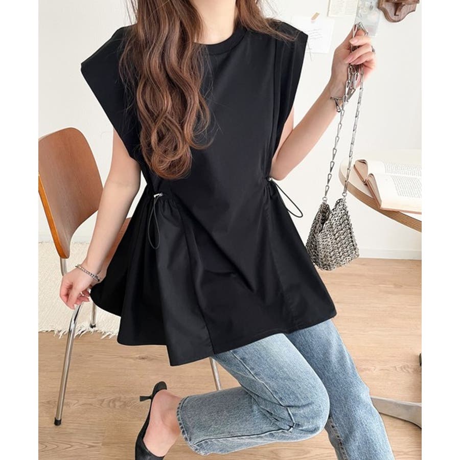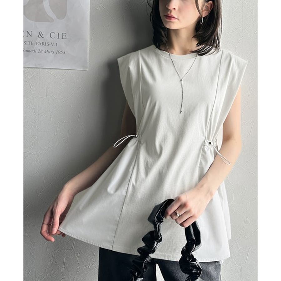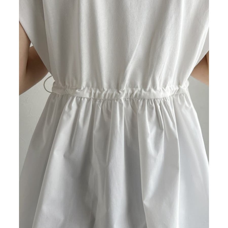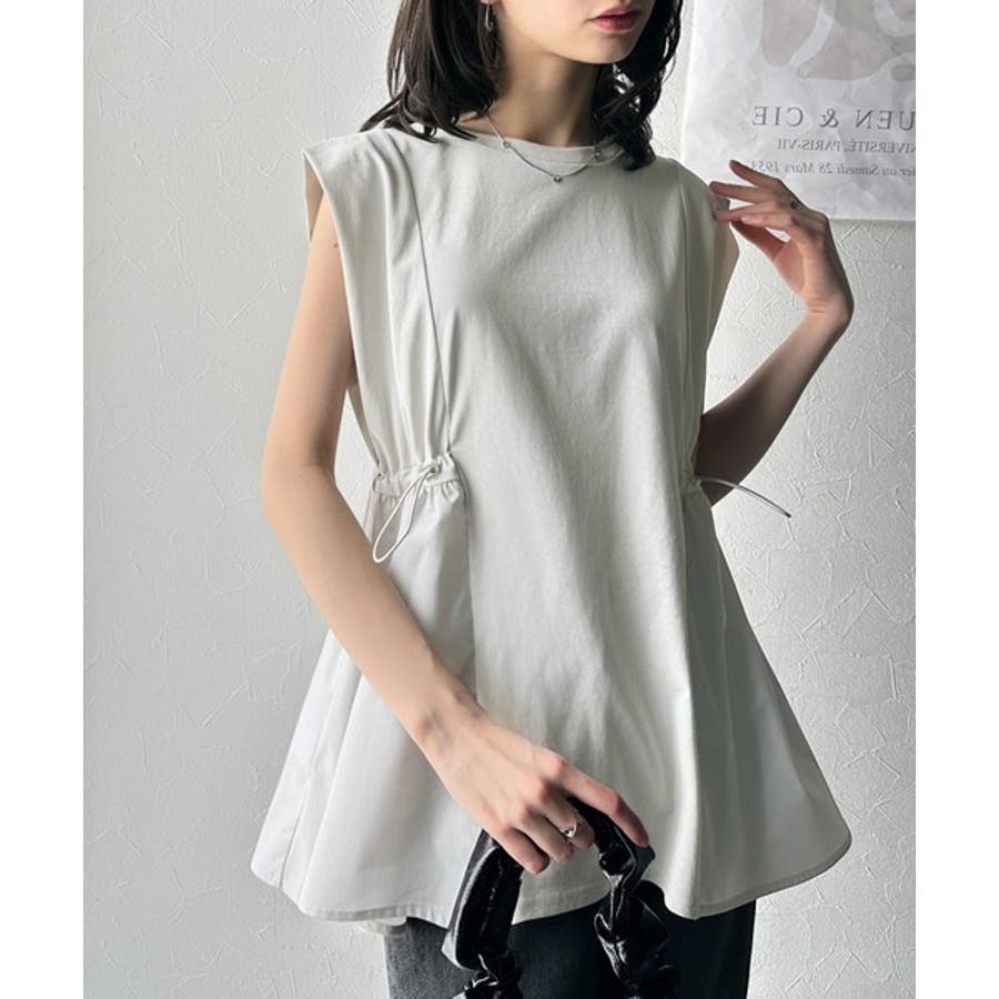 1枚でサマになるキレイめカジュアル。無地異素材ドッキングペプラムショートフレンチ…