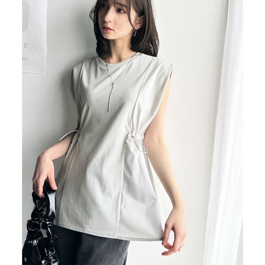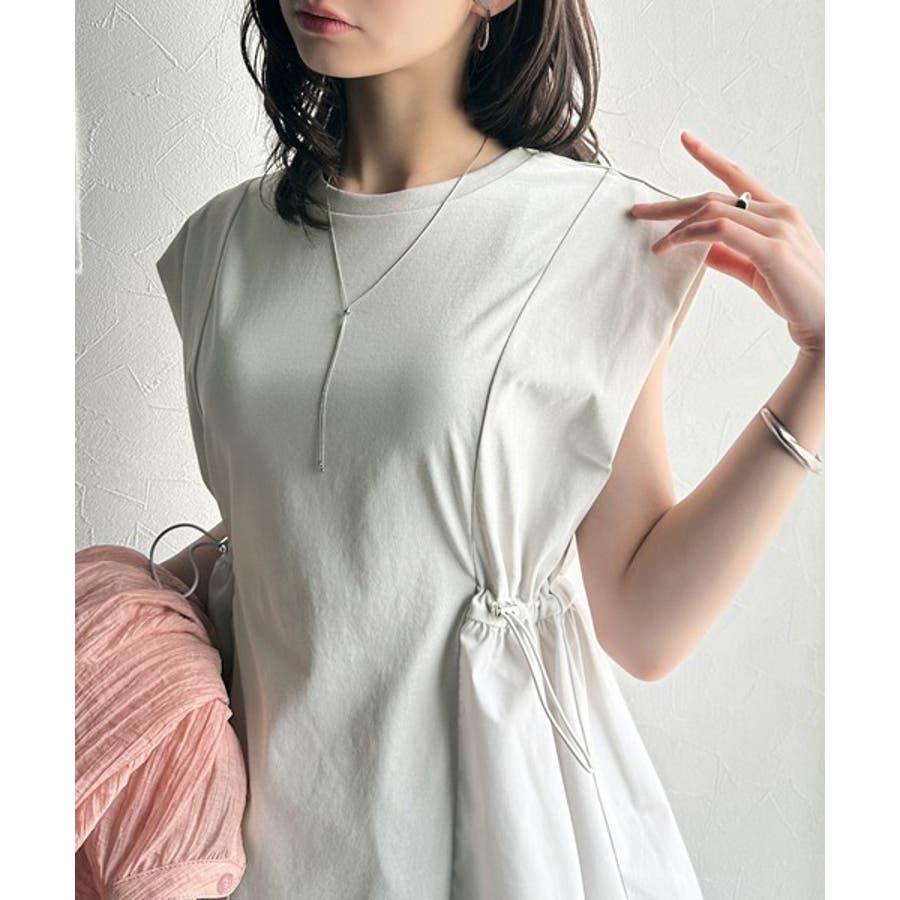 異素材ドッキングが目を惹く、大人上品なカットソー。