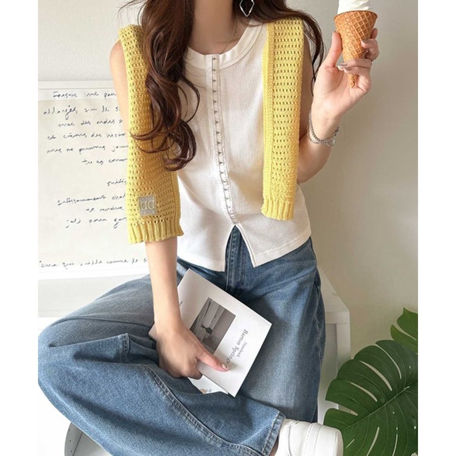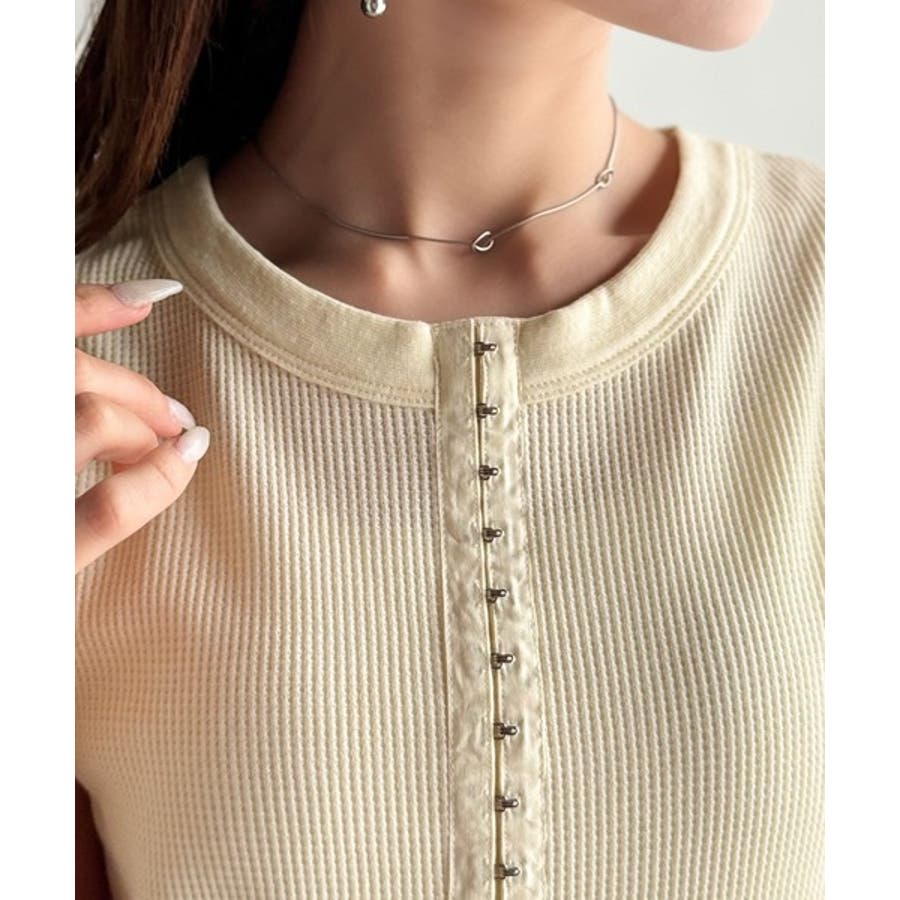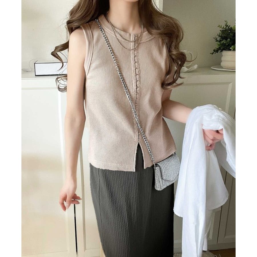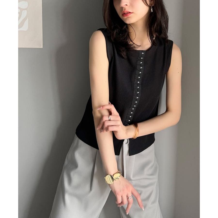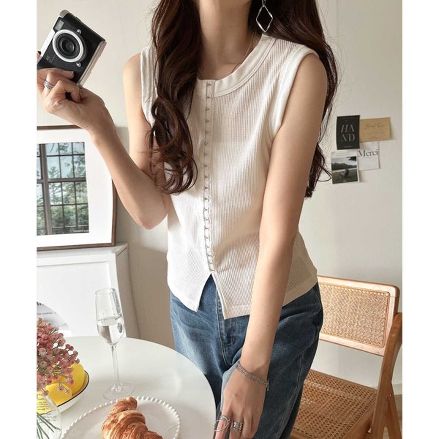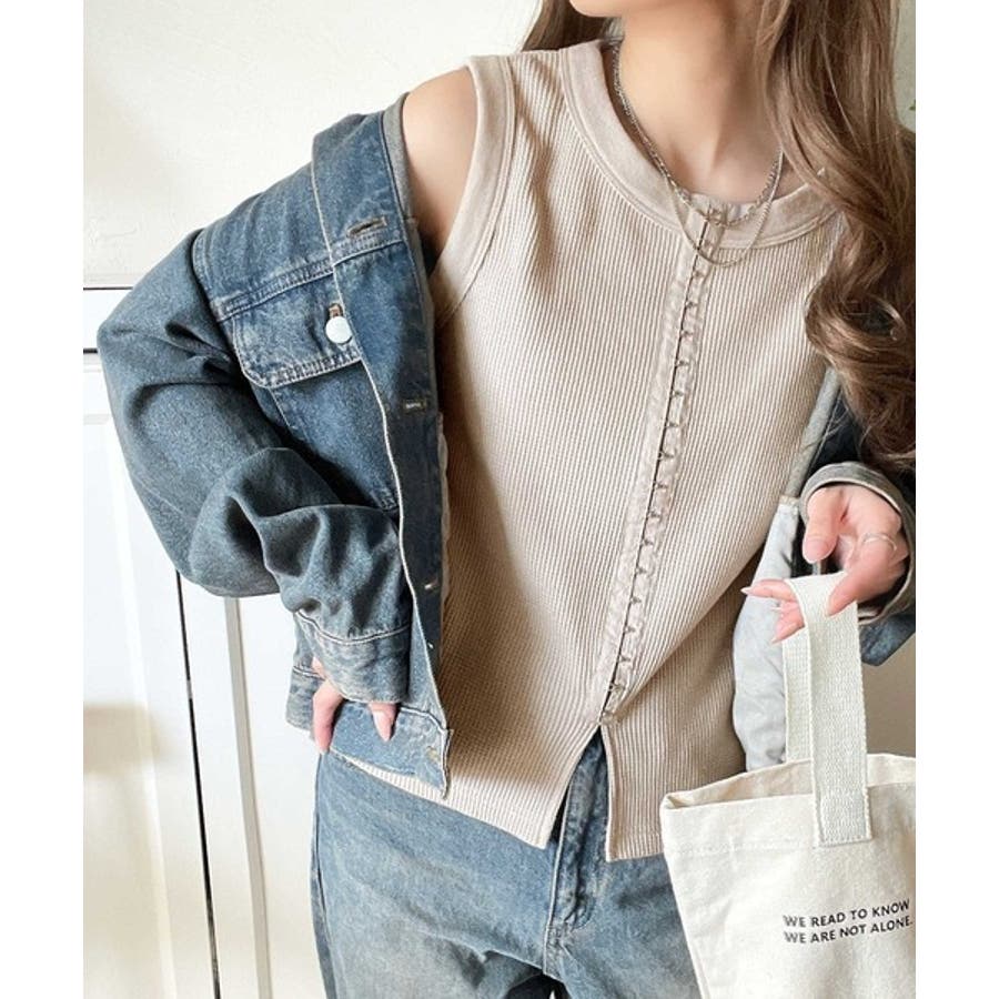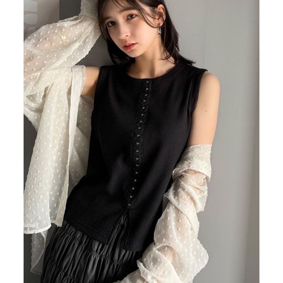 軽やかに魅せる、今どきカジュアルの主役。フロントホックワッフルノースリーブトップ…