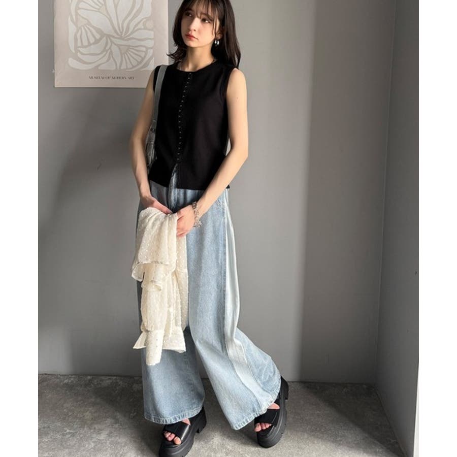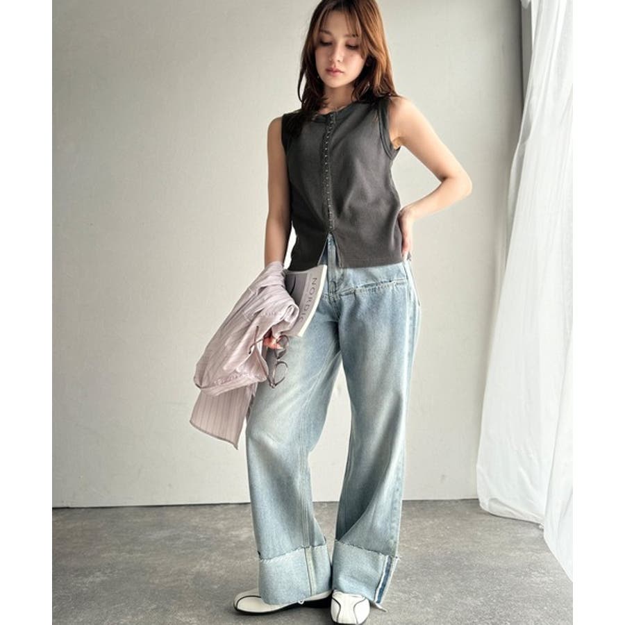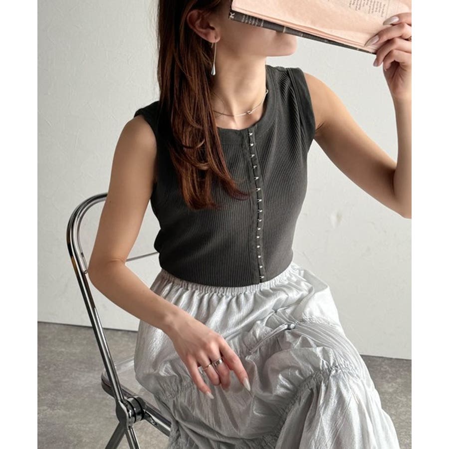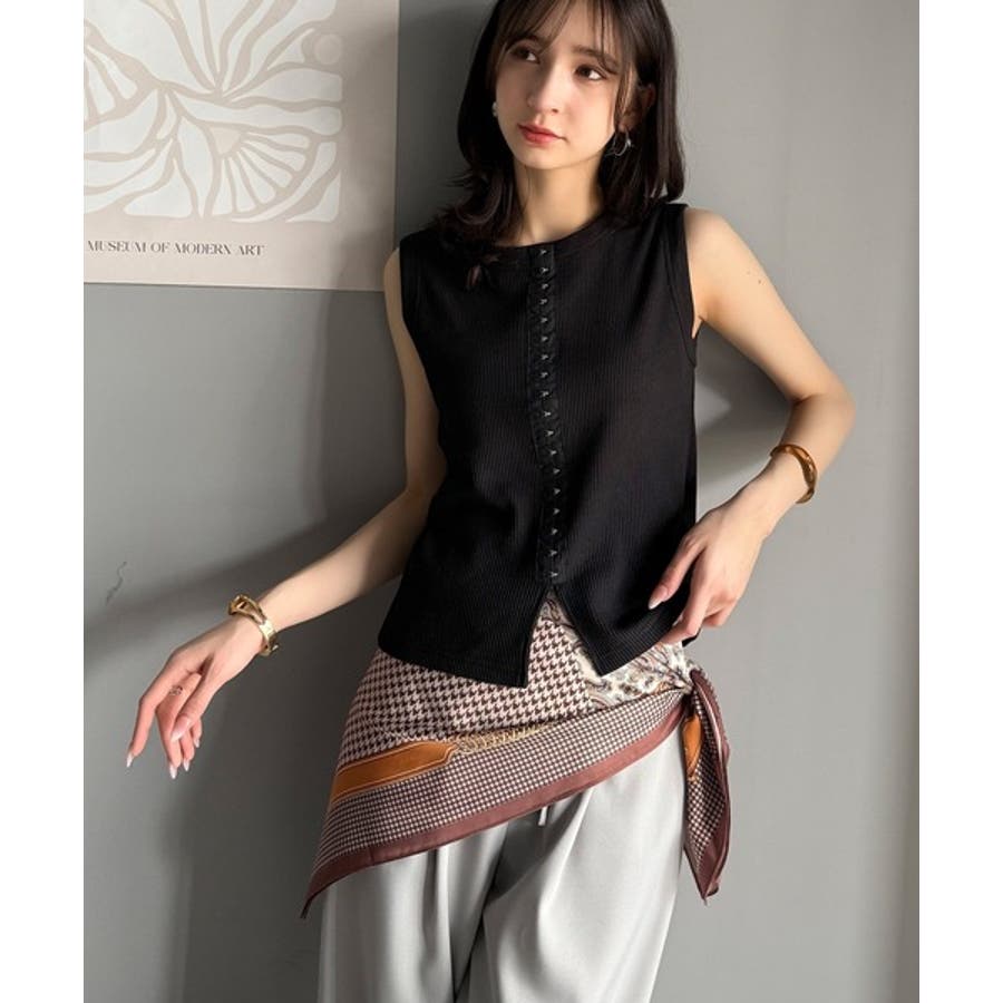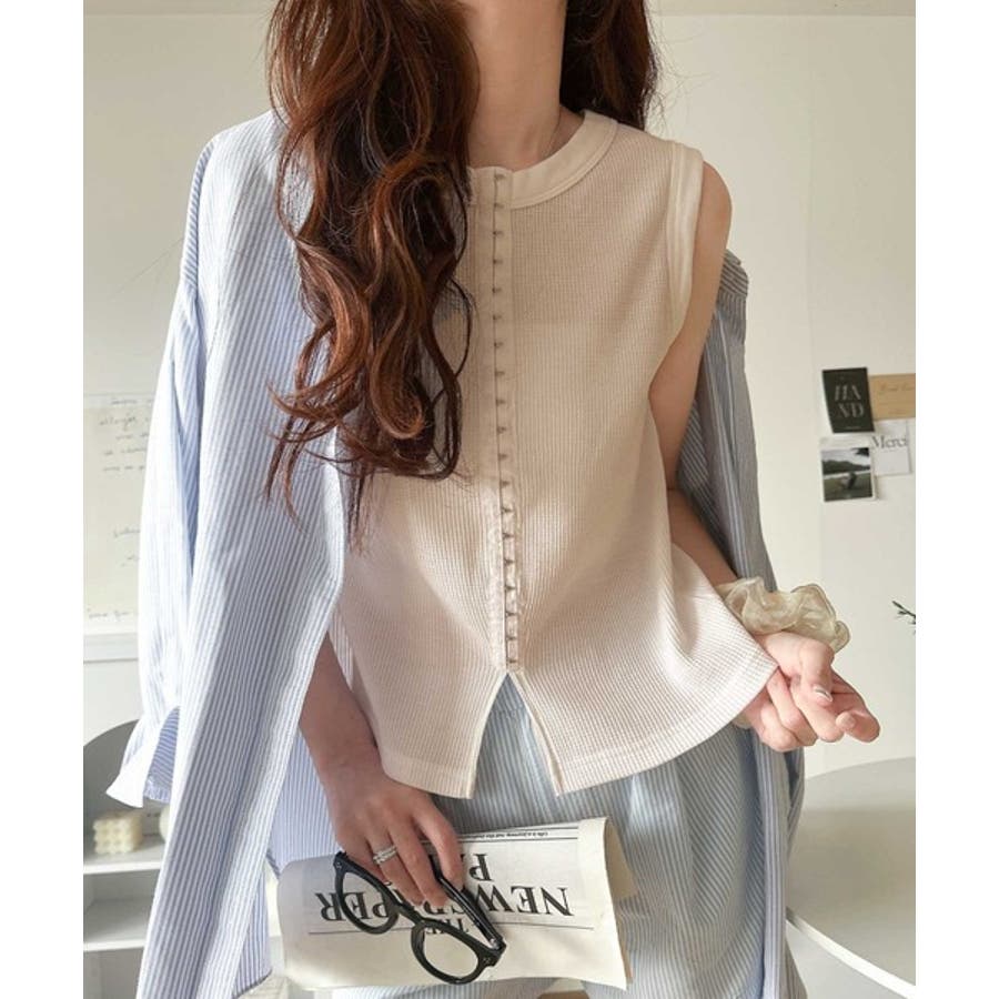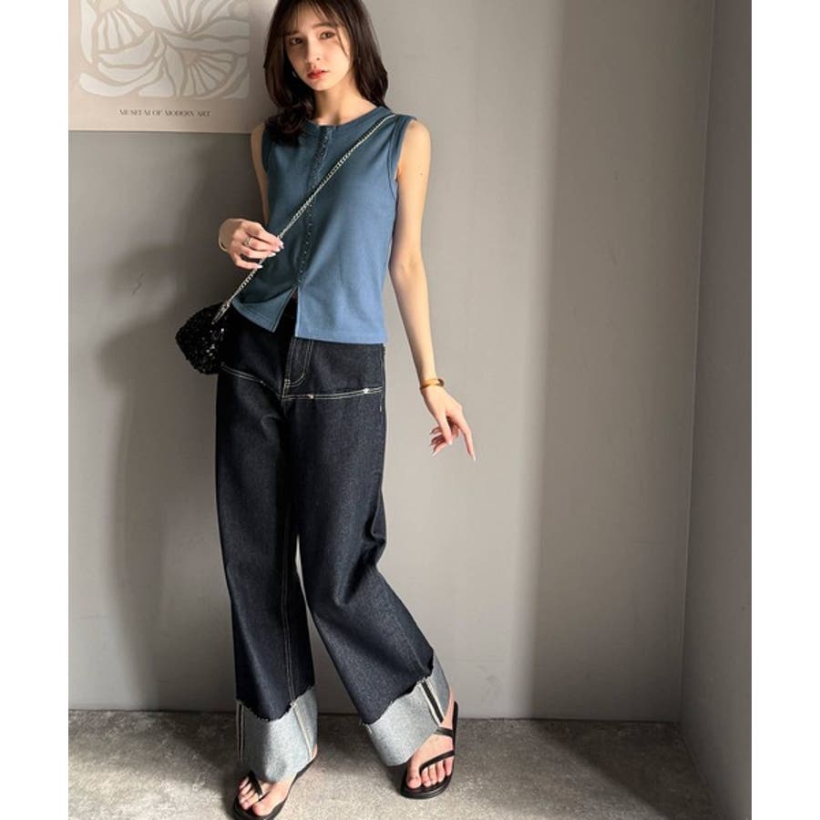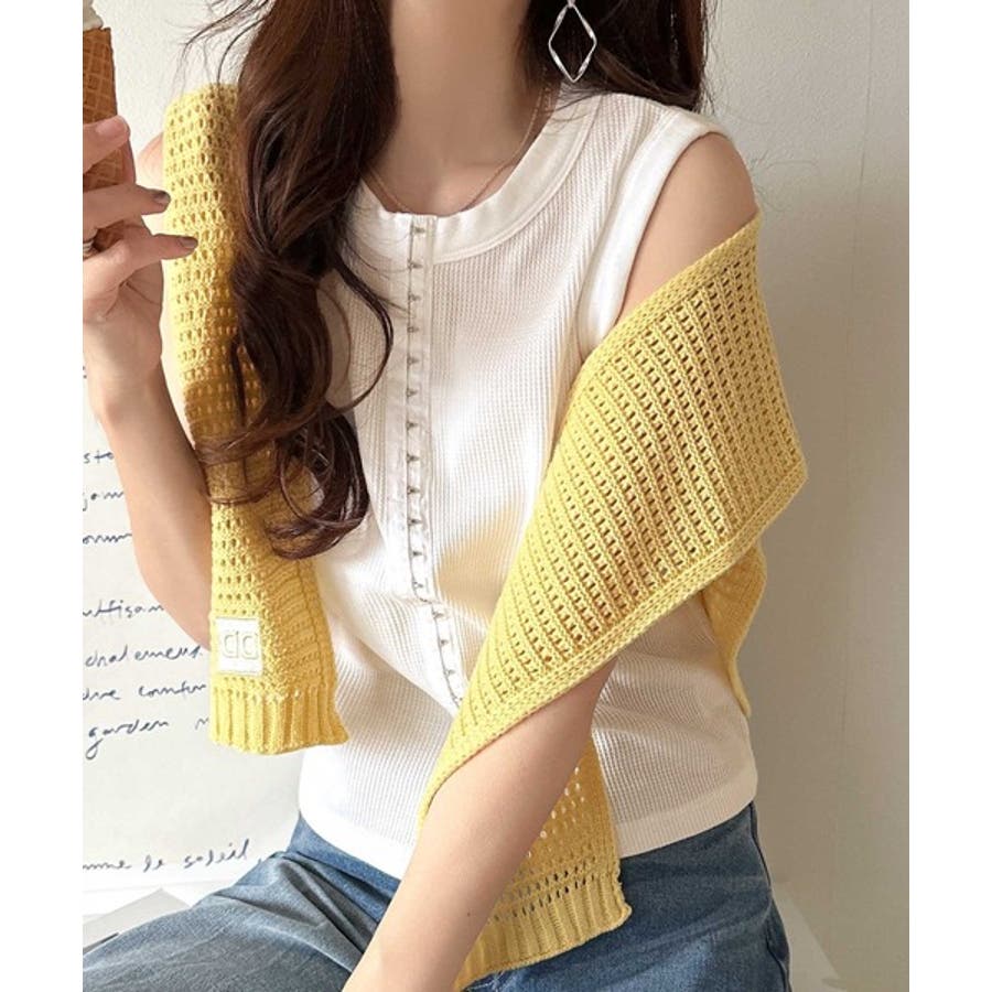 軽やかに魅せる、今どきカジュアルの主役。フロントホックワッフルノースリーブトップ…