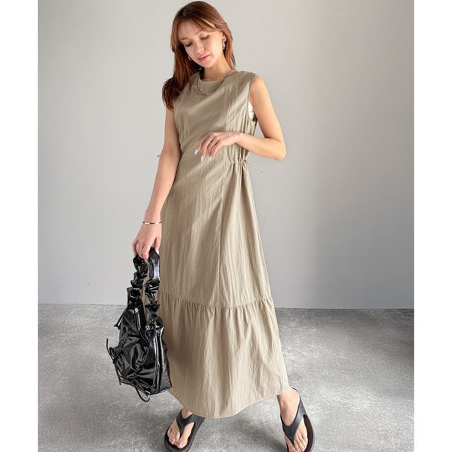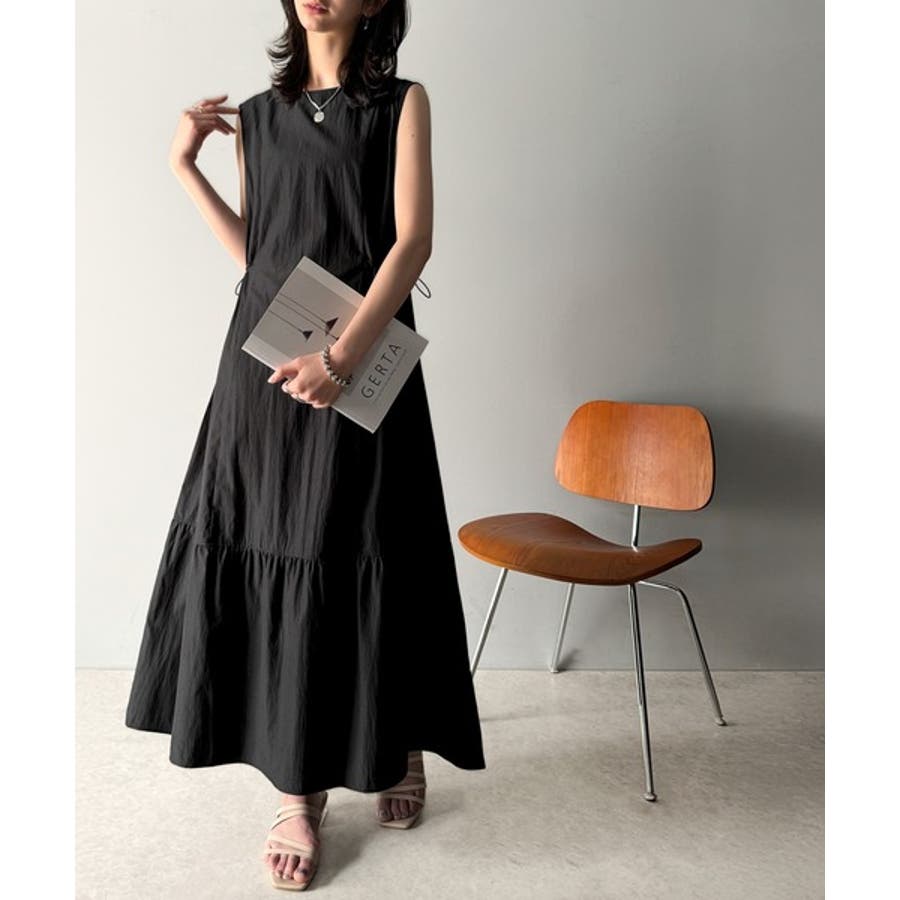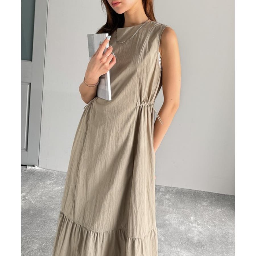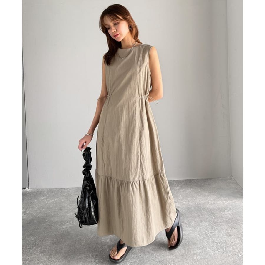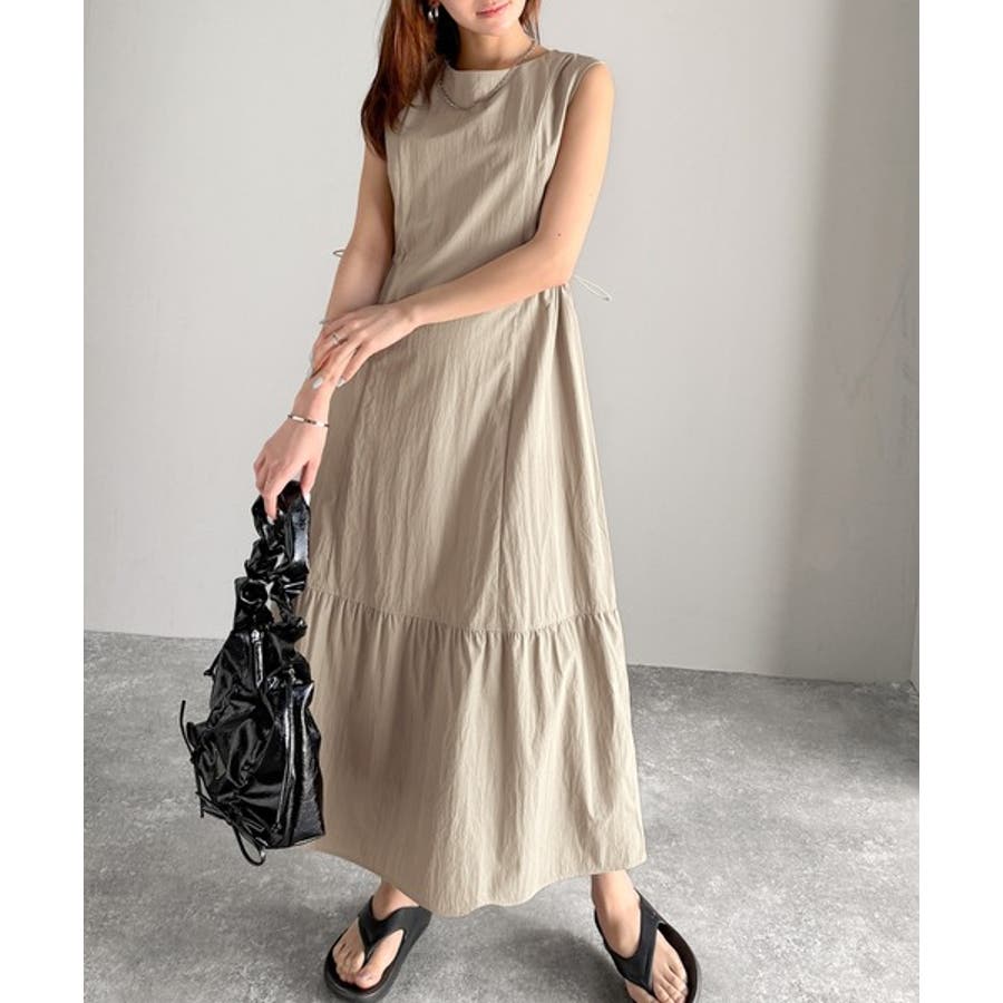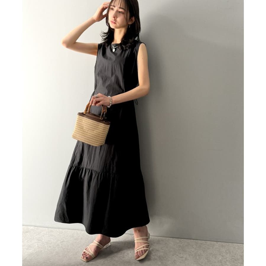 軽やかなシルエット。軽量ストレッチサイドドロストノースリーブ裾切り替えワンピース…