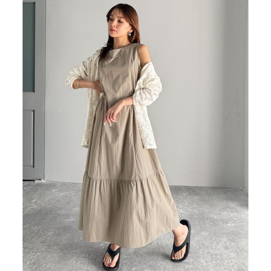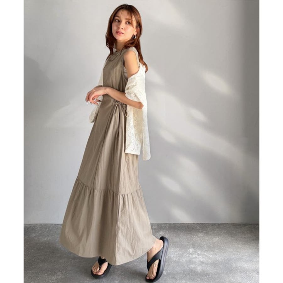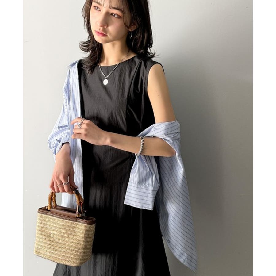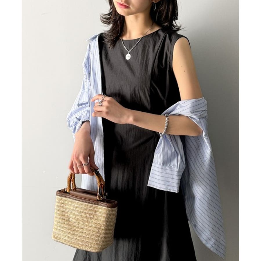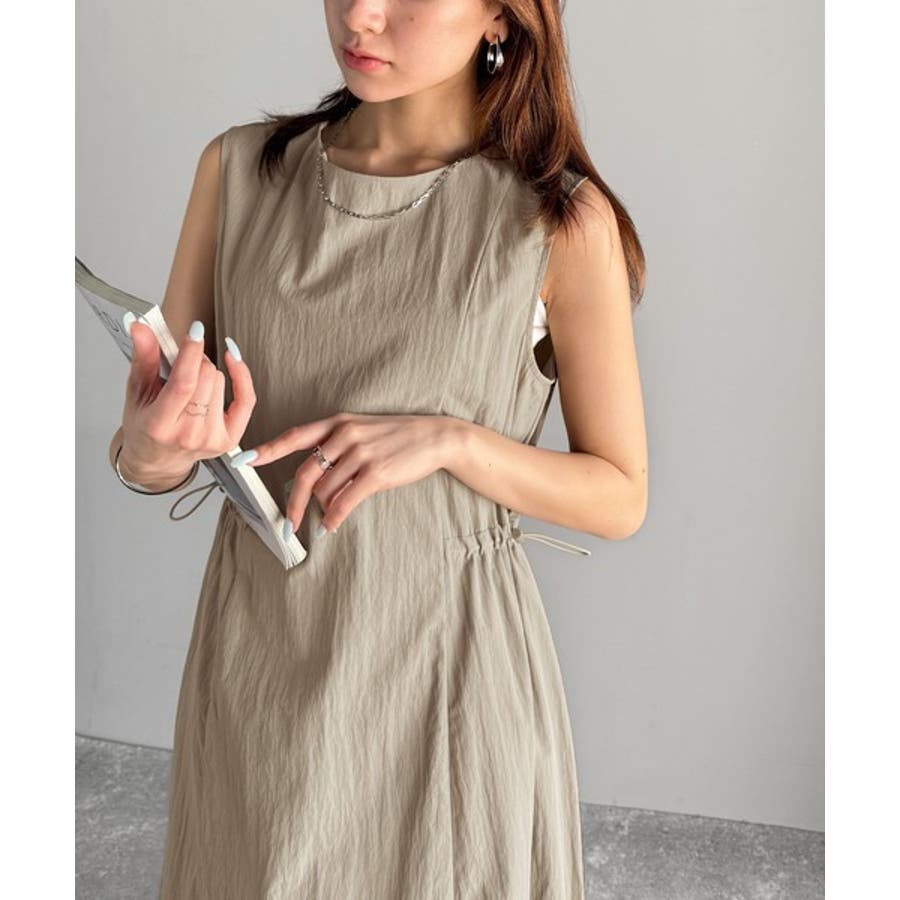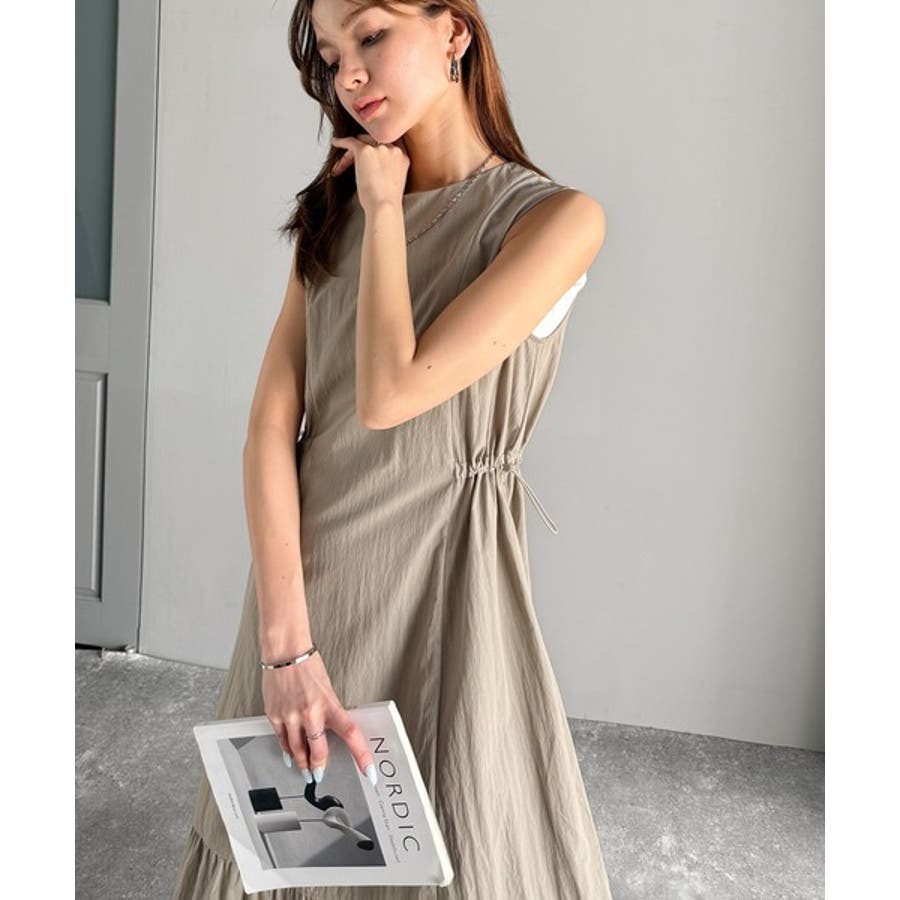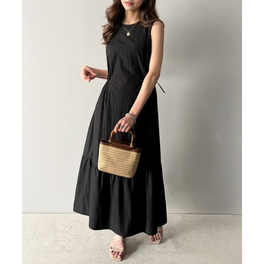 軽やかなシルエット。軽量ストレッチサイドドロストノースリーブ裾切り替えワンピース…