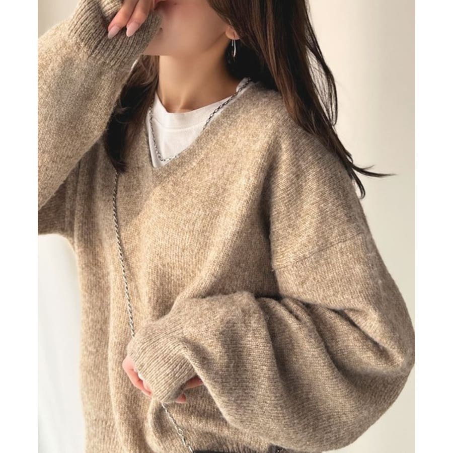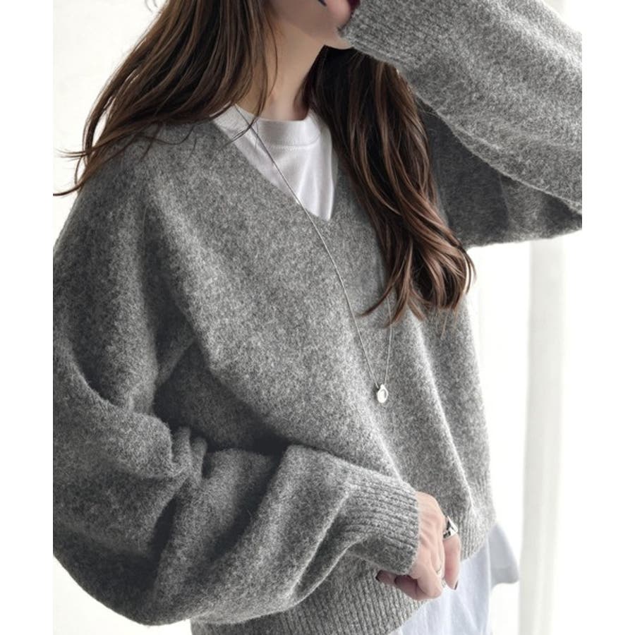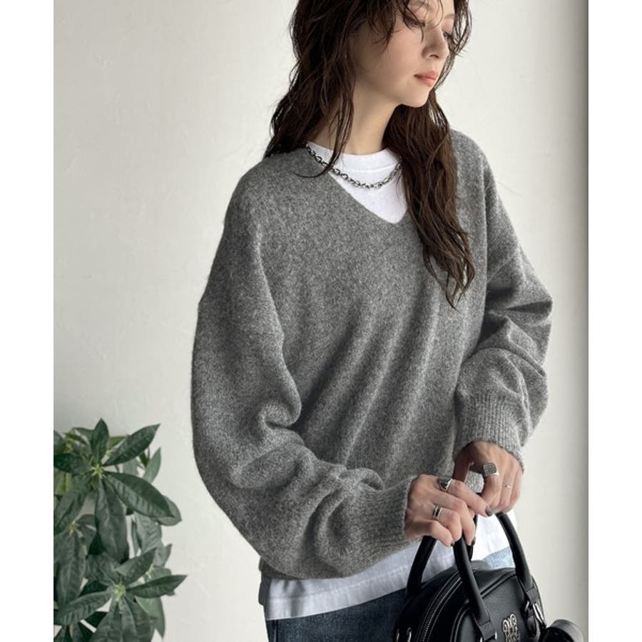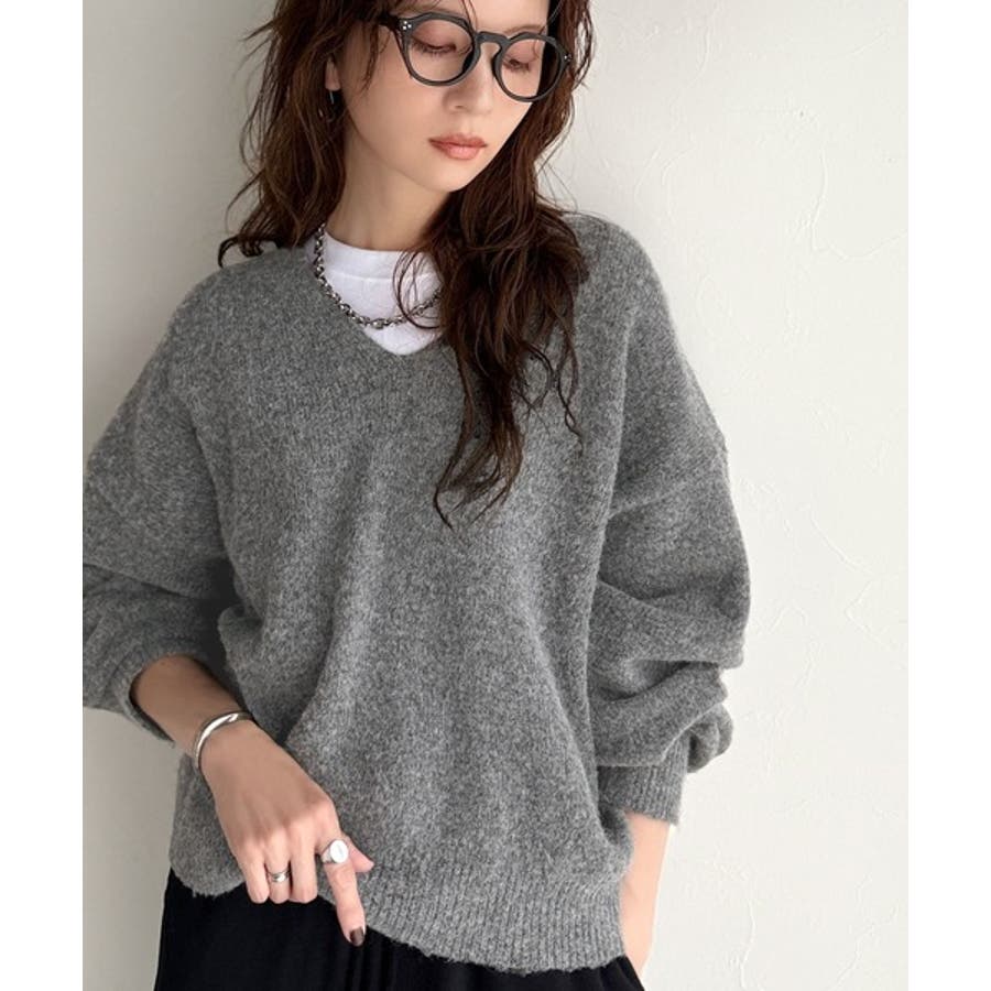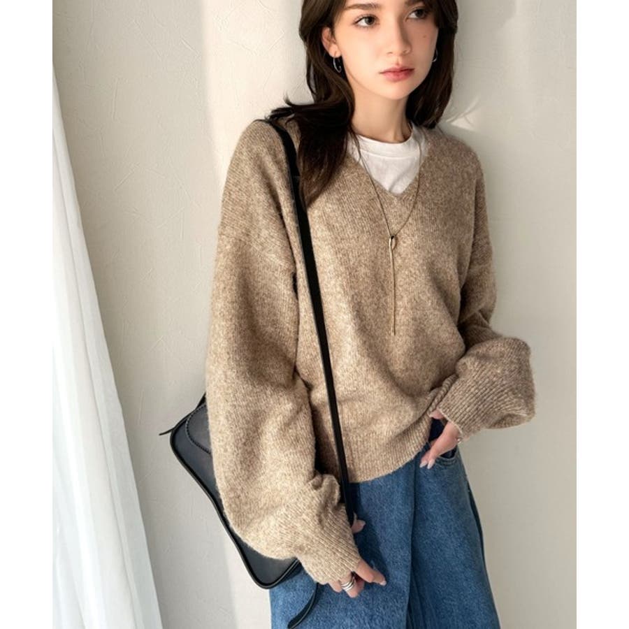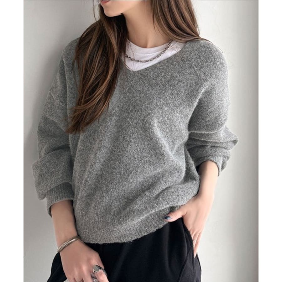 やわらかくふんわりとした質感が魅力の、メランジ調Vネックニットプルオーバー。