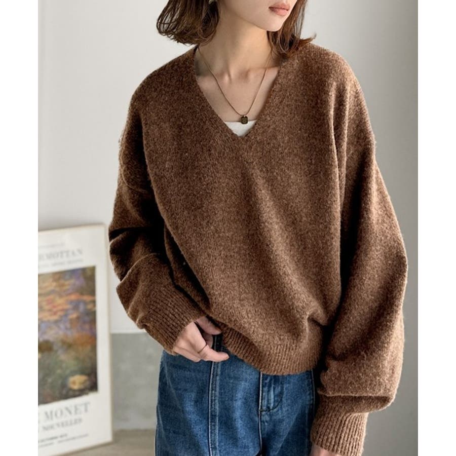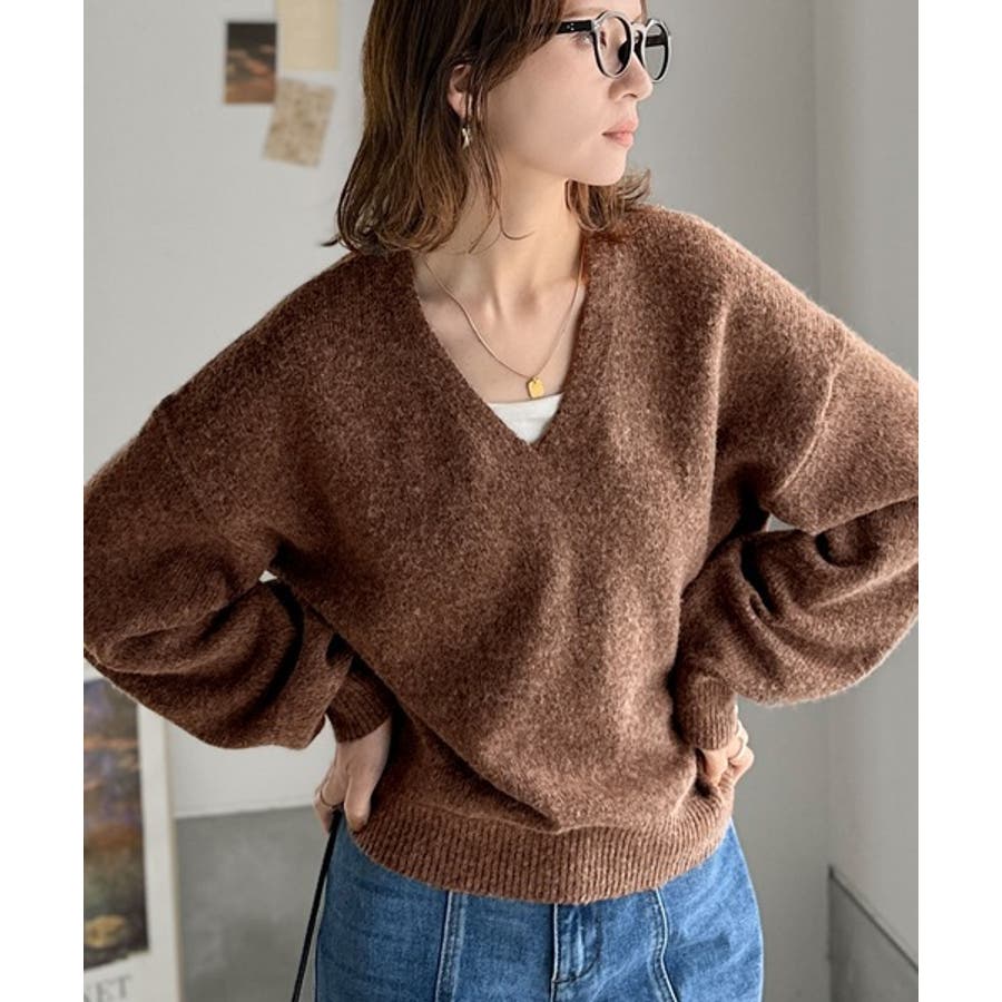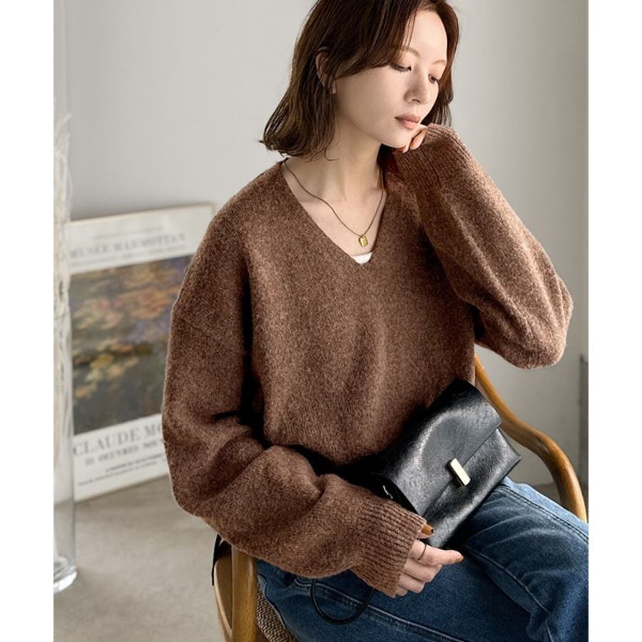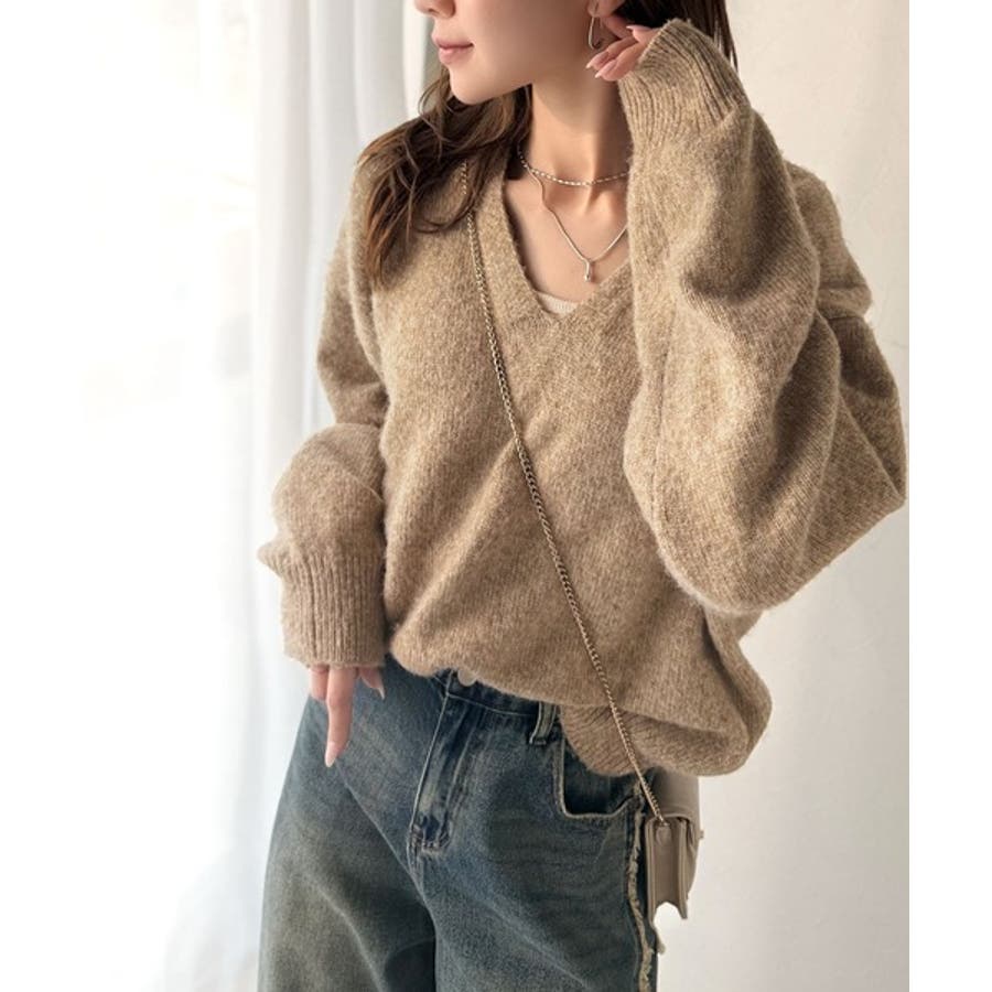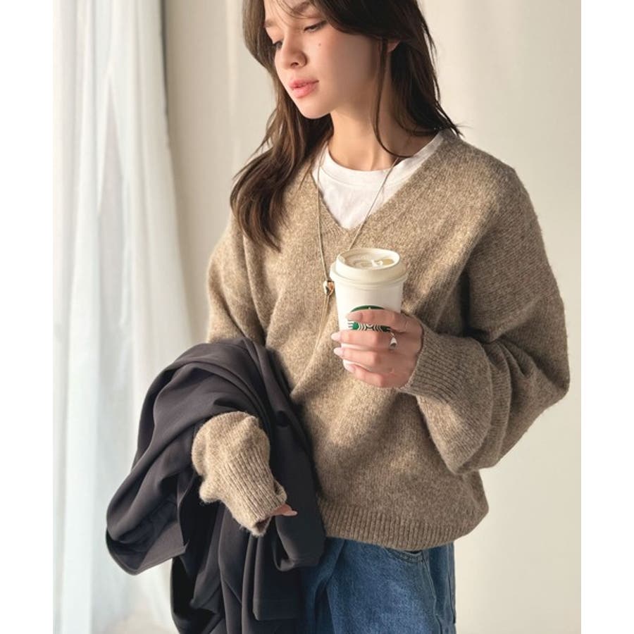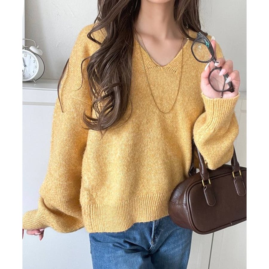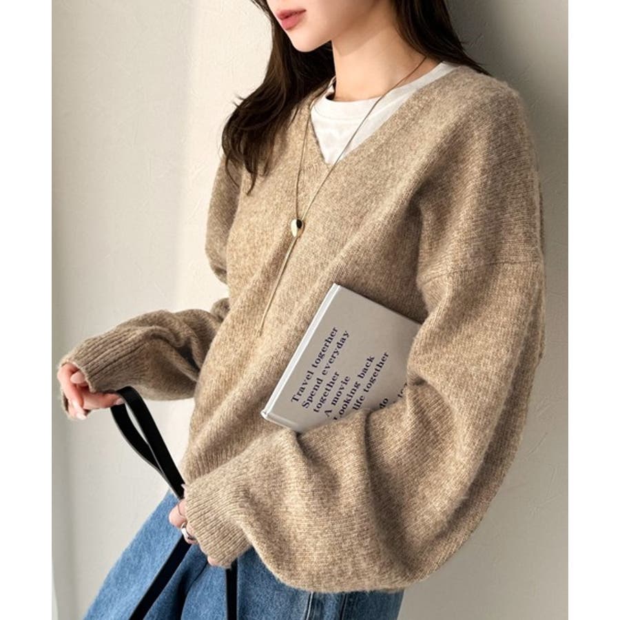 やわらかくふんわりとした質感が魅力の、メランジ調Vネックニットプルオーバー。