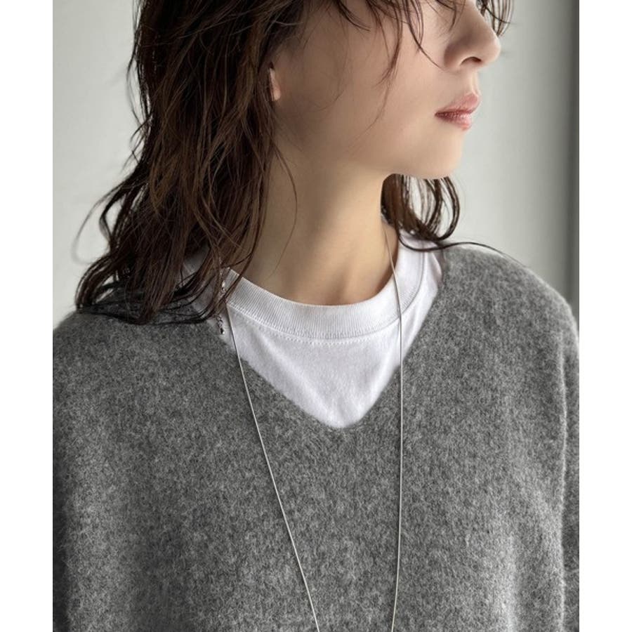 デコルテをきれいに見せるVネックで、大人のリラックススタイルにぴったりです。