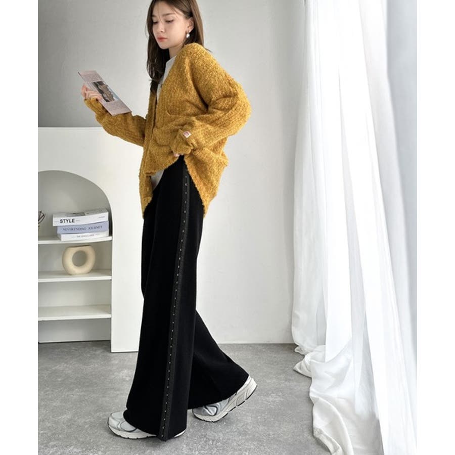 個性と美シルエットの共演。サイドホックデザインリブニットパンツ
