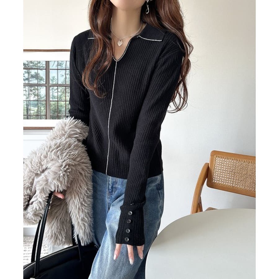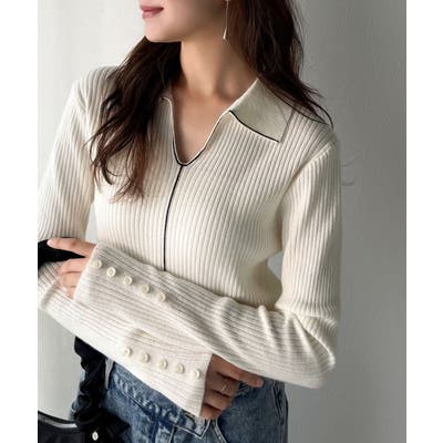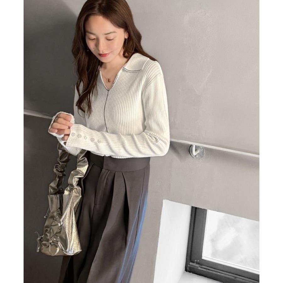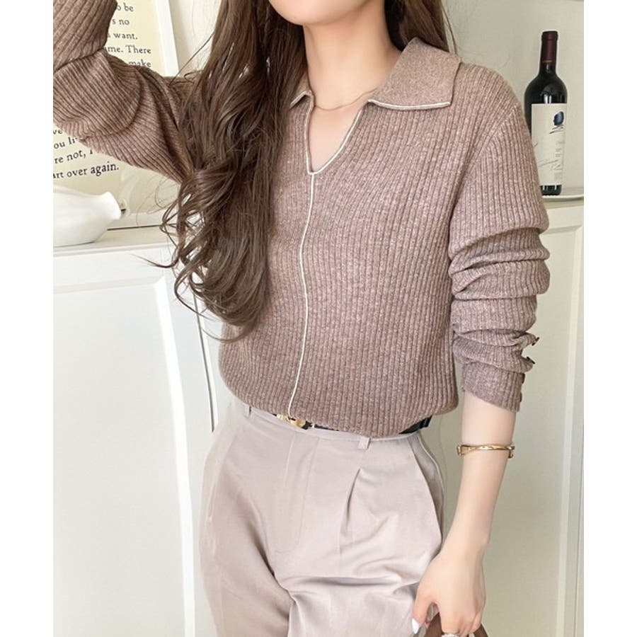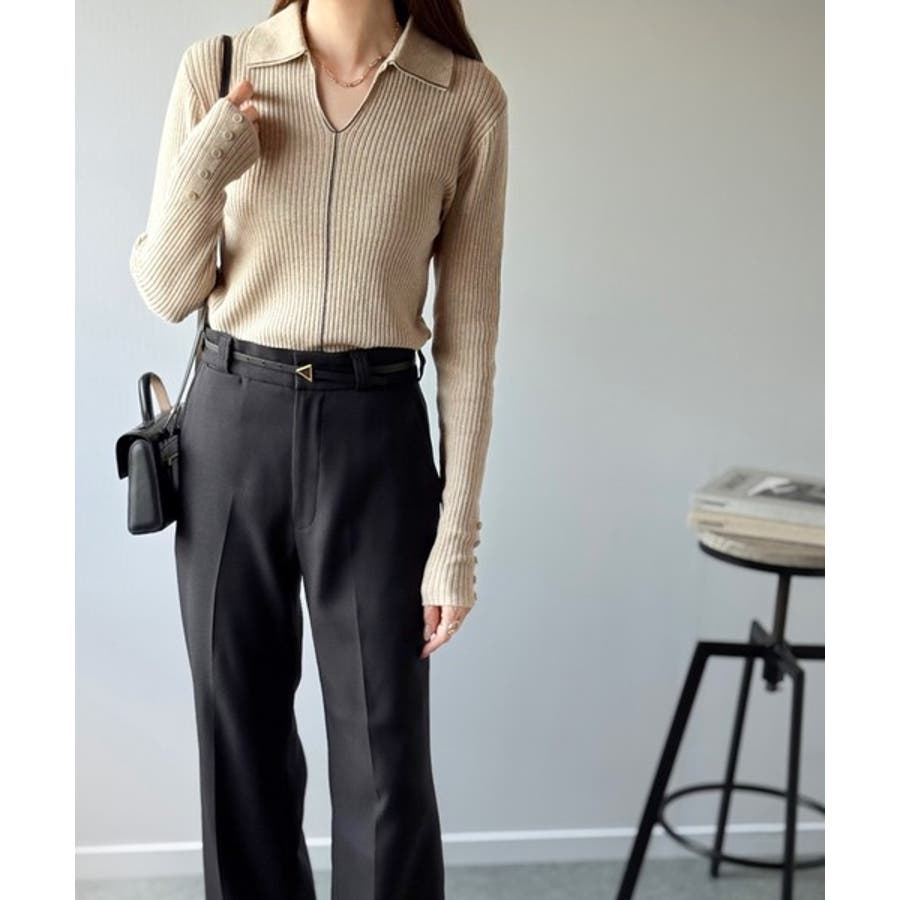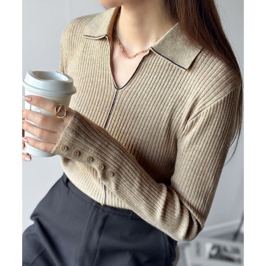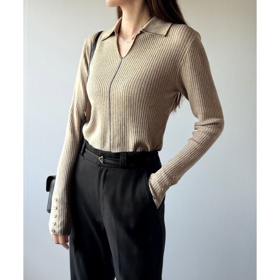 衿付きリブニットはスタイリッシュでありながらカジュアルにも着こなせる万能アイテム☆