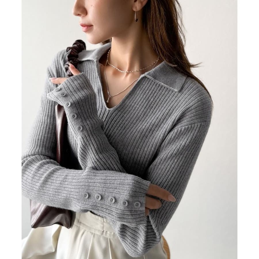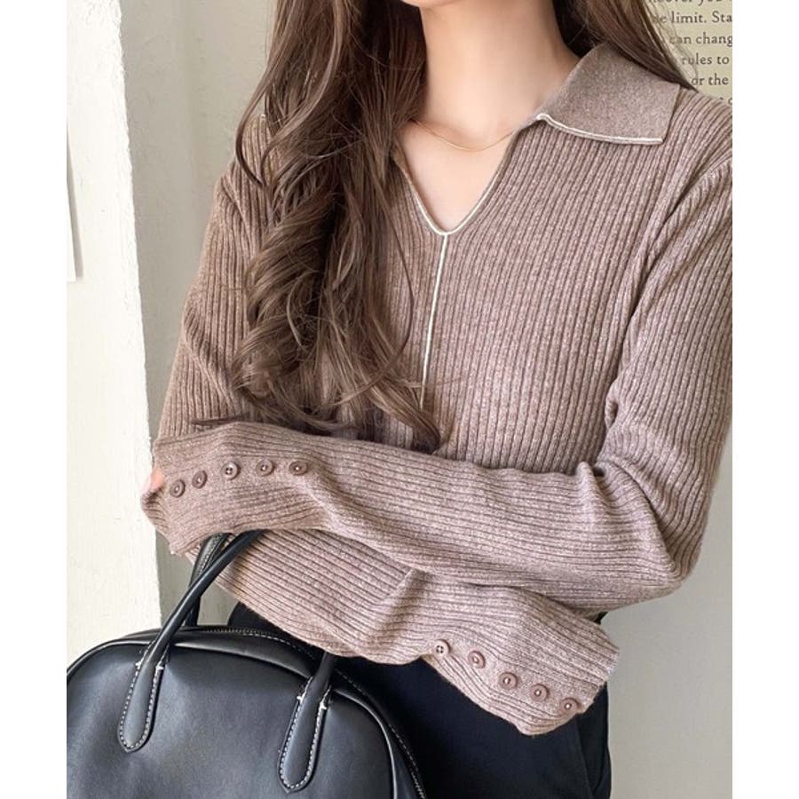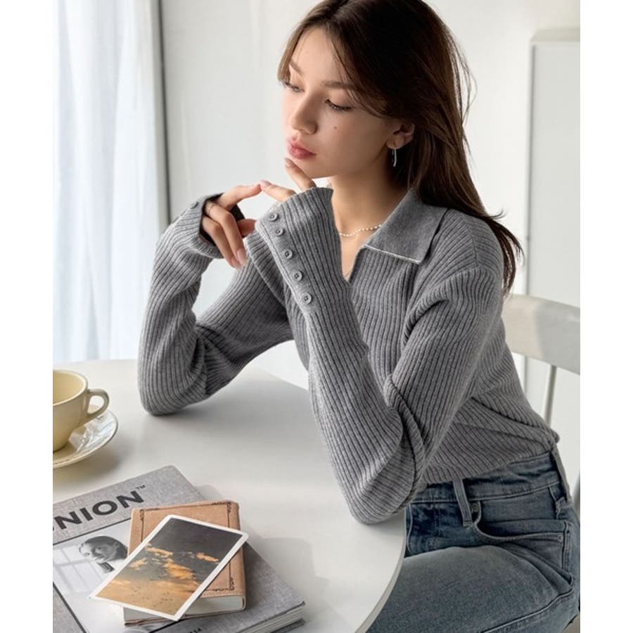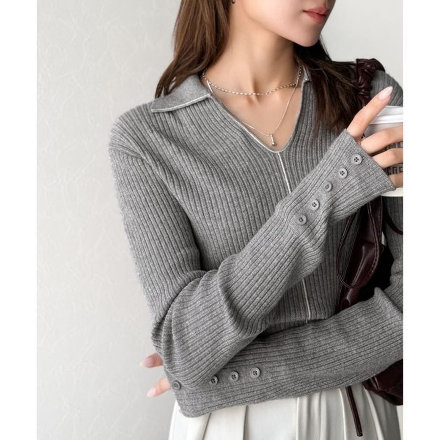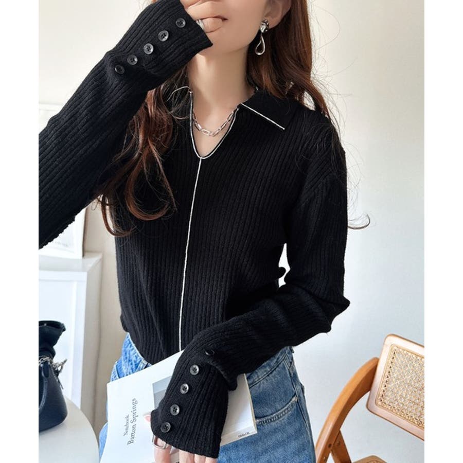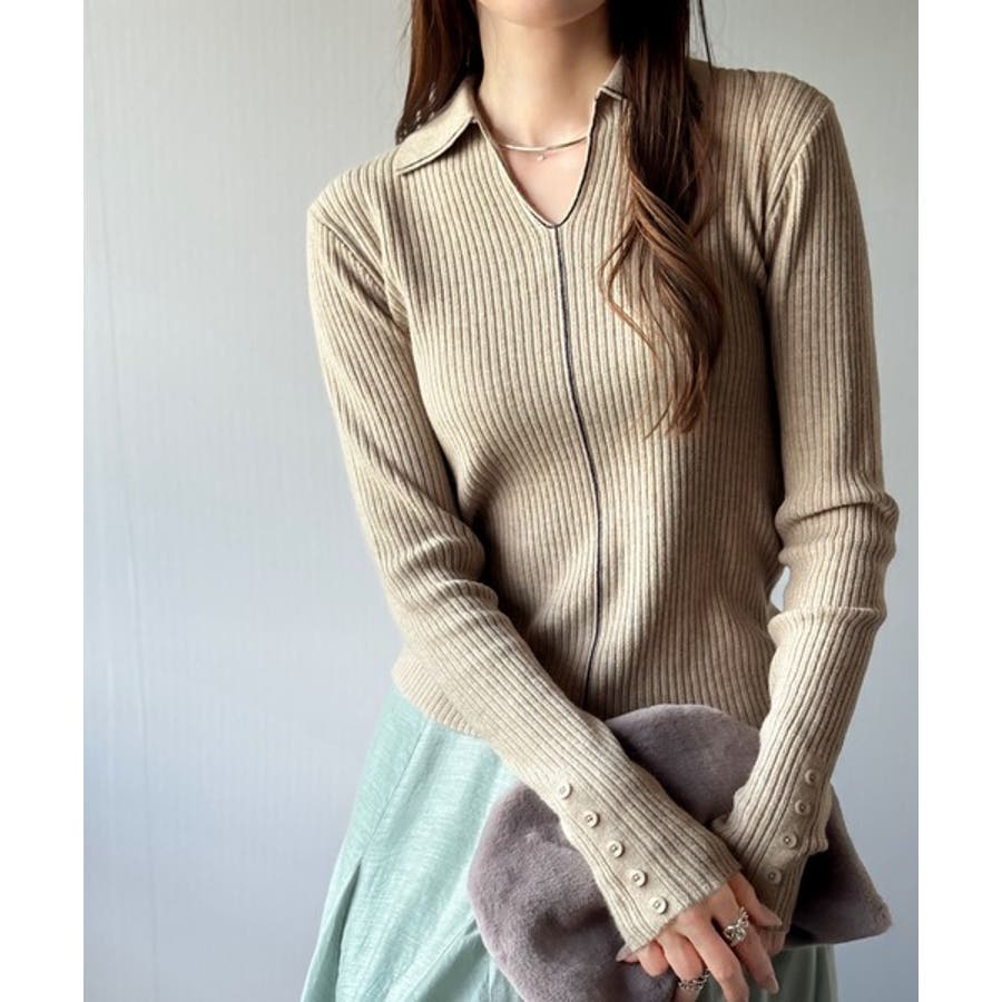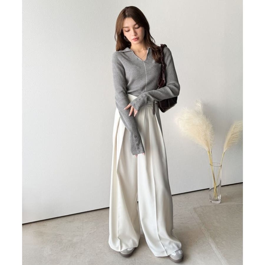 衿付きリブニットはスタイリッシュでありながらカジュアルにも着こなせる万能アイテム☆