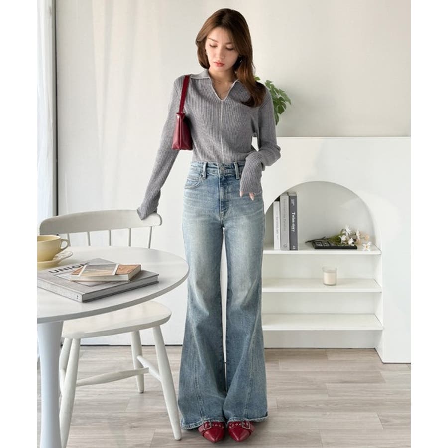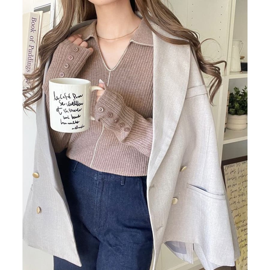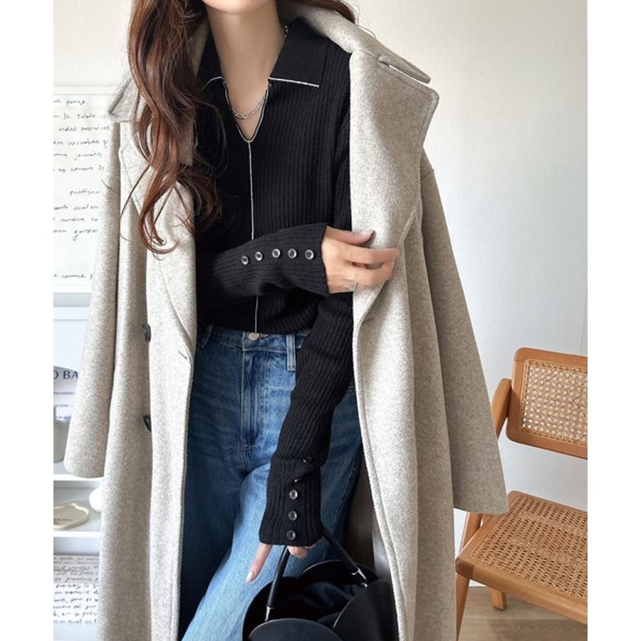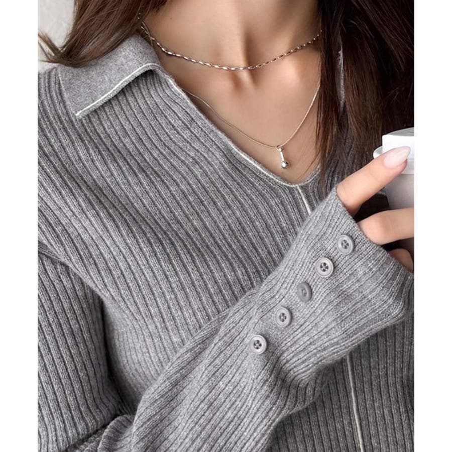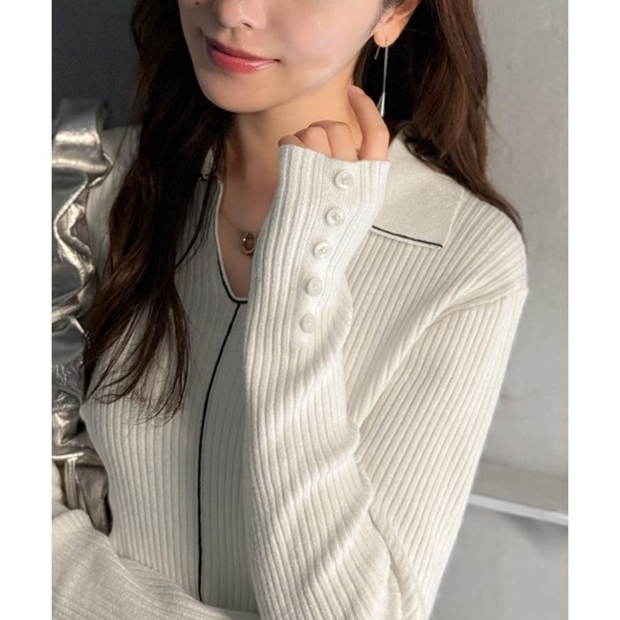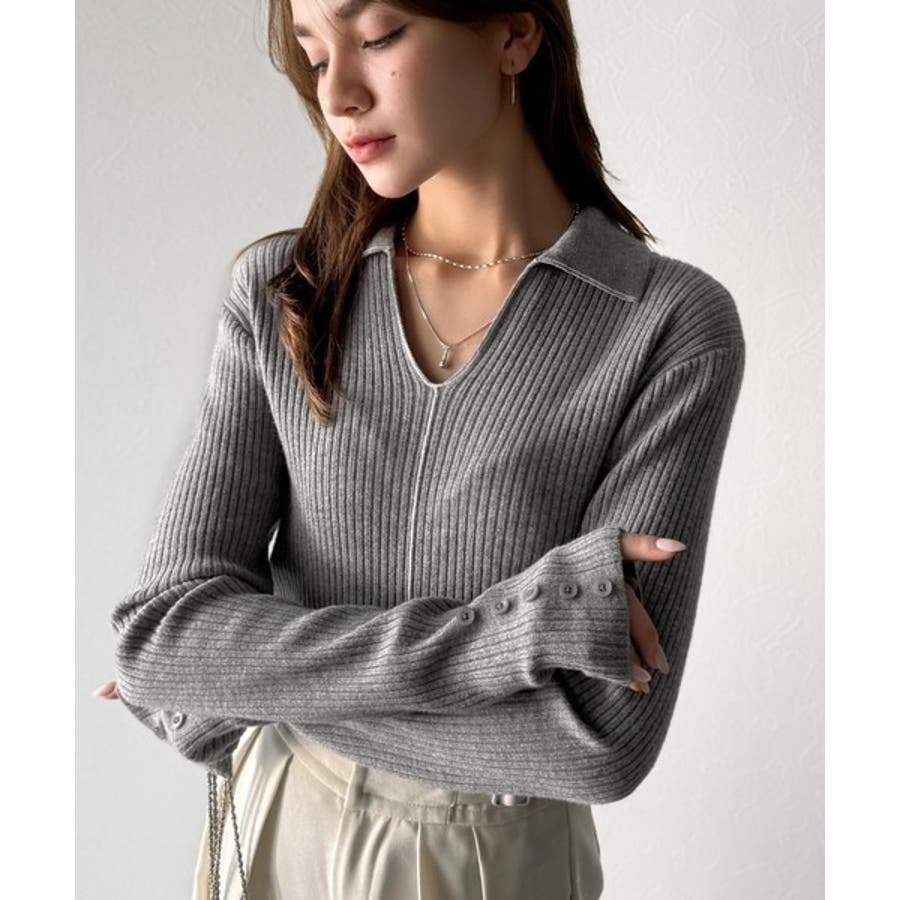 衿付きリブニットはスタイリッシュでありながらカジュアルにも着こなせる万能アイテム☆