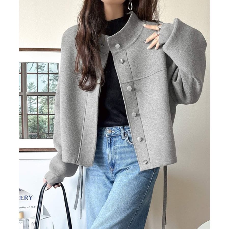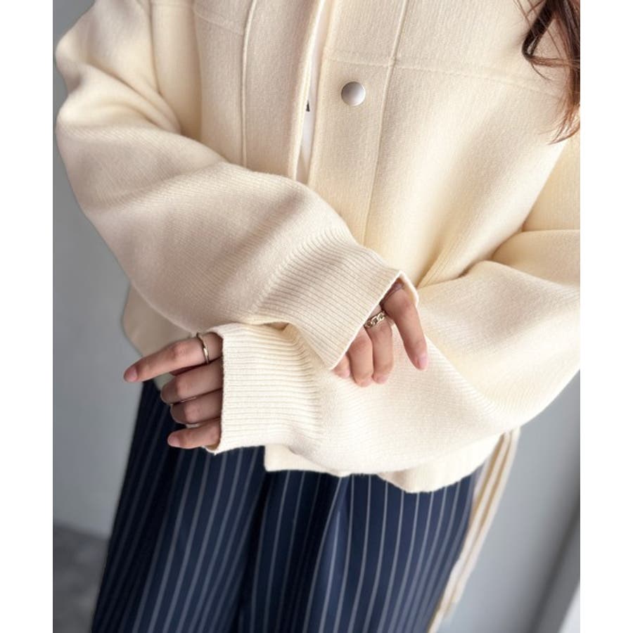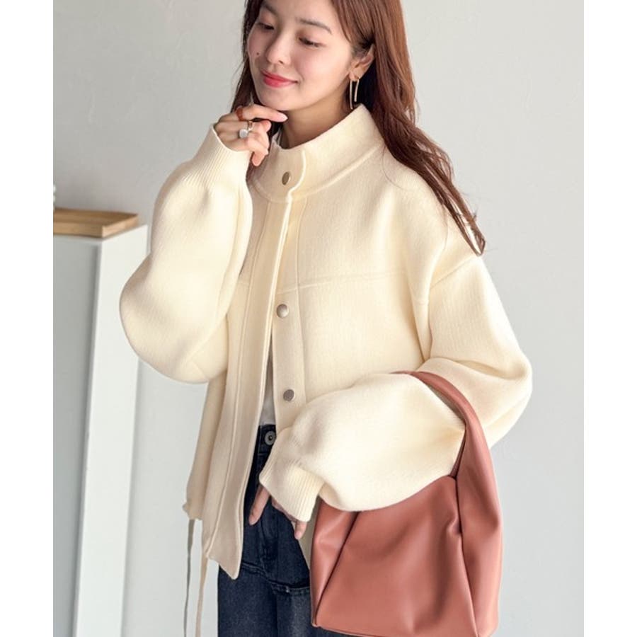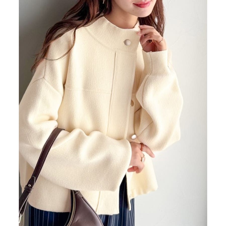 比翼ニットブルゾンは、柔らかいニット素材で作られた軽アウター。