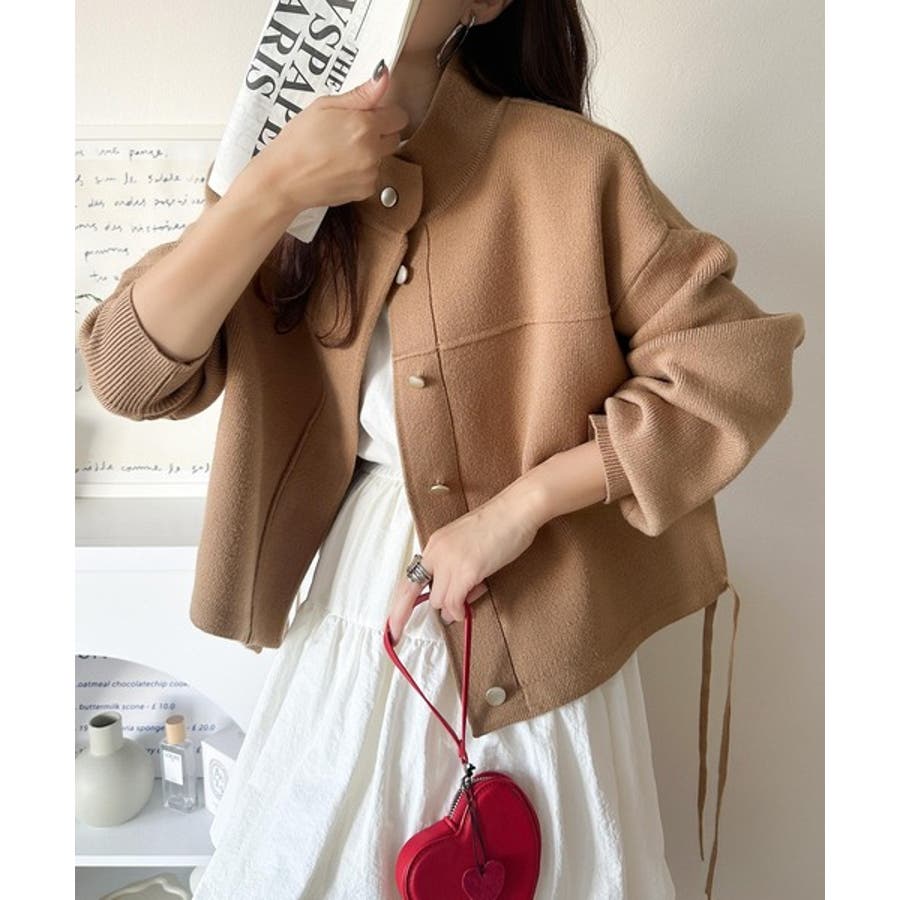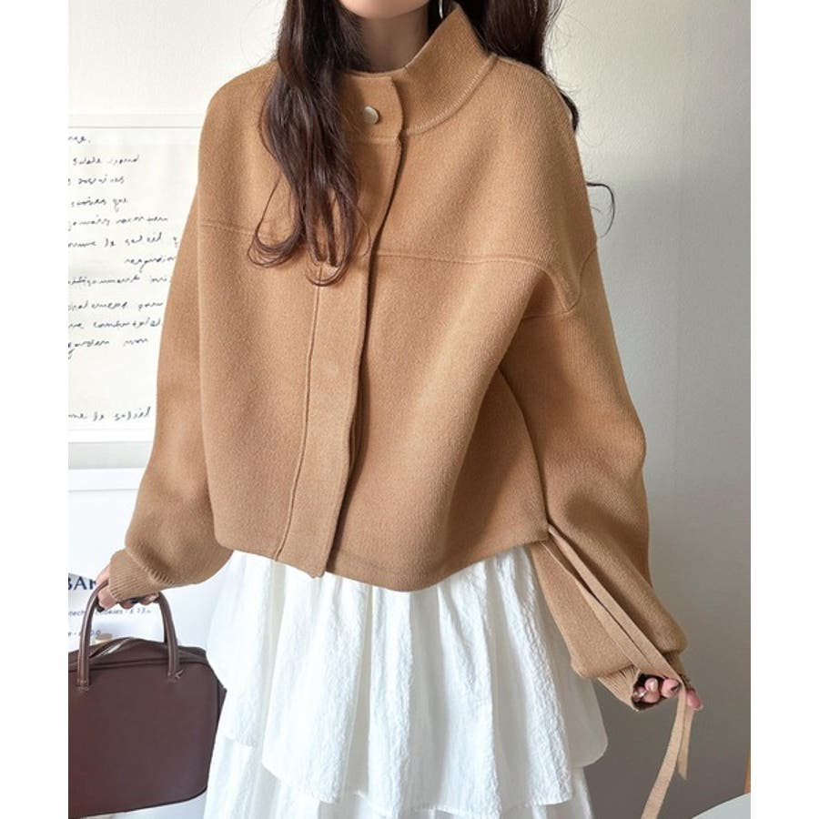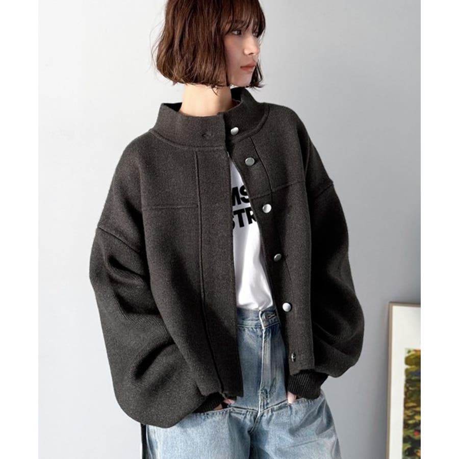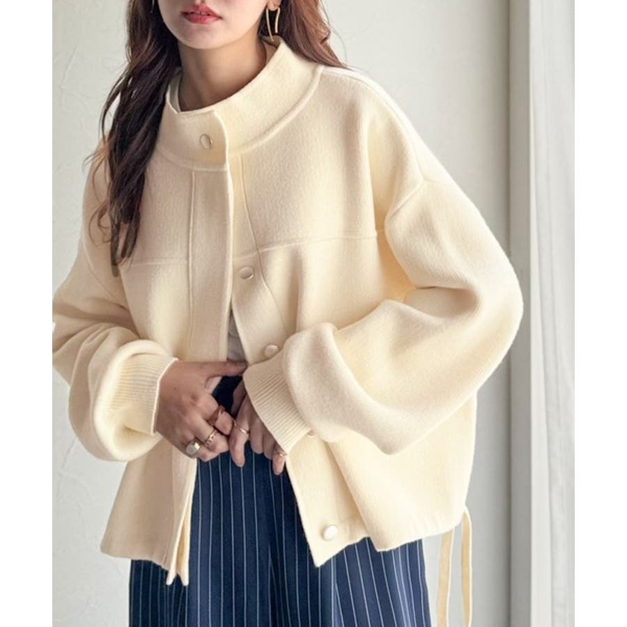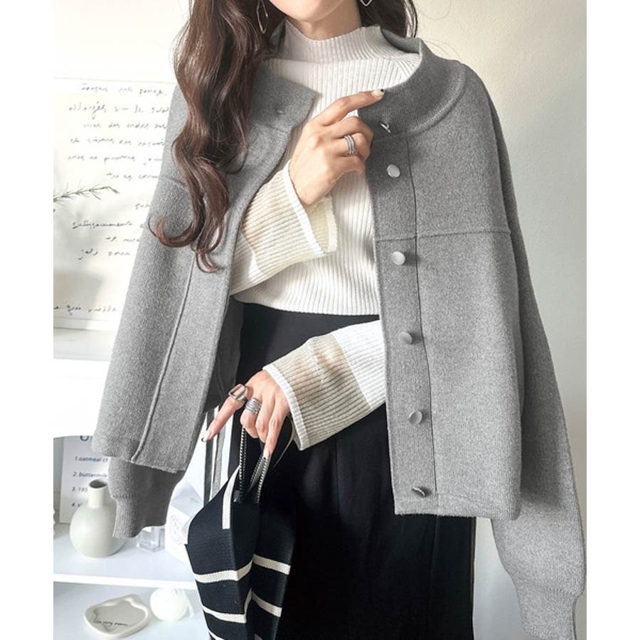 比翼ニットブルゾンは、柔らかいニット素材で作られた軽アウター。