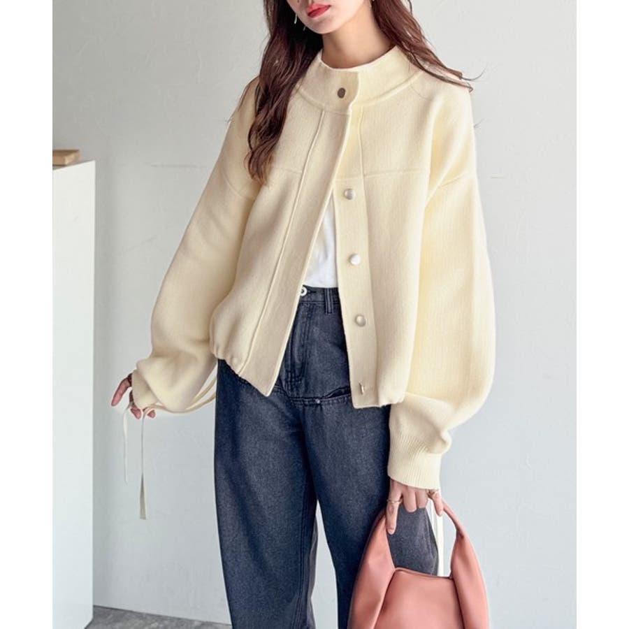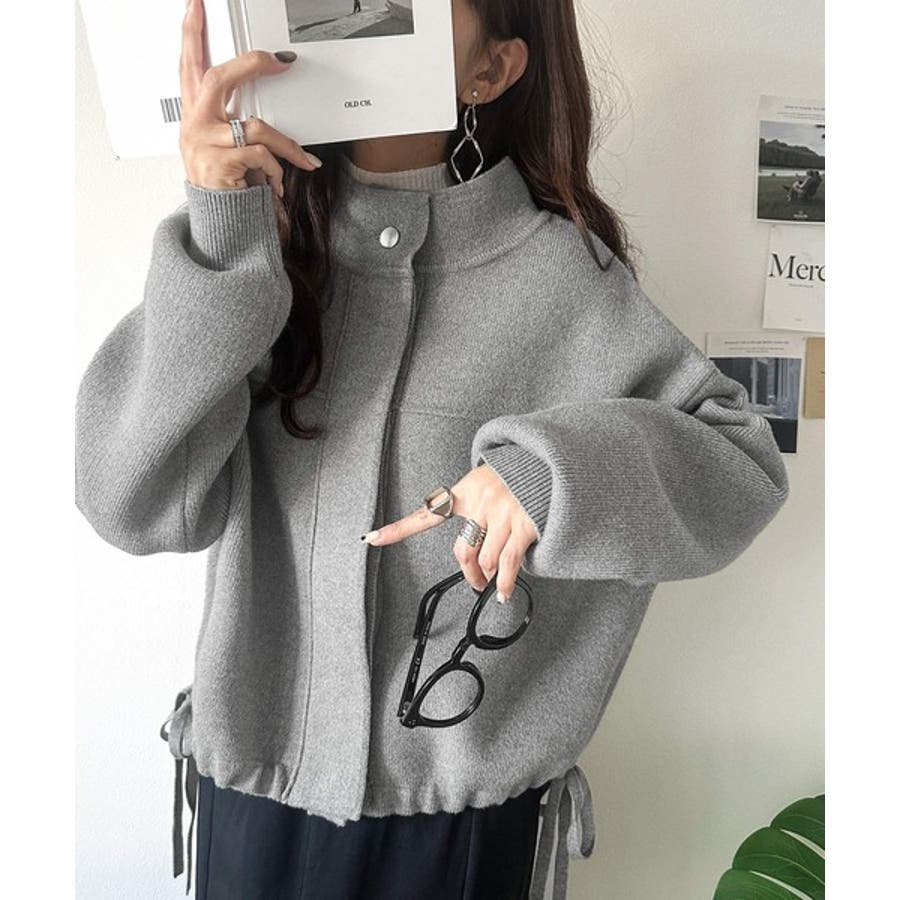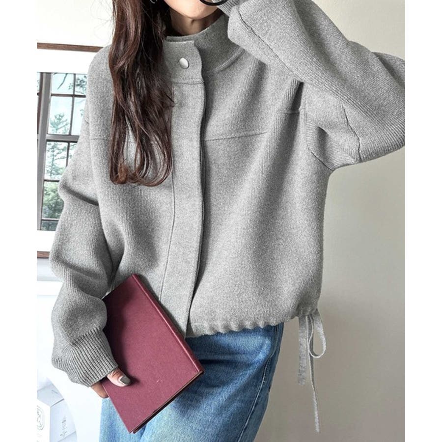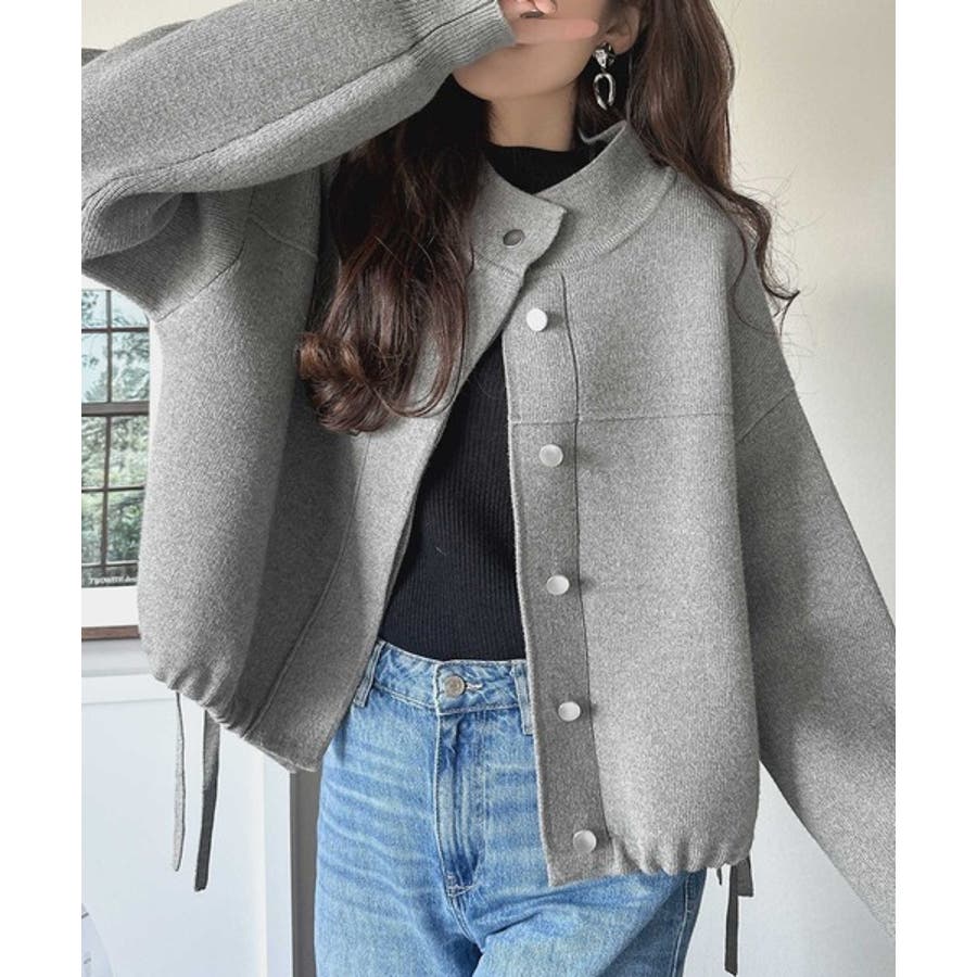 シンプルで洗練されたデザインが魅力!サイドドロスト比翼ニットブルゾン