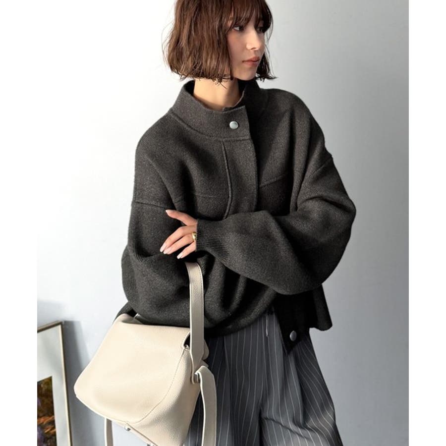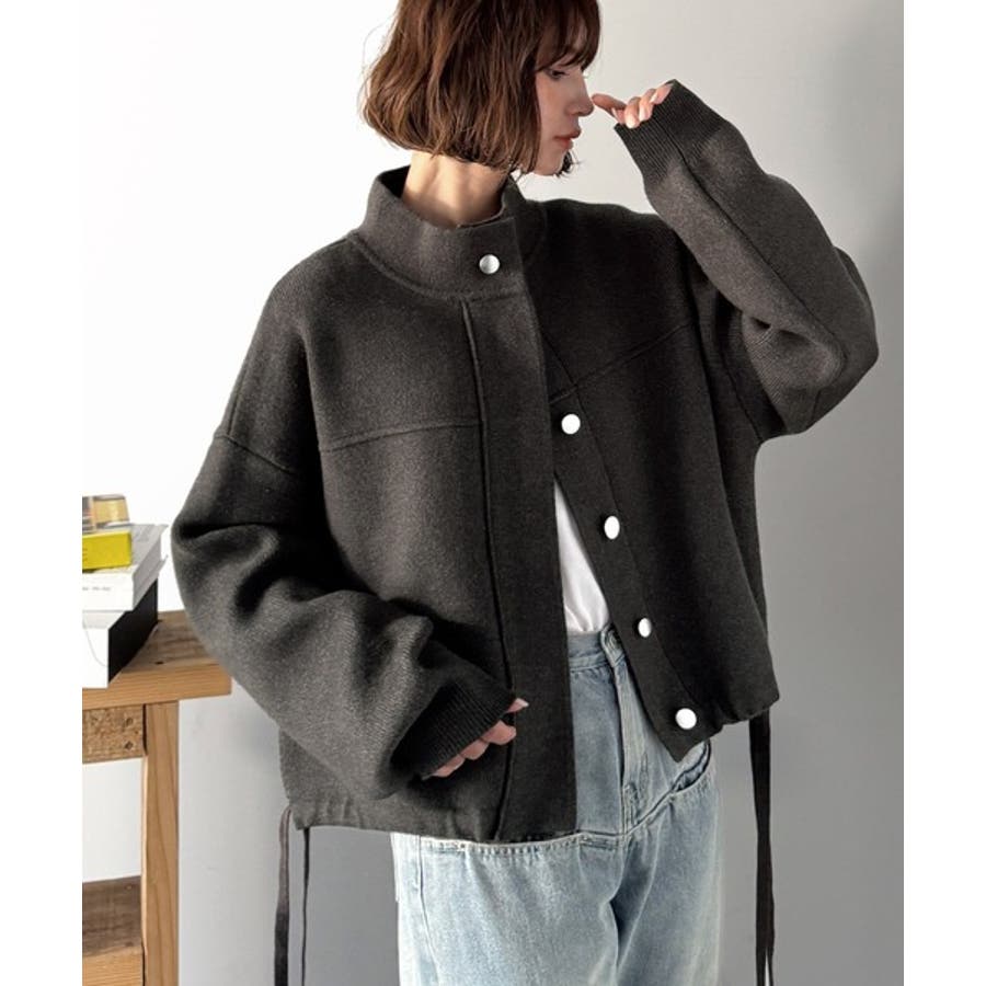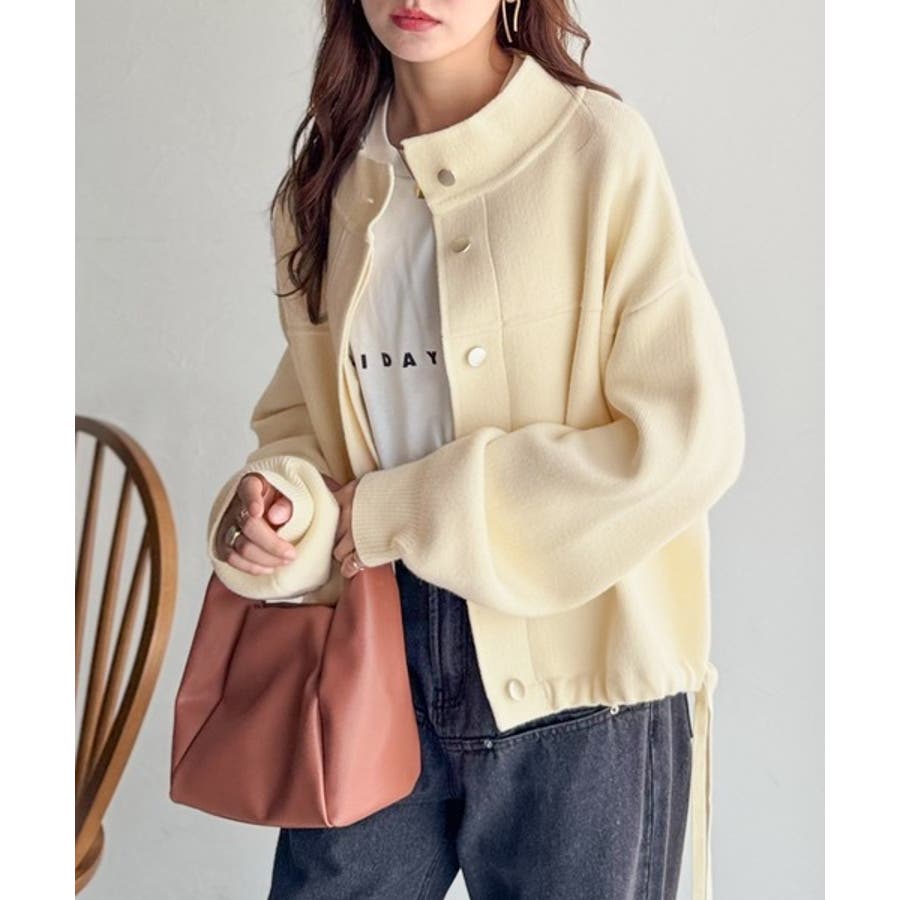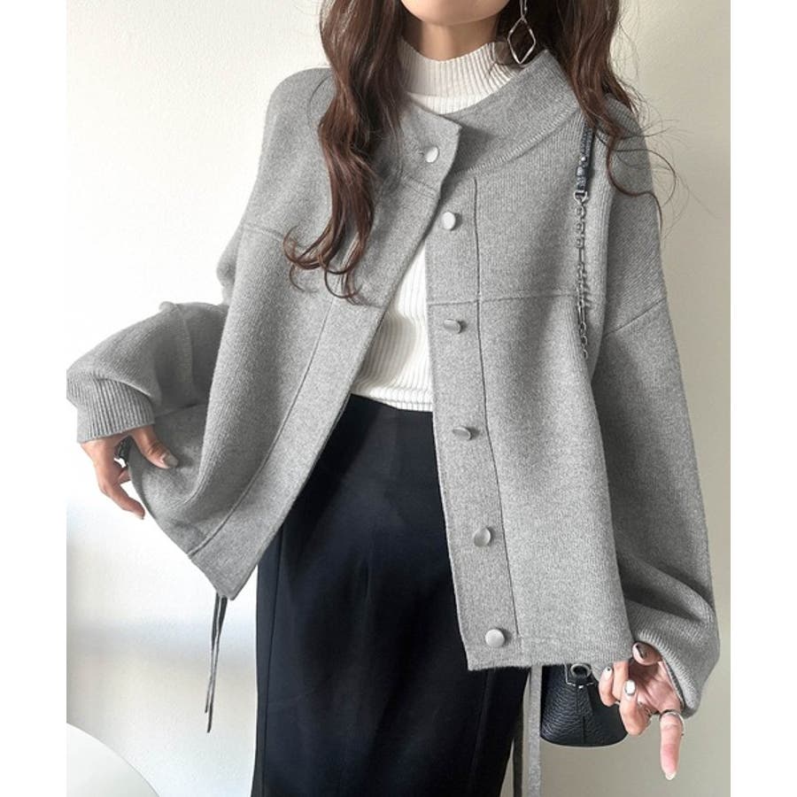 シンプルで洗練されたデザインが魅力!サイドドロスト比翼ニットブルゾン