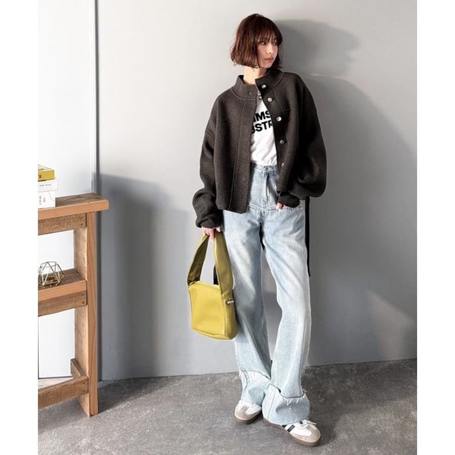 デニムやスラックスを合わせることで、カジュアルながら洗練された印象に♪