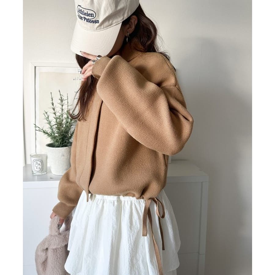 サイドのドロスト紐を調整すると、裾のフォルムを丸みを帯びた可愛らしいシルエットにもできちゃう。
