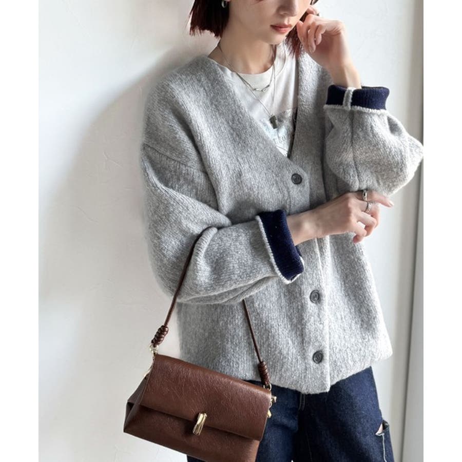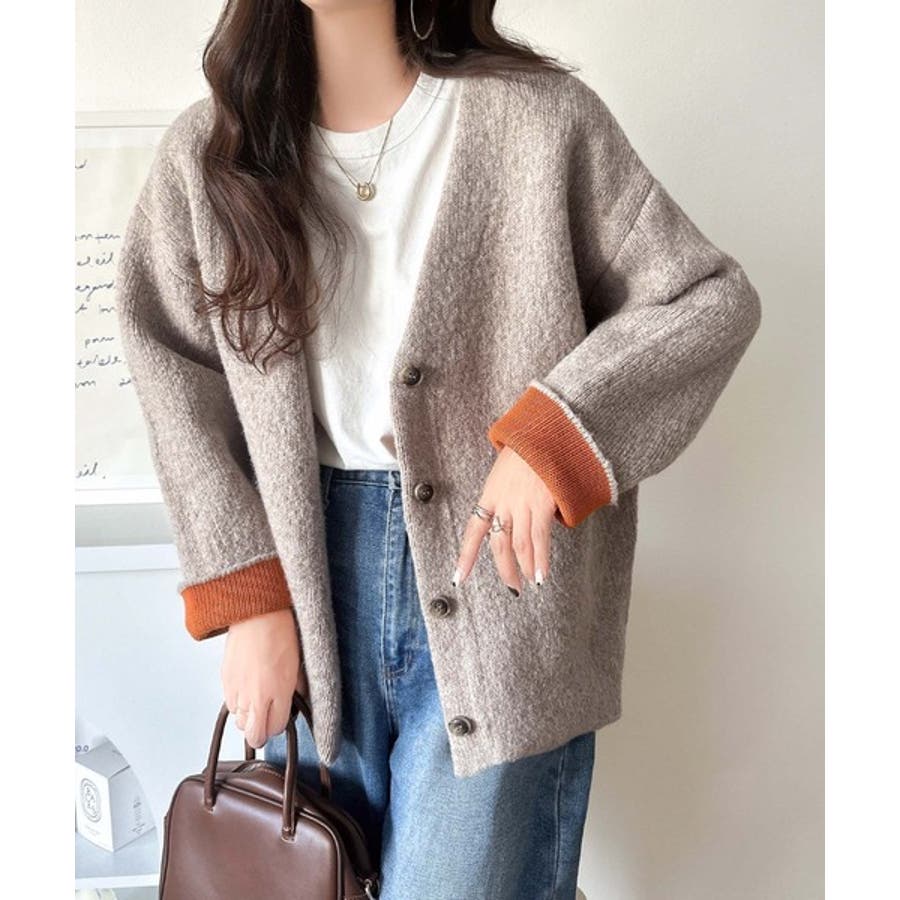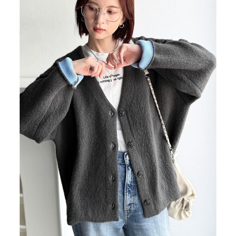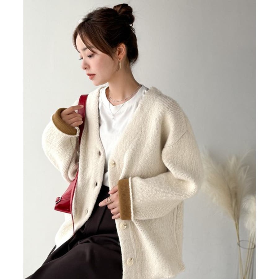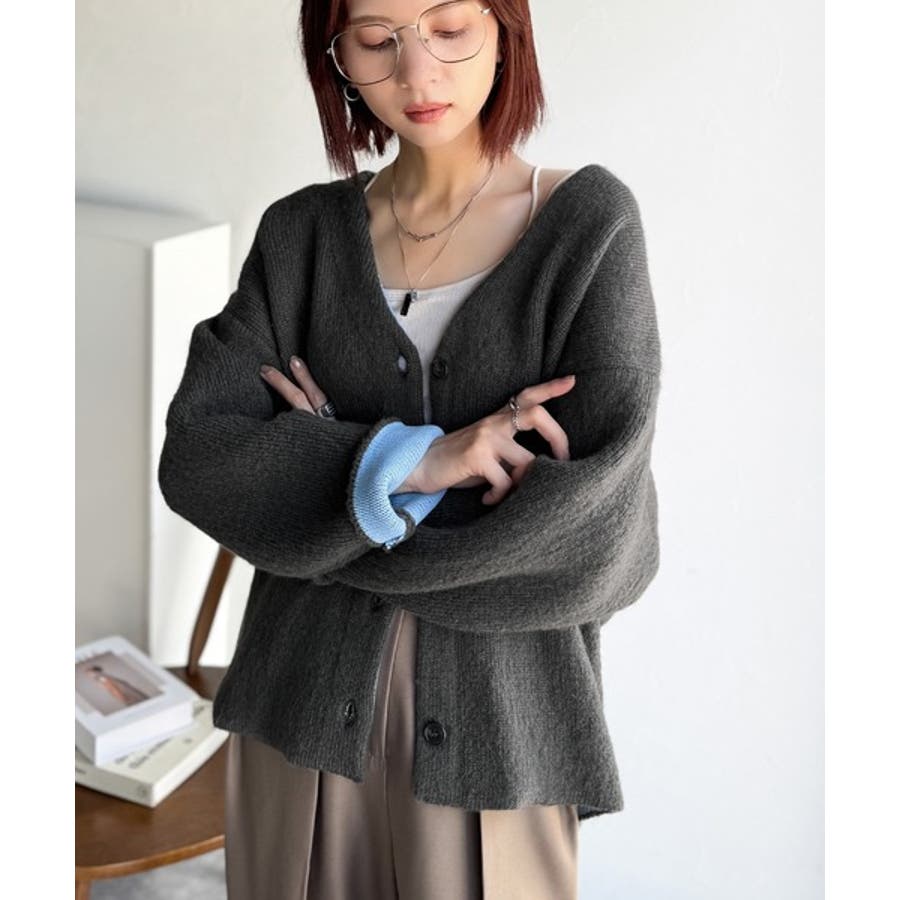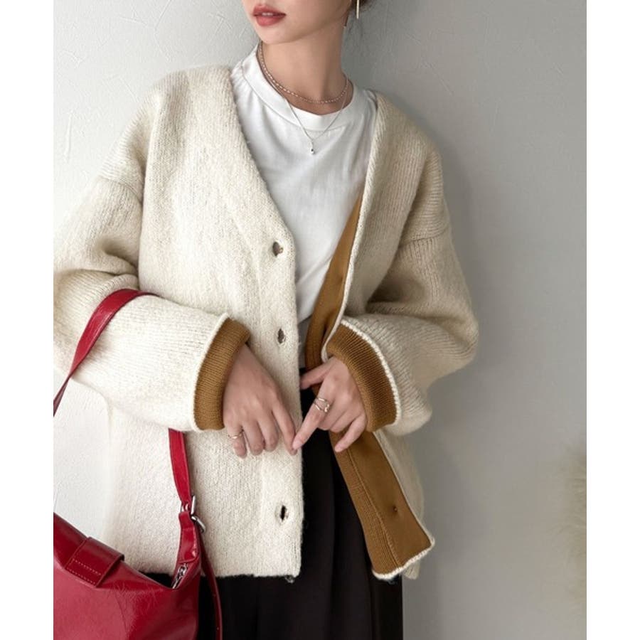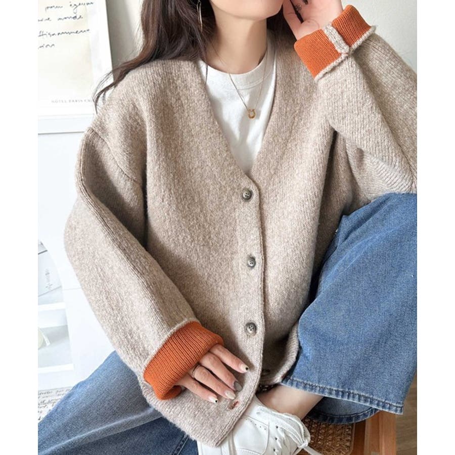 袖先から薫る。こなれ感たっぷりのこっくり配色。Wフェイス裏配色Vネックカーディガ…